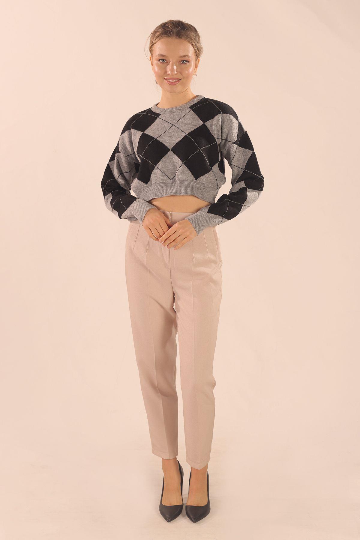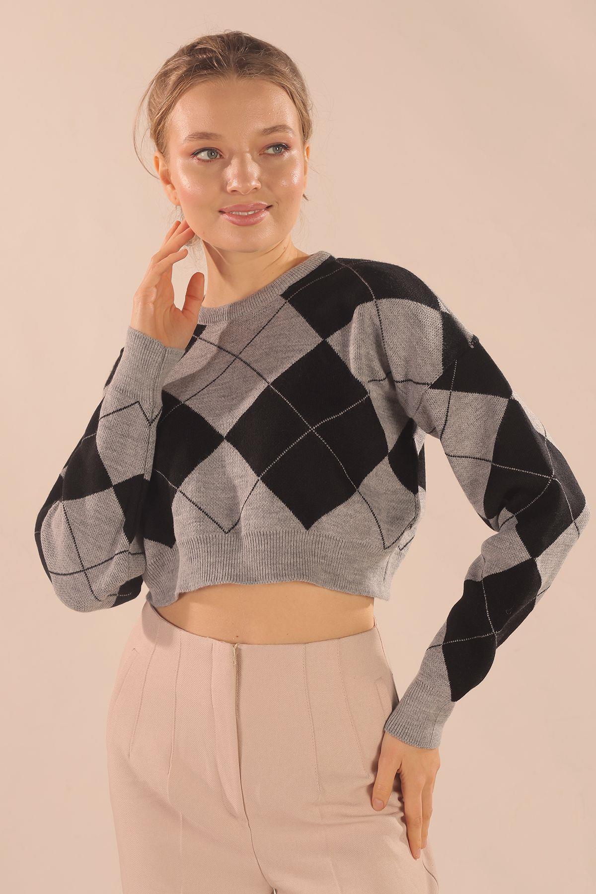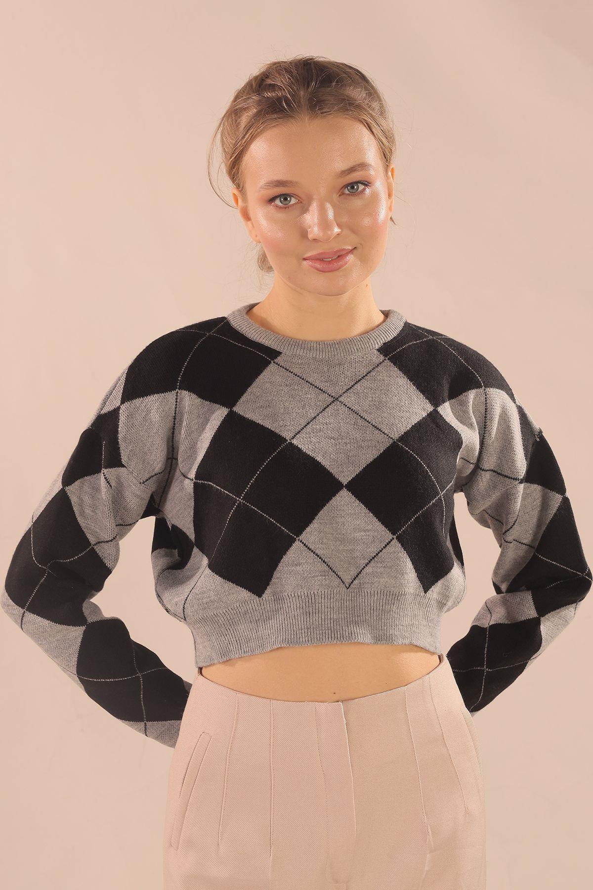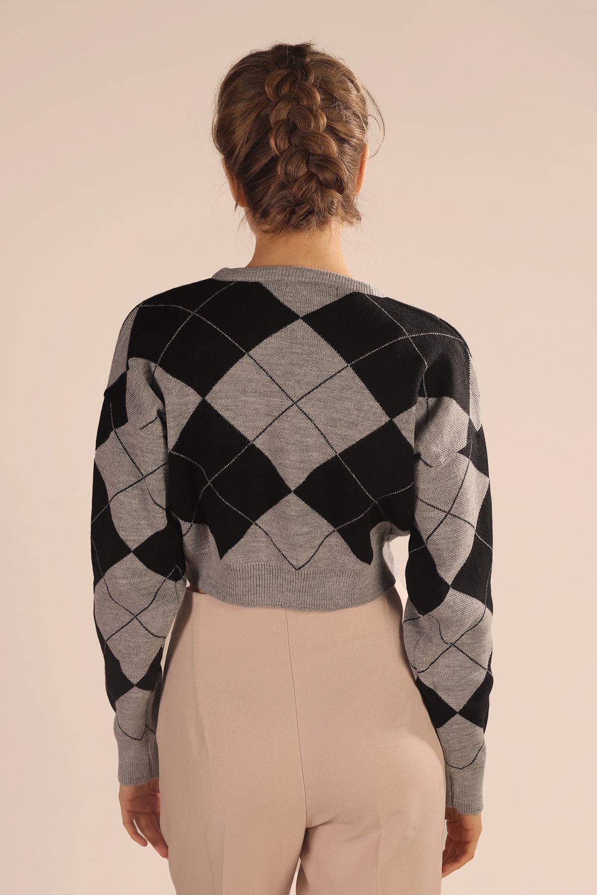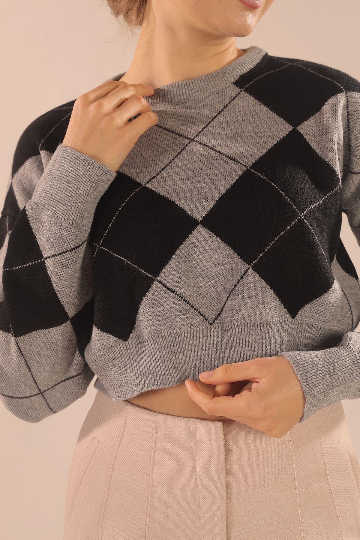 Gri Baklava Desen Kazak 3125