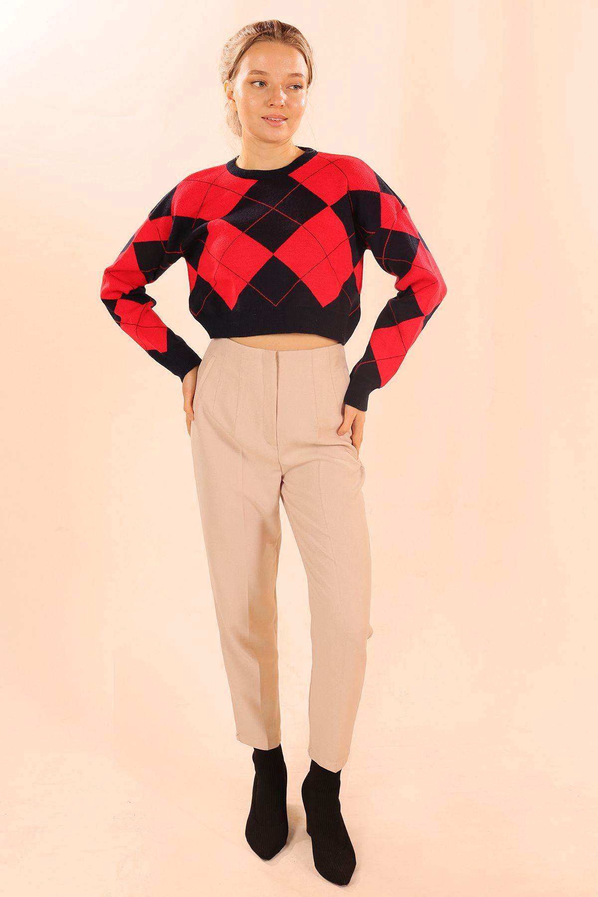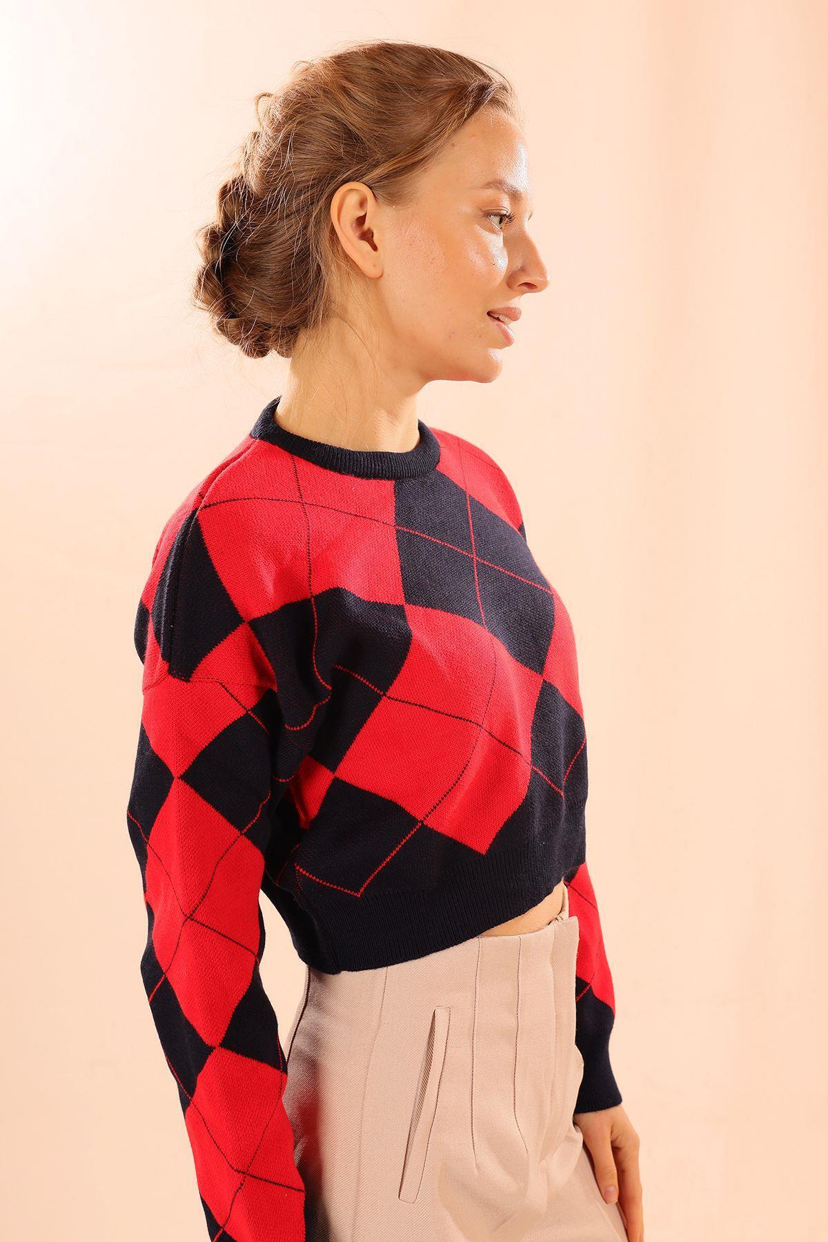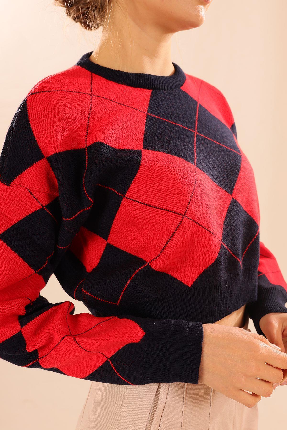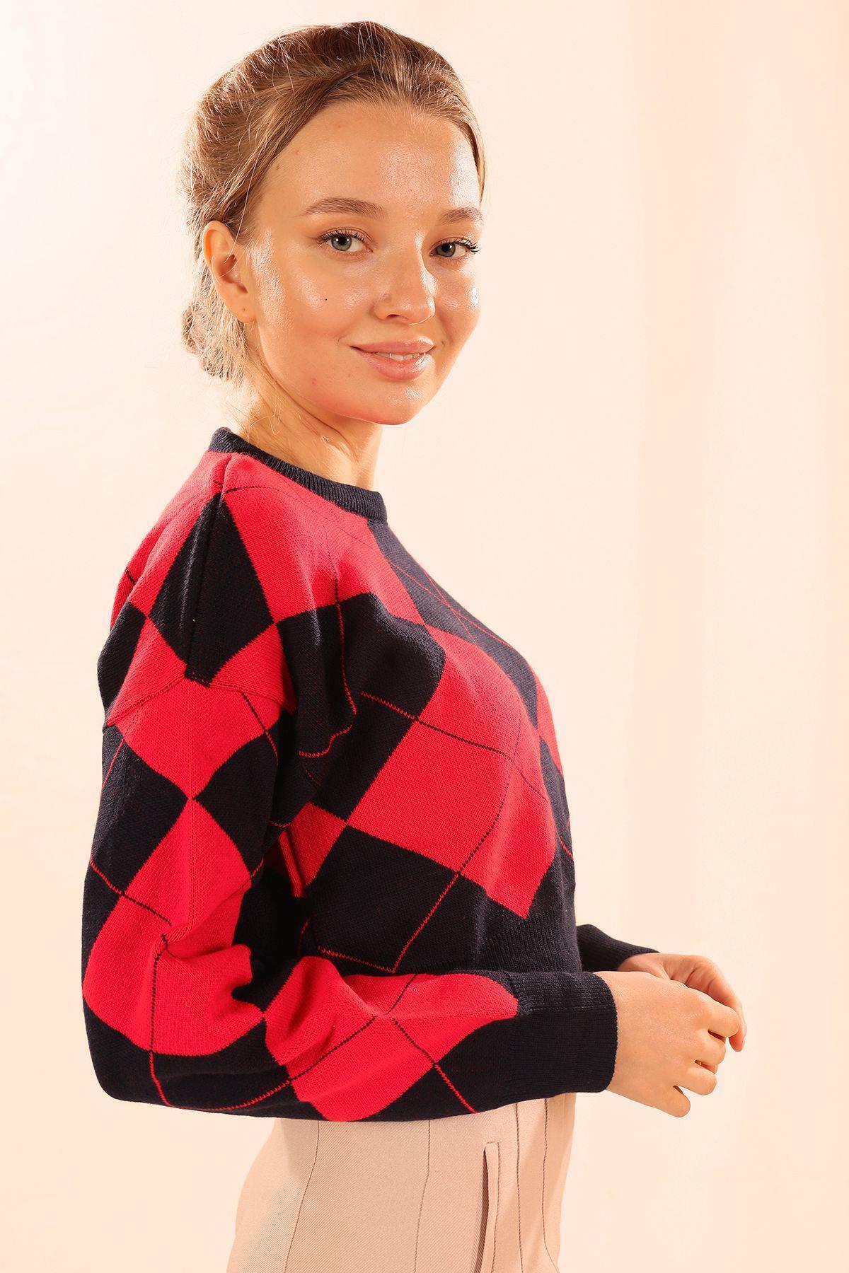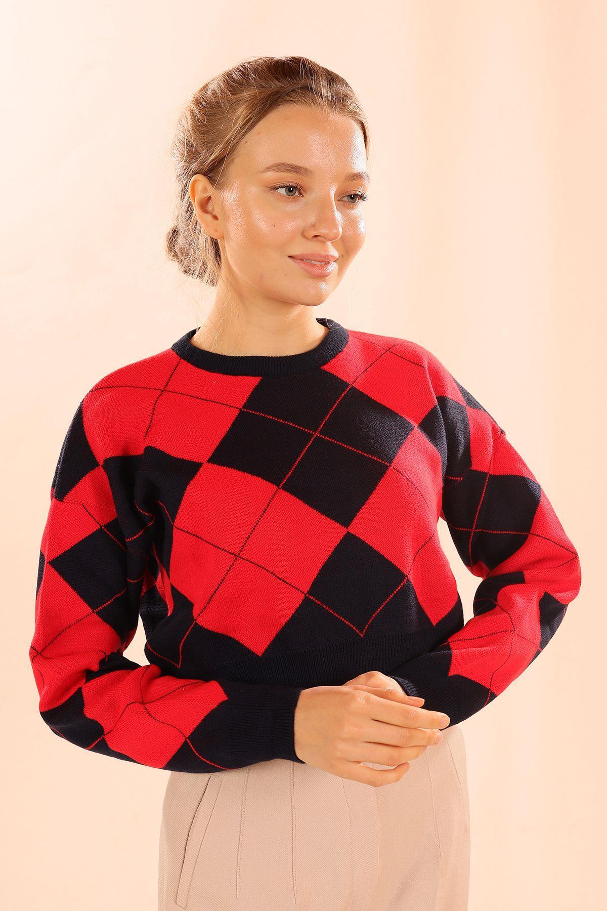 Siyah-Kırmızı Yıldız Baskılı Oversize Kazak 2474 - RAYS Siyah-Kırmızı Yıldız Baskılı Oversize Kazak 2474 - RAYS (1)