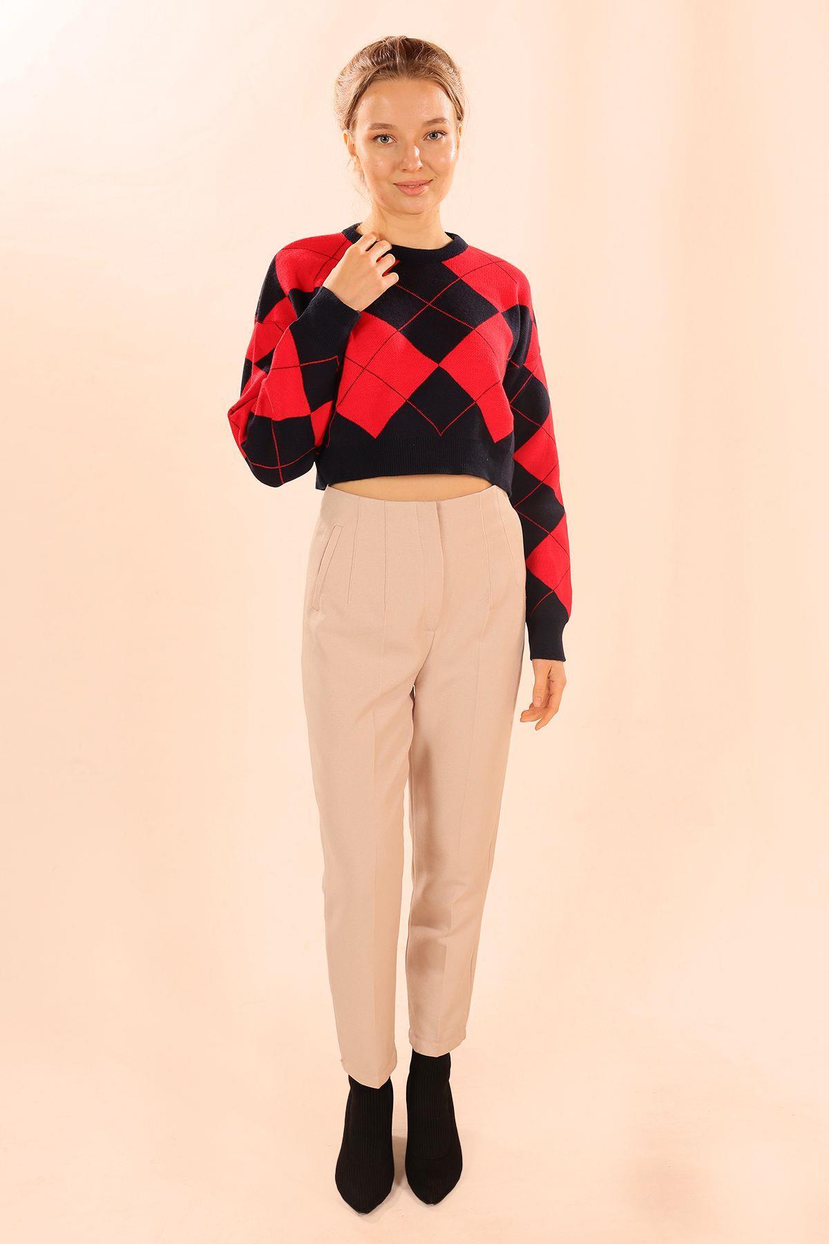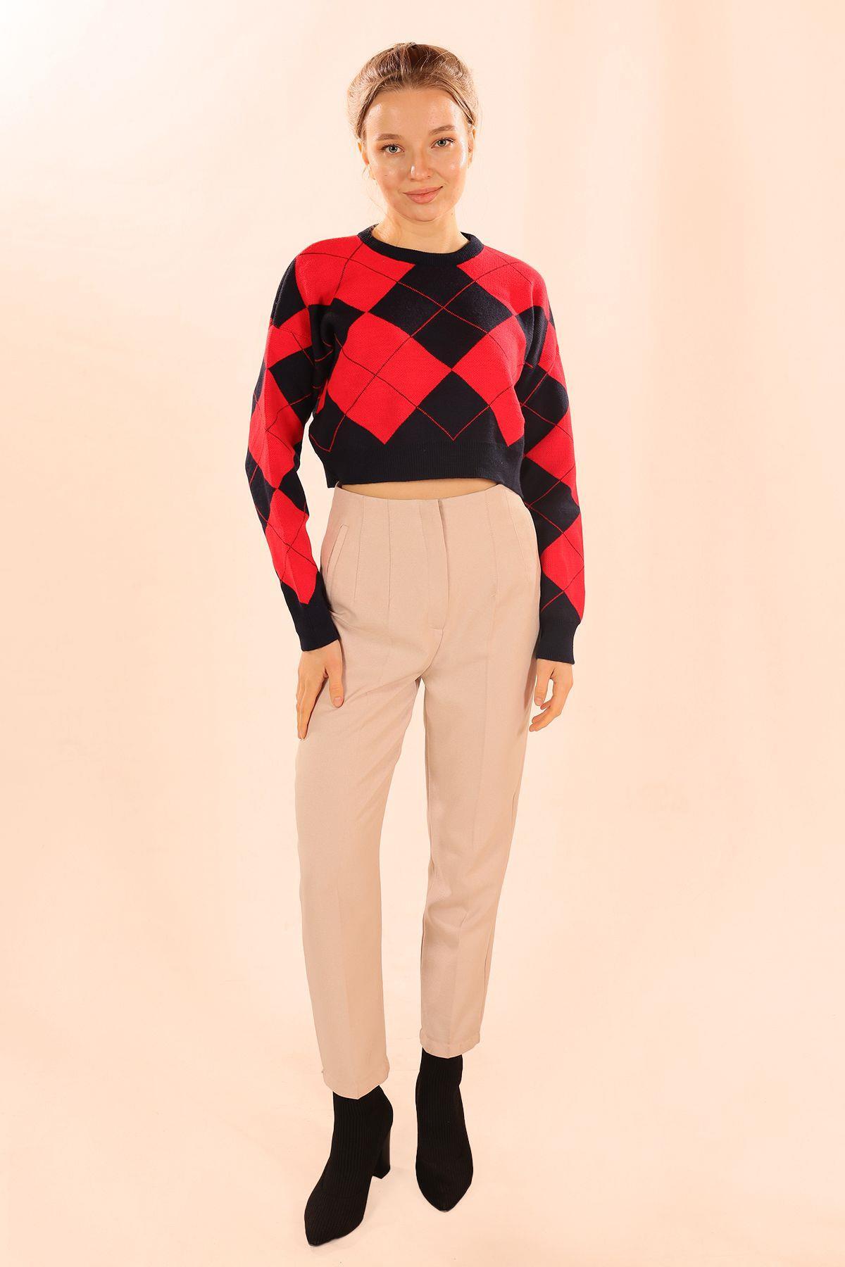 Kahve Kalp Nakışlı Kısa Kazak 2337 - RAYS Kahve Kalp Nakışlı Kısa Kazak 2337 - RAYS (1)