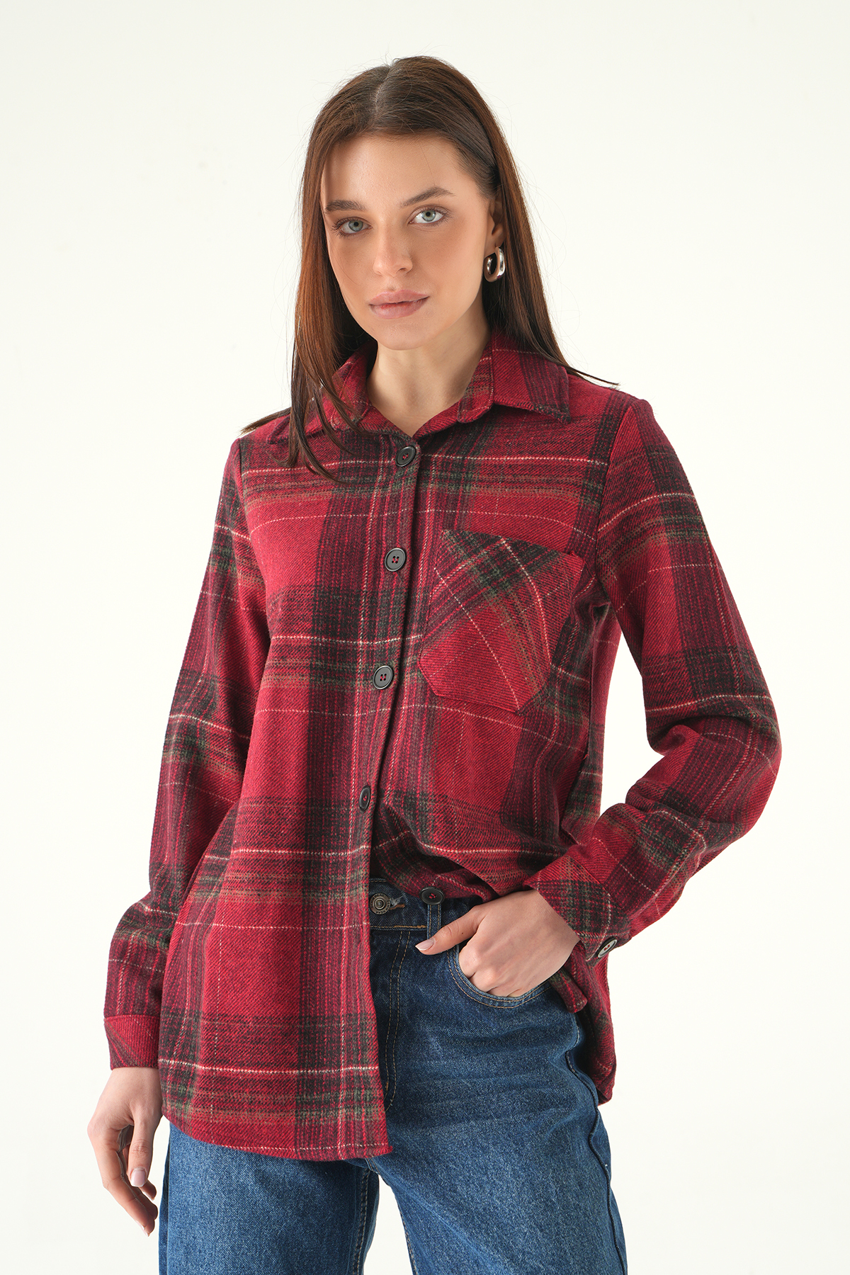Bordo Ön Düğmeli Gömlek 3127A