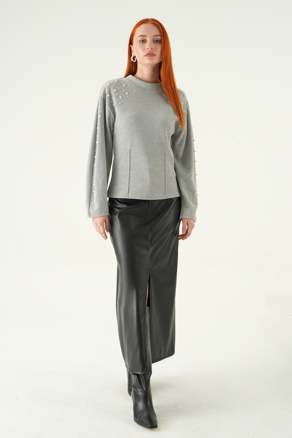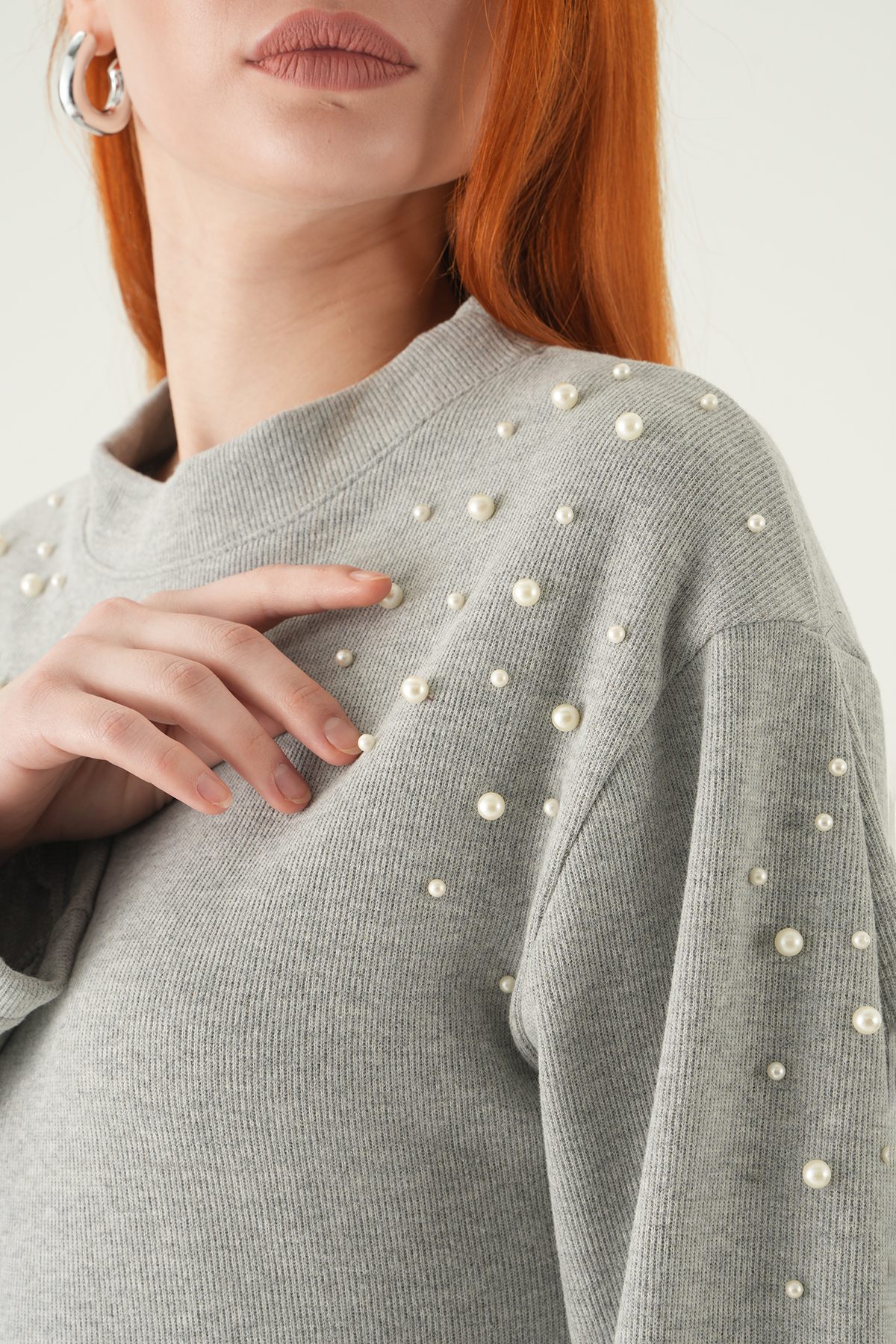 3129A İnci Detay Kazak Gri
