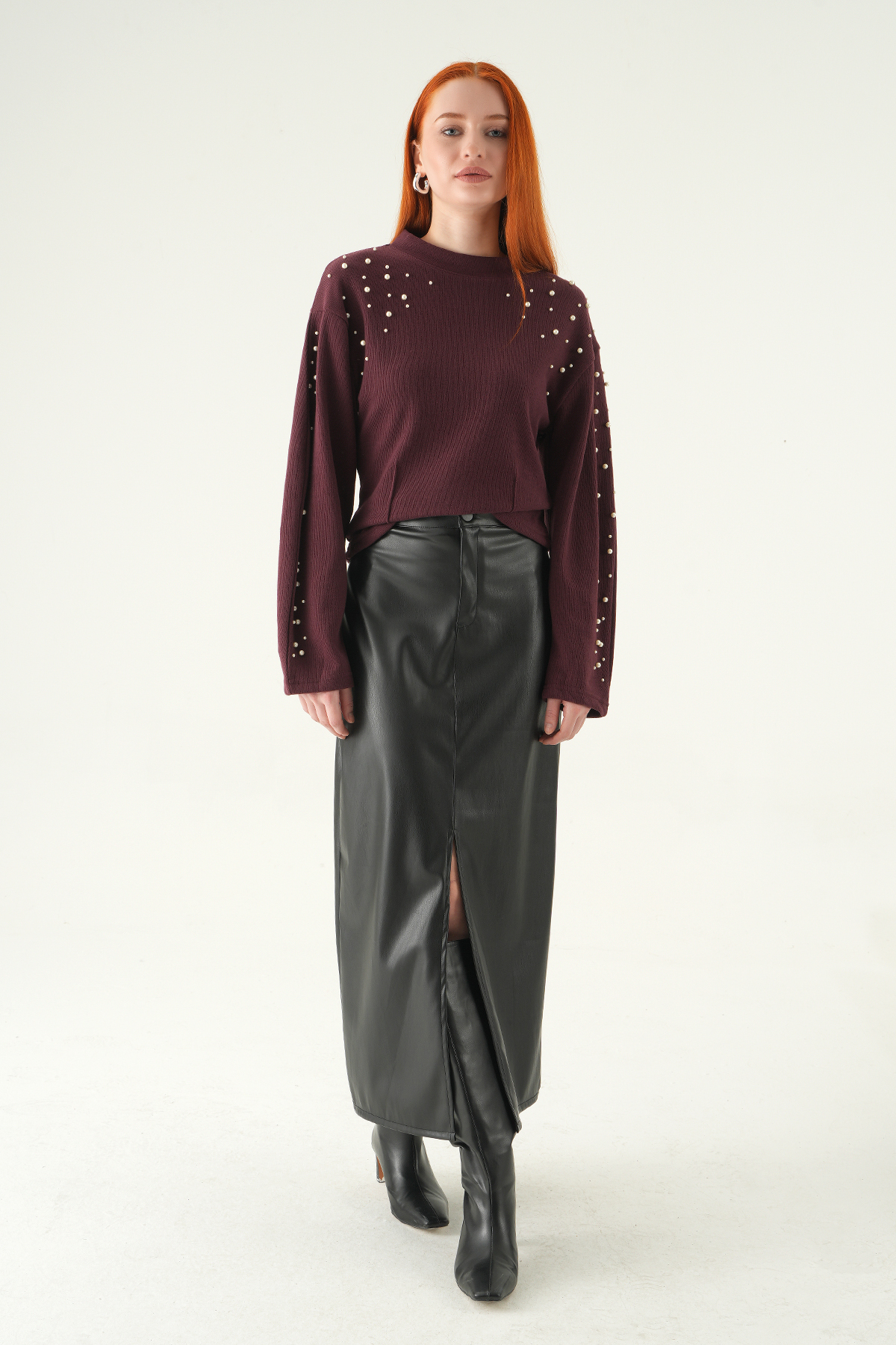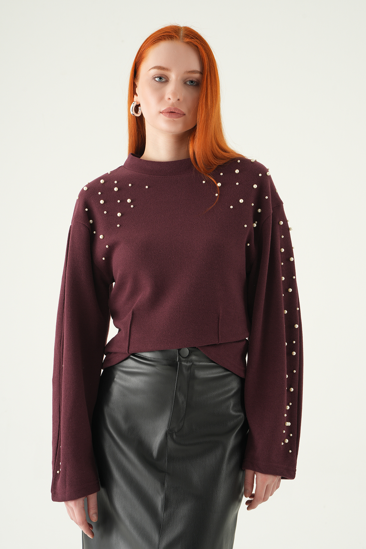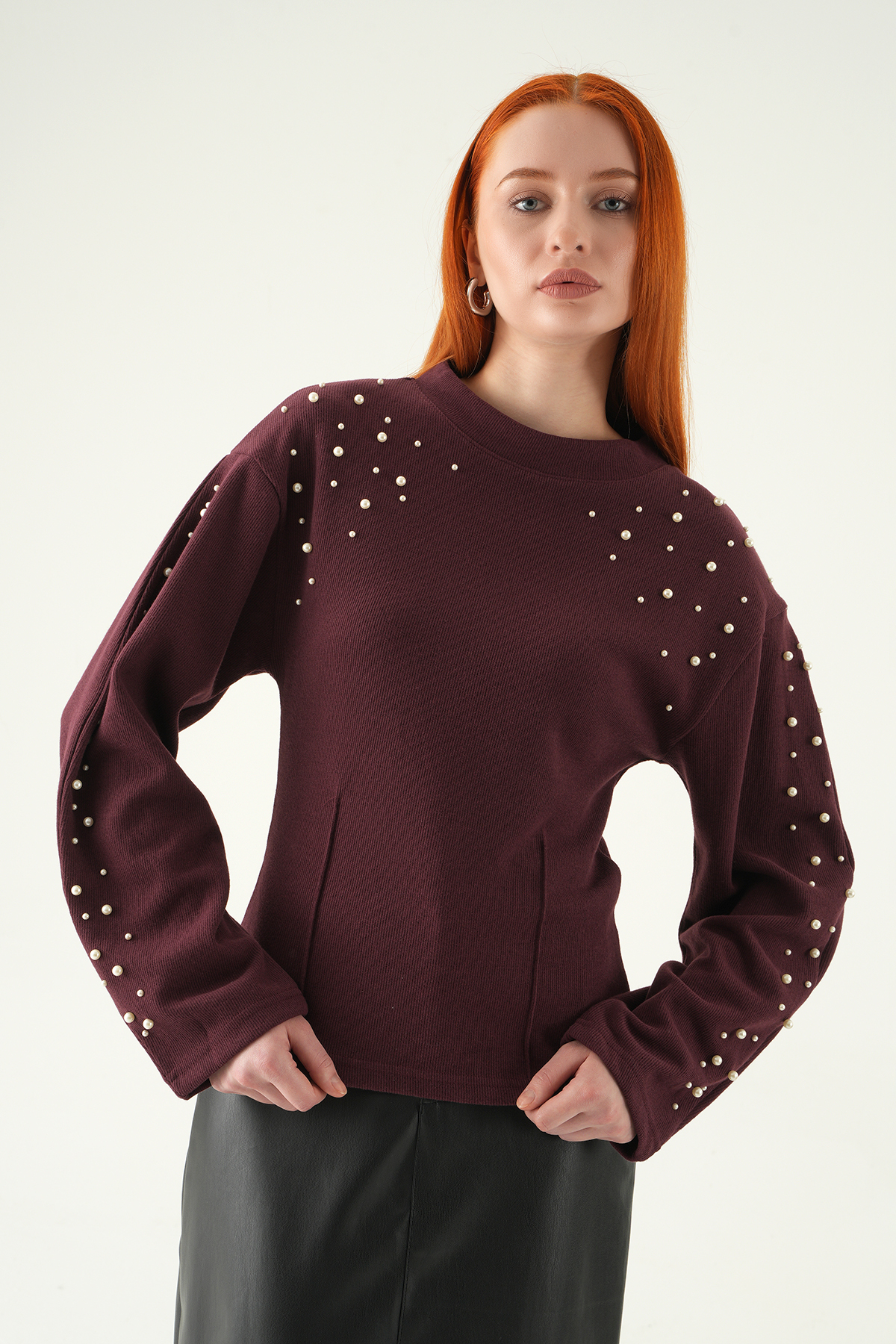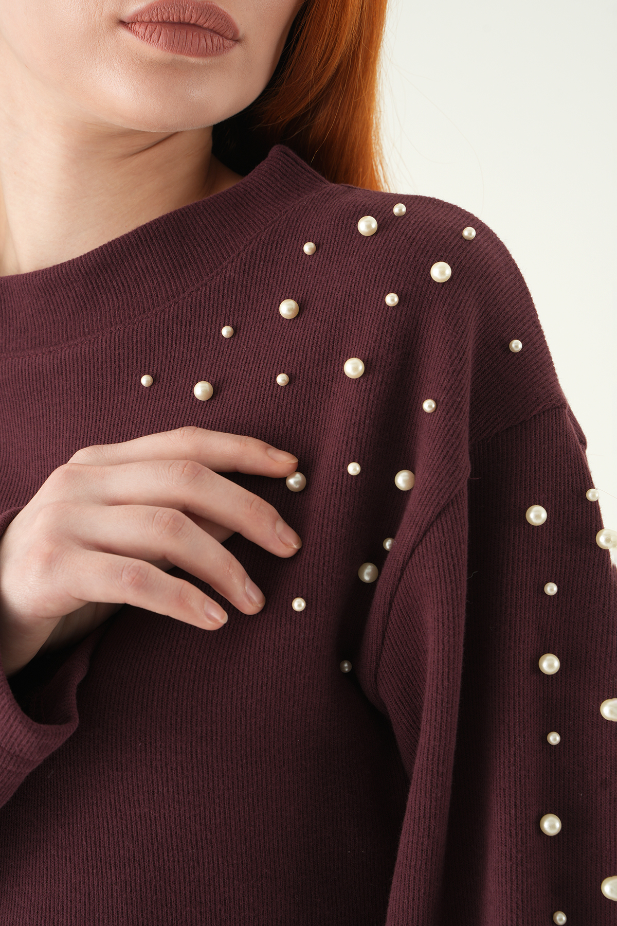 3129A İnci Detay Kazak Mürdüm