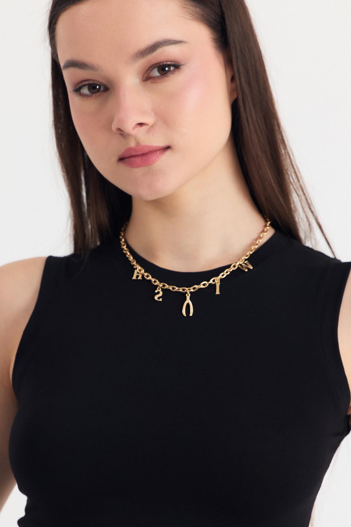 Sarı İnci Taş Detaylı Halter Yaka Ribanalı Atlet 0649