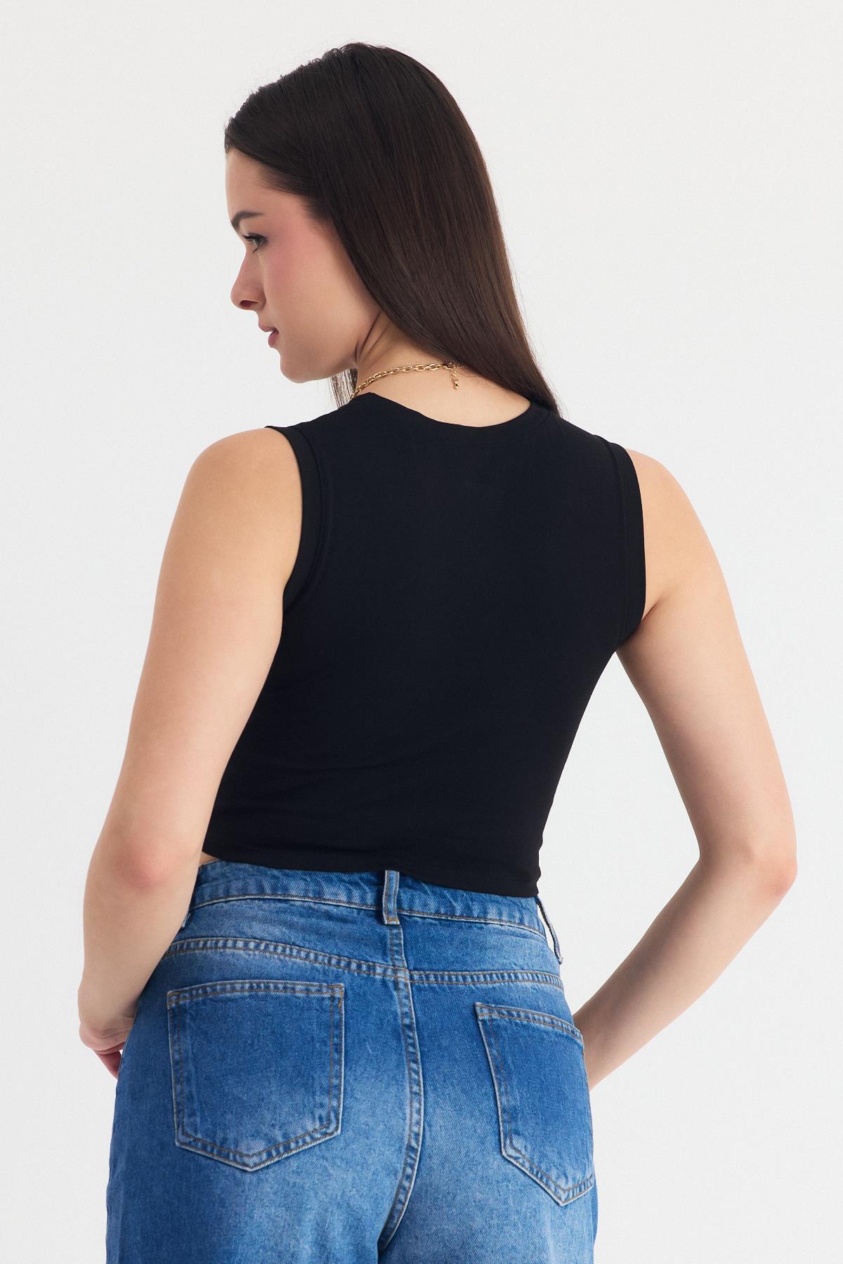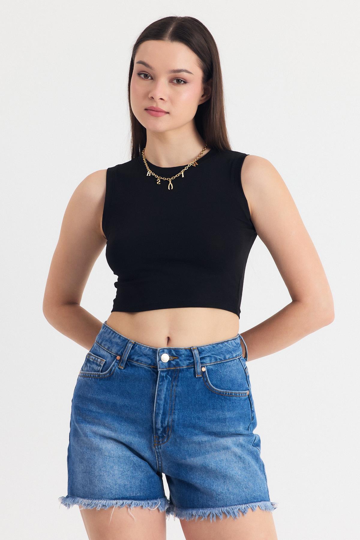 Siyah Kolsuz Bisiklet Yaka Crop Atlet 318