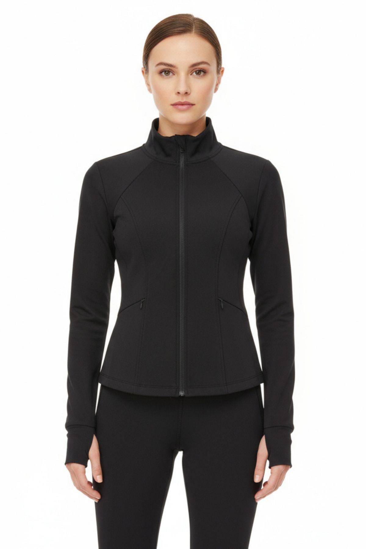 Füme Dik Yaka Fermuarlı Kadın Spor Ceket 3196