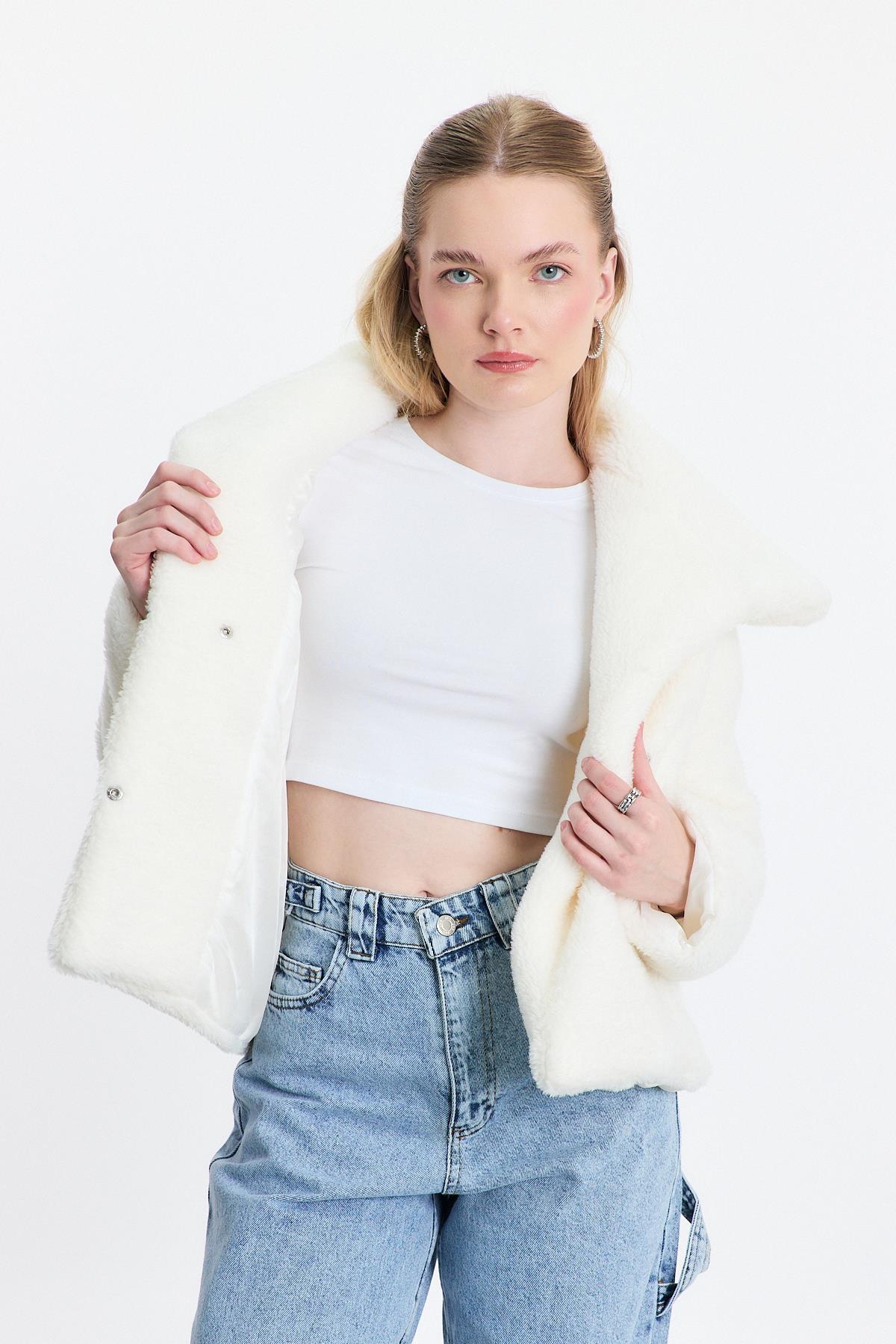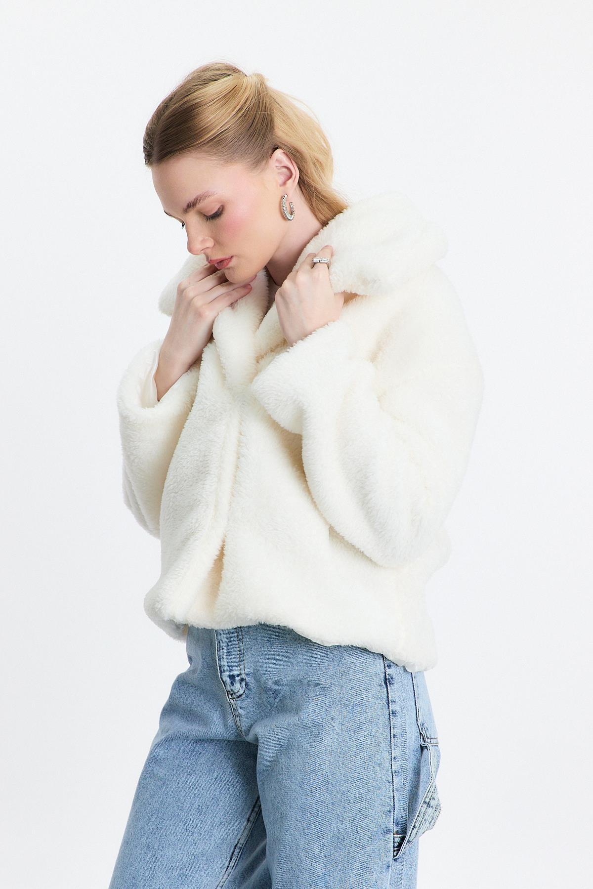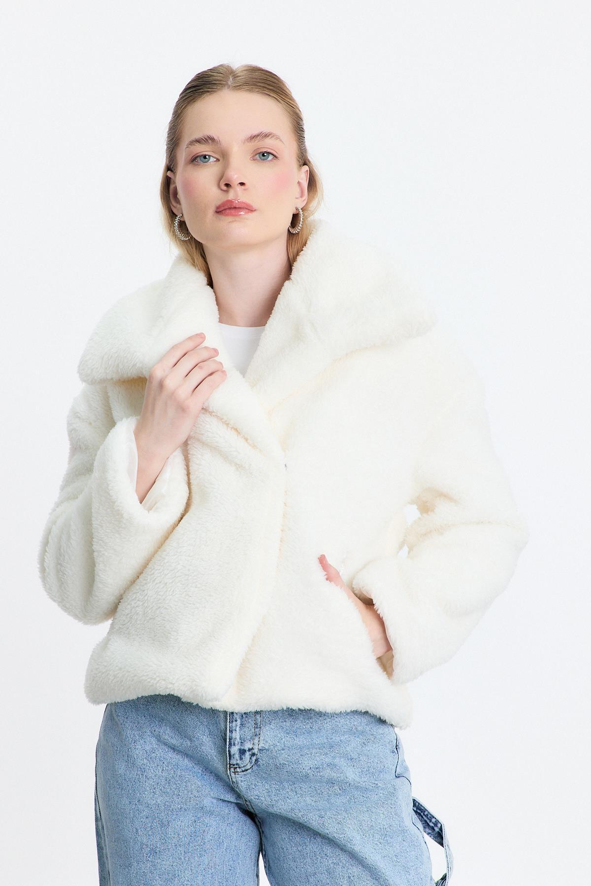 Ekru Geniş Yaka Yumoş Ceket 3217