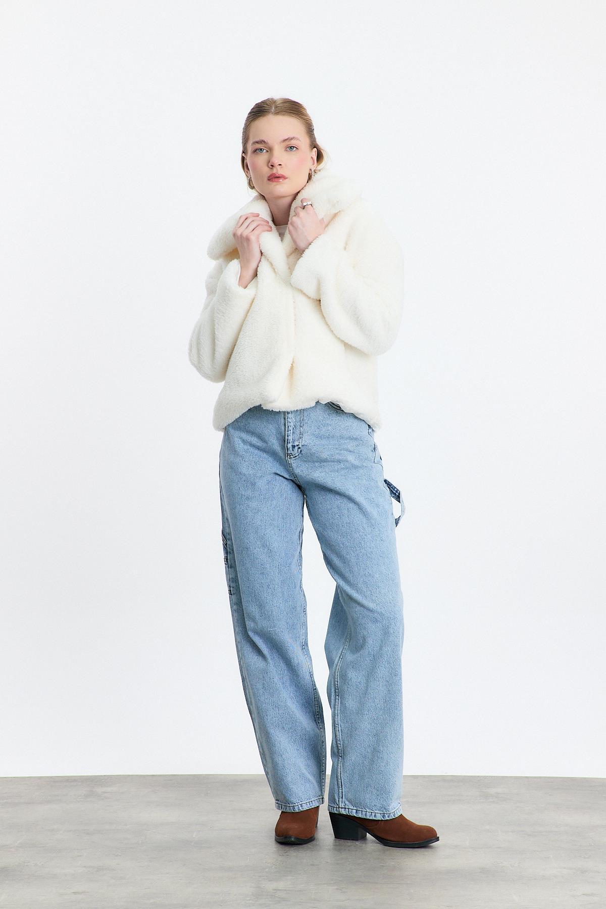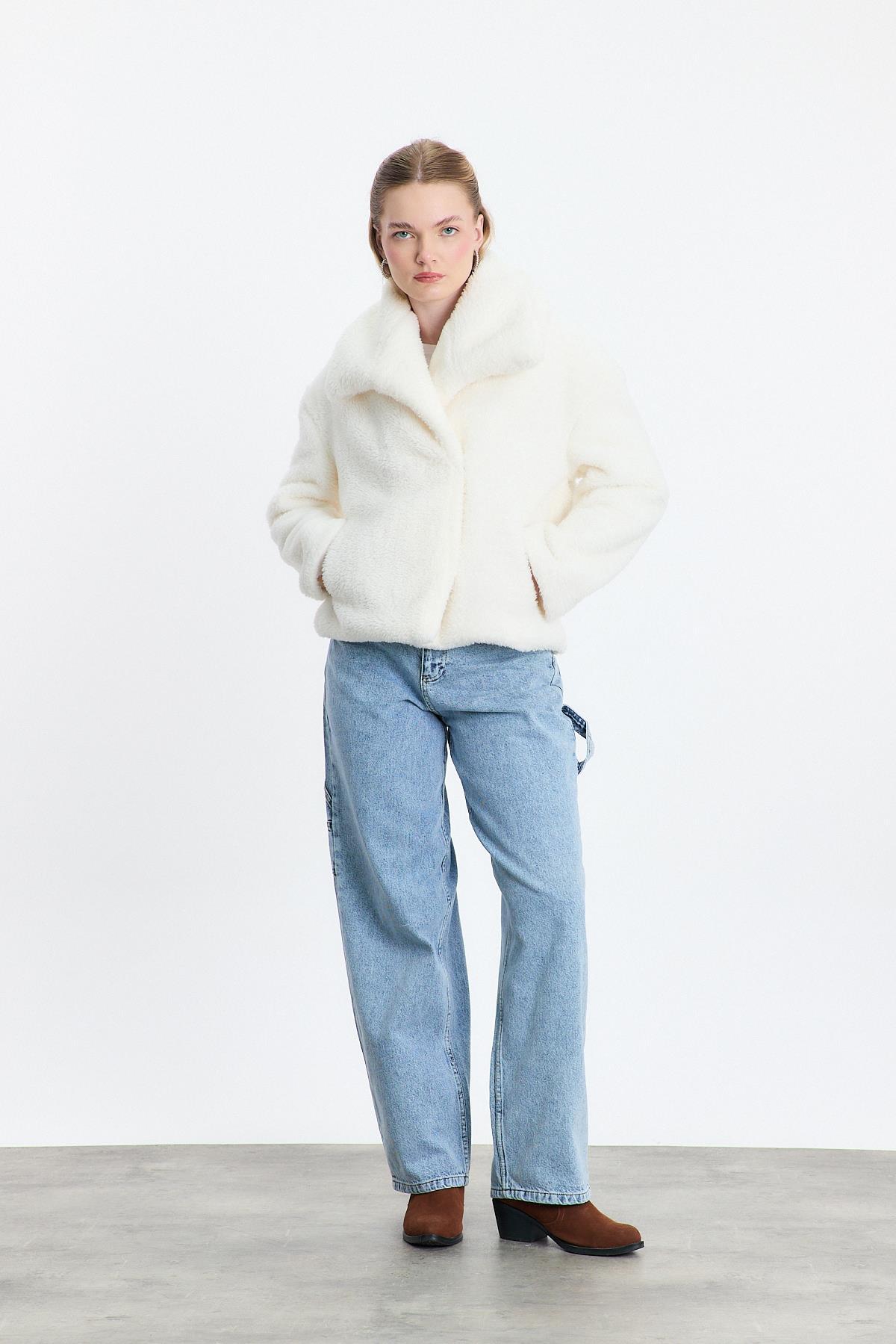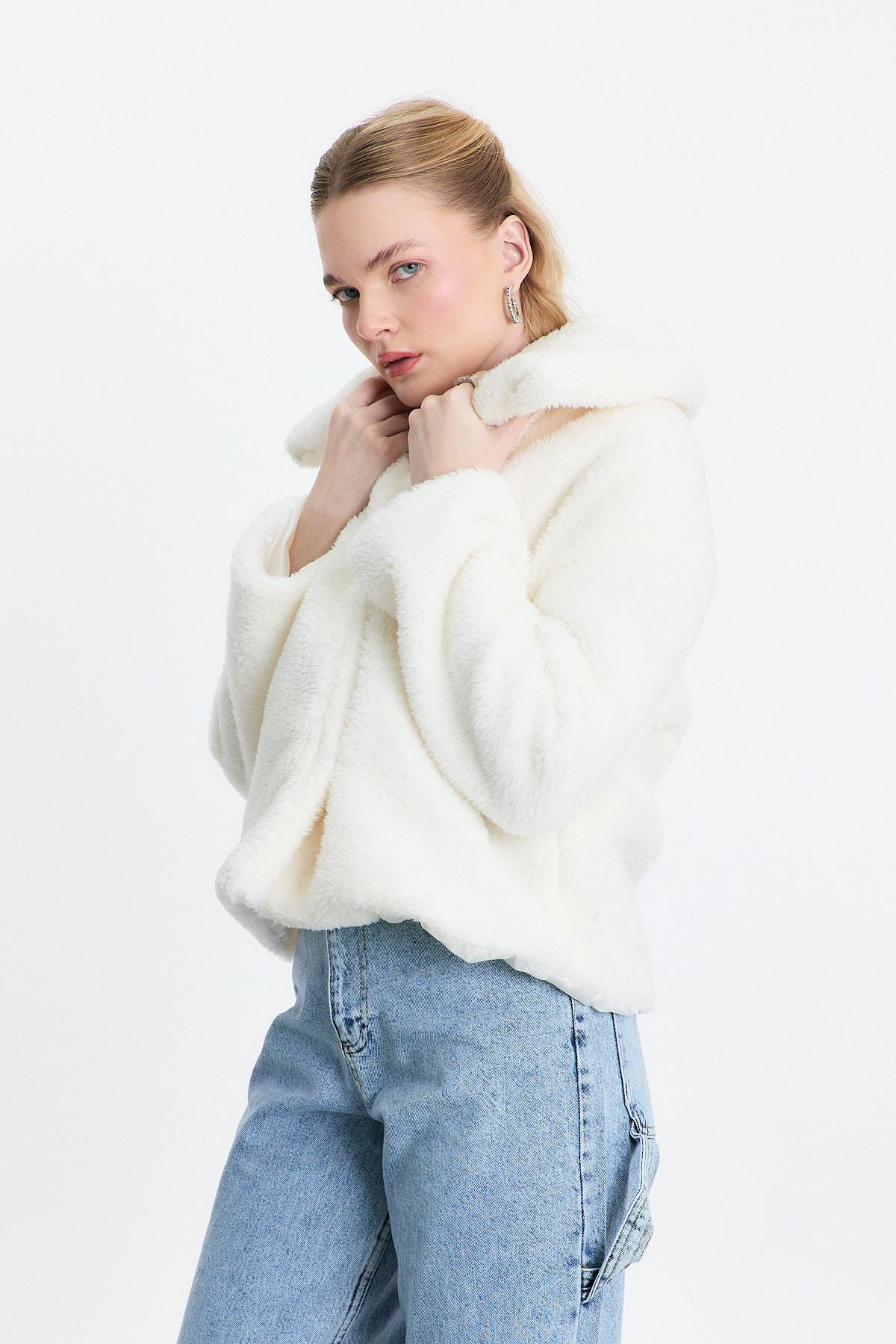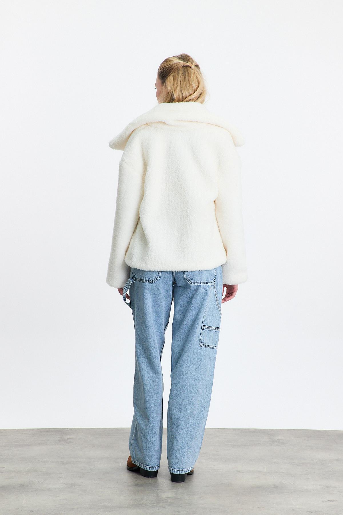 Ekru Geniş Yaka Yumoş Ceket 3217