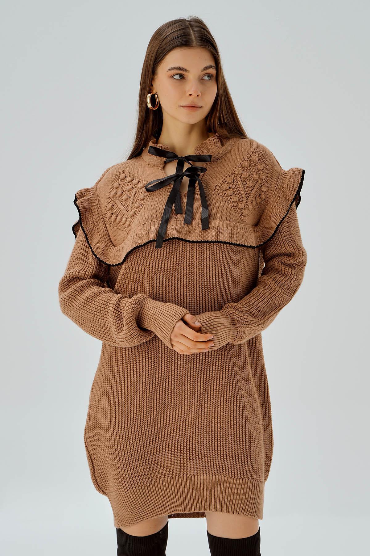 Kahve Gömlek Yaka Kazak 3082A