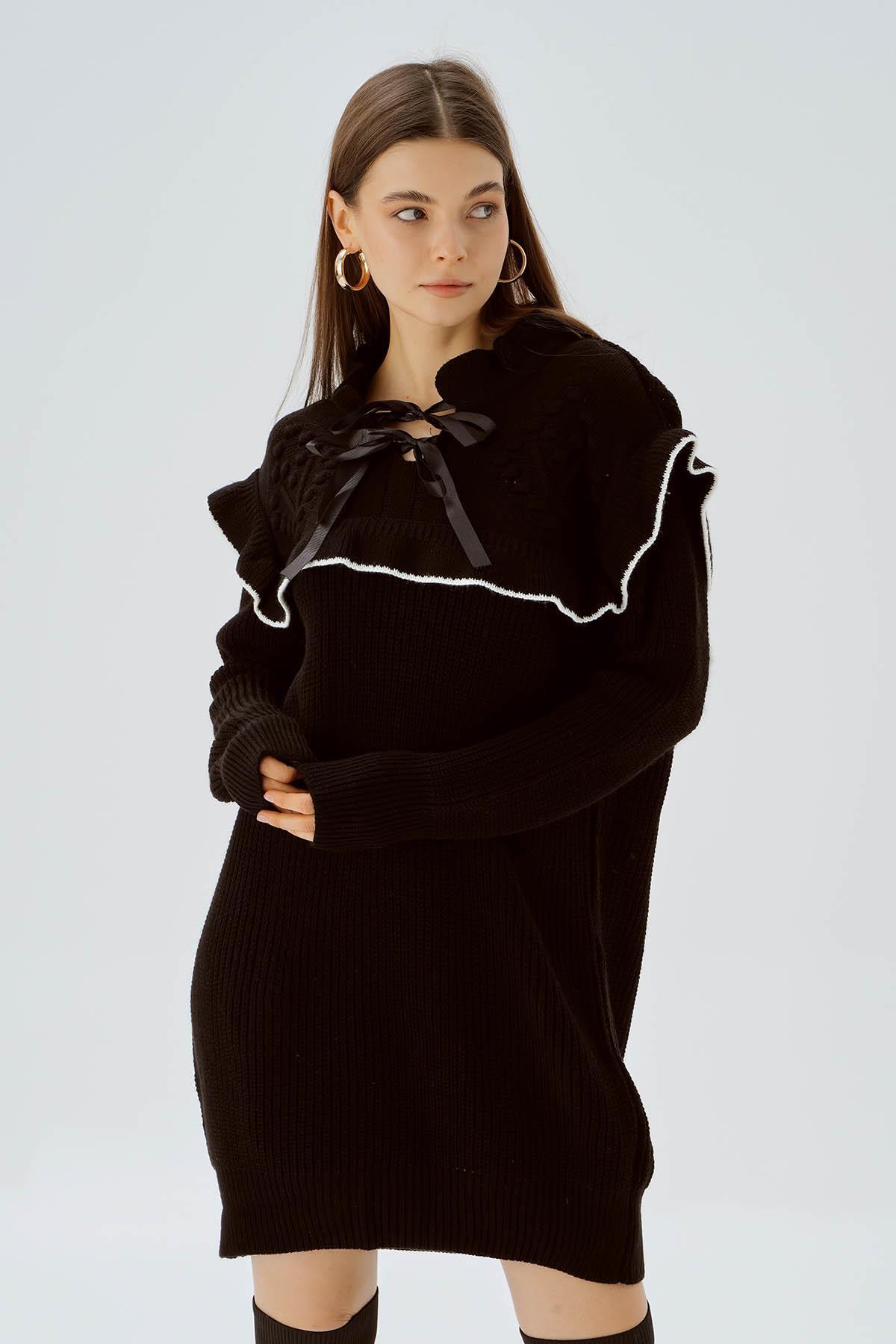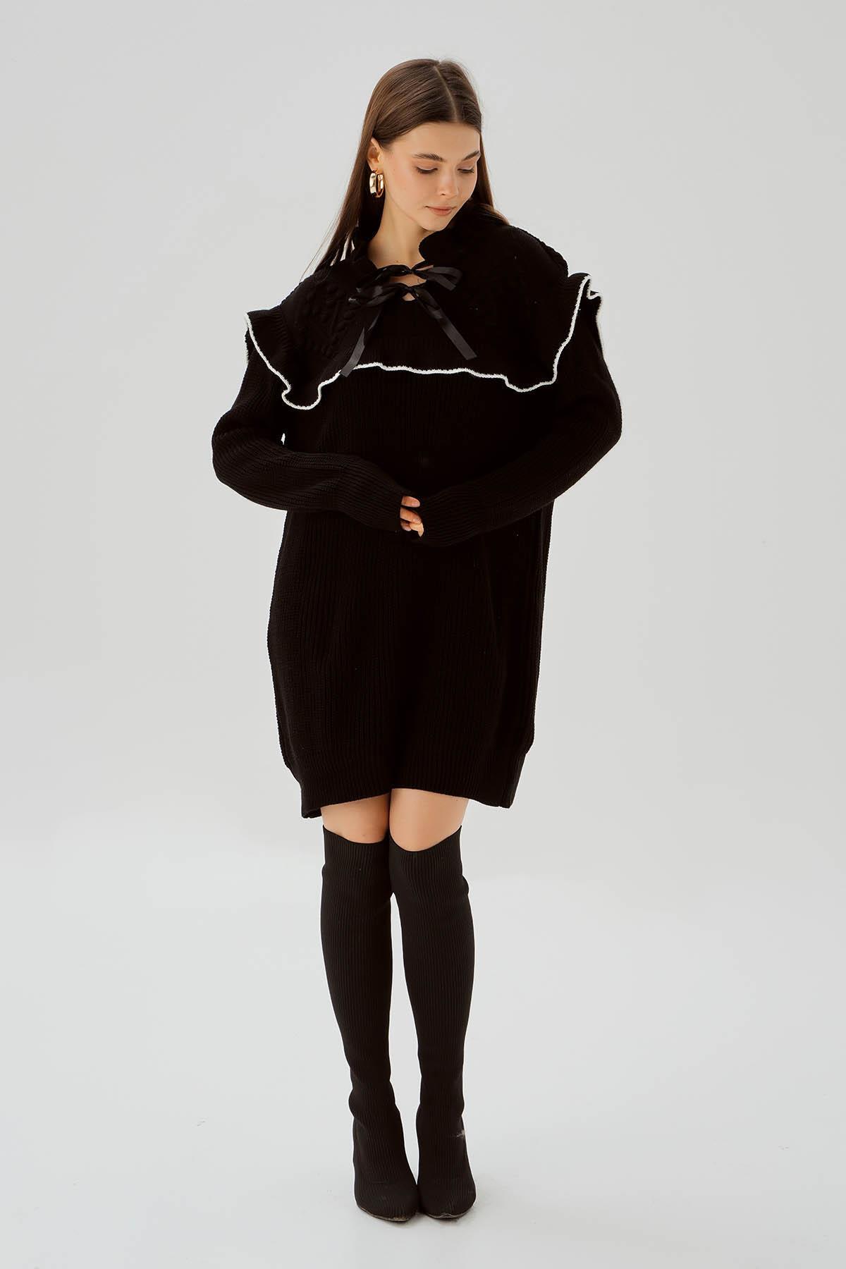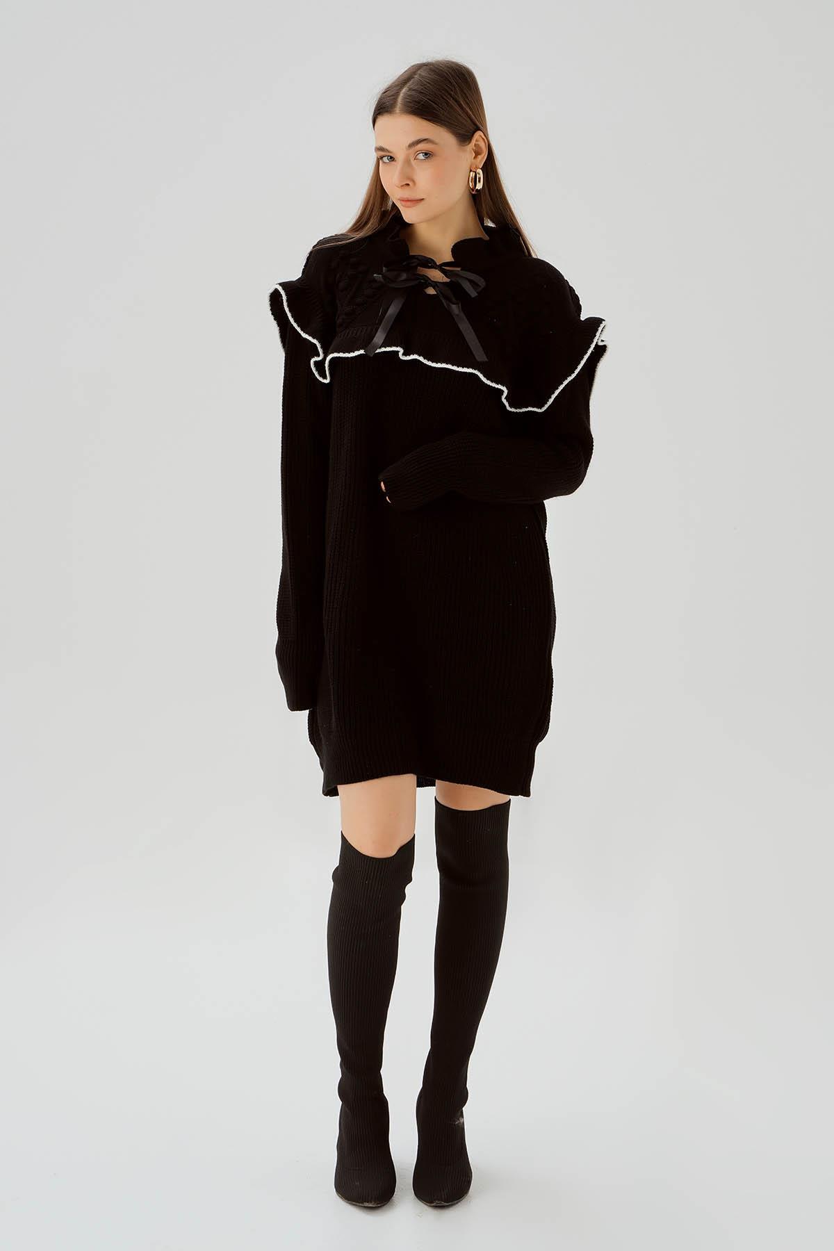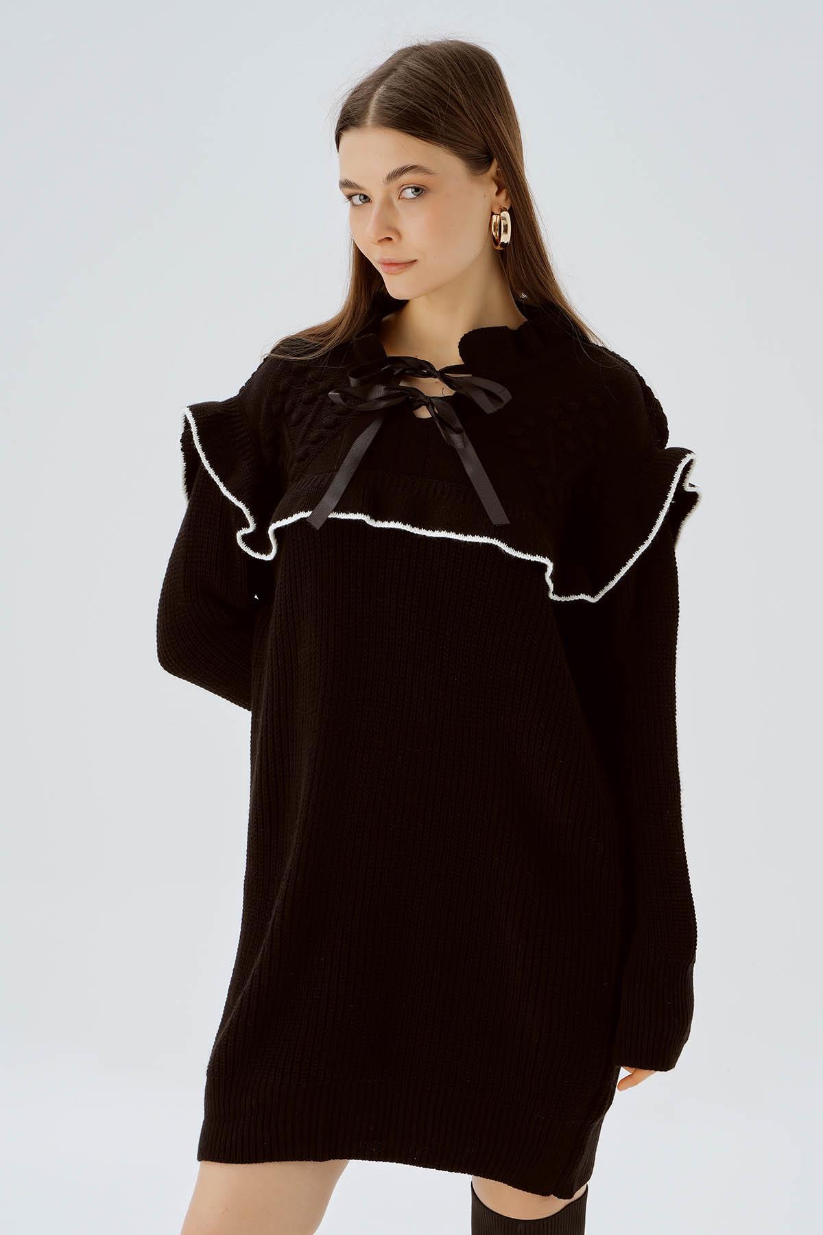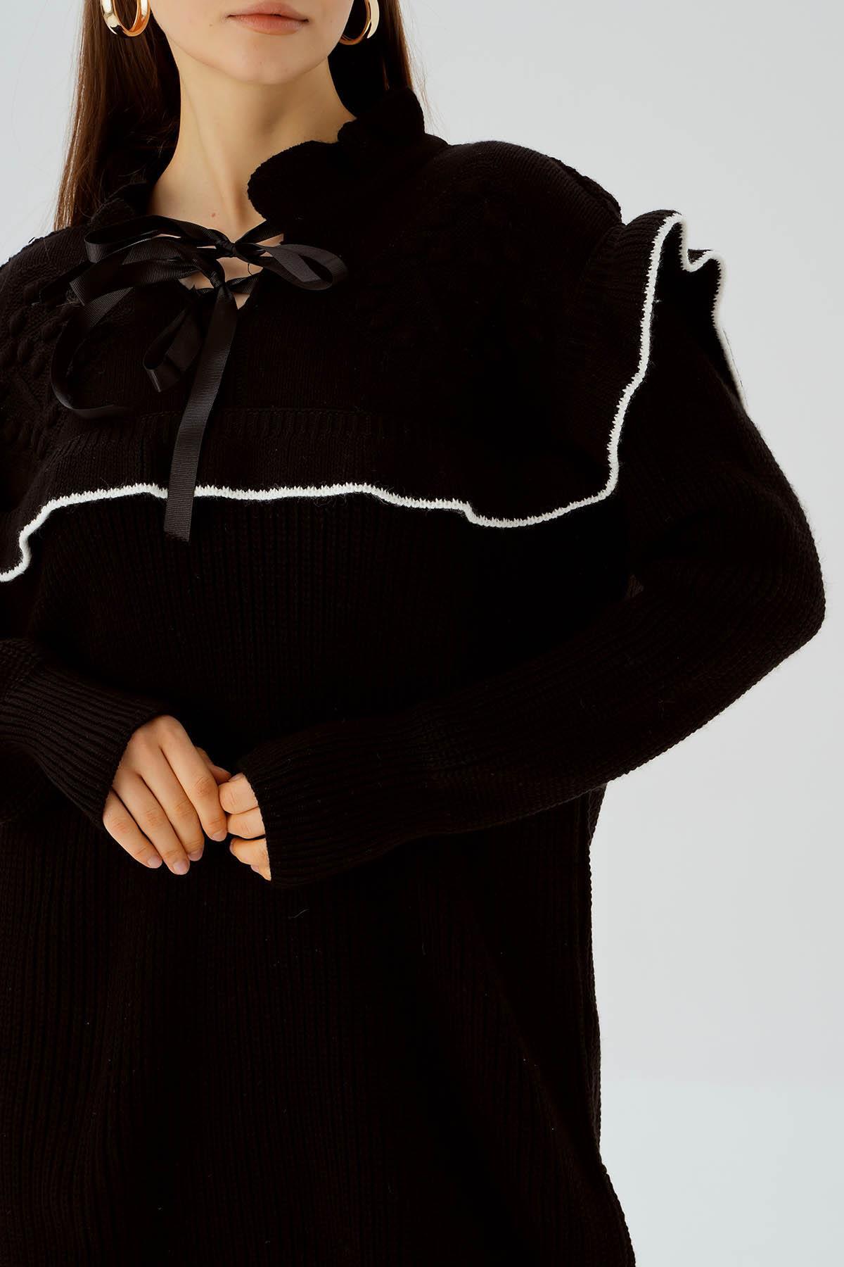 Siyah Kurdele Detay Kazak 3296