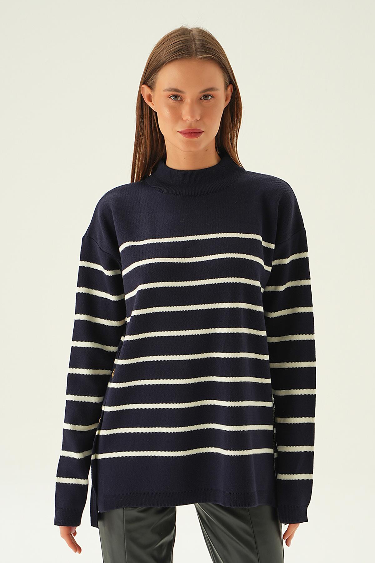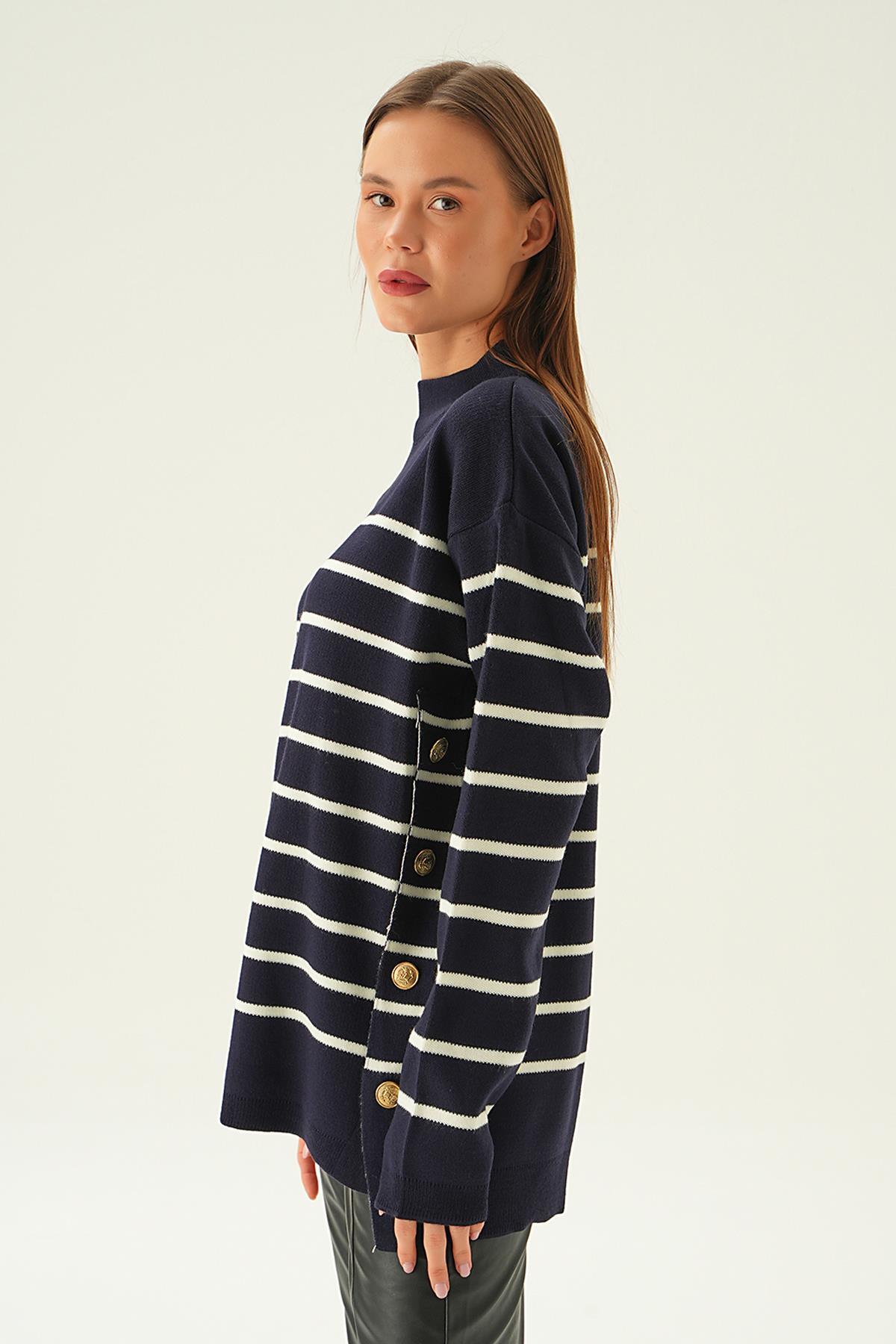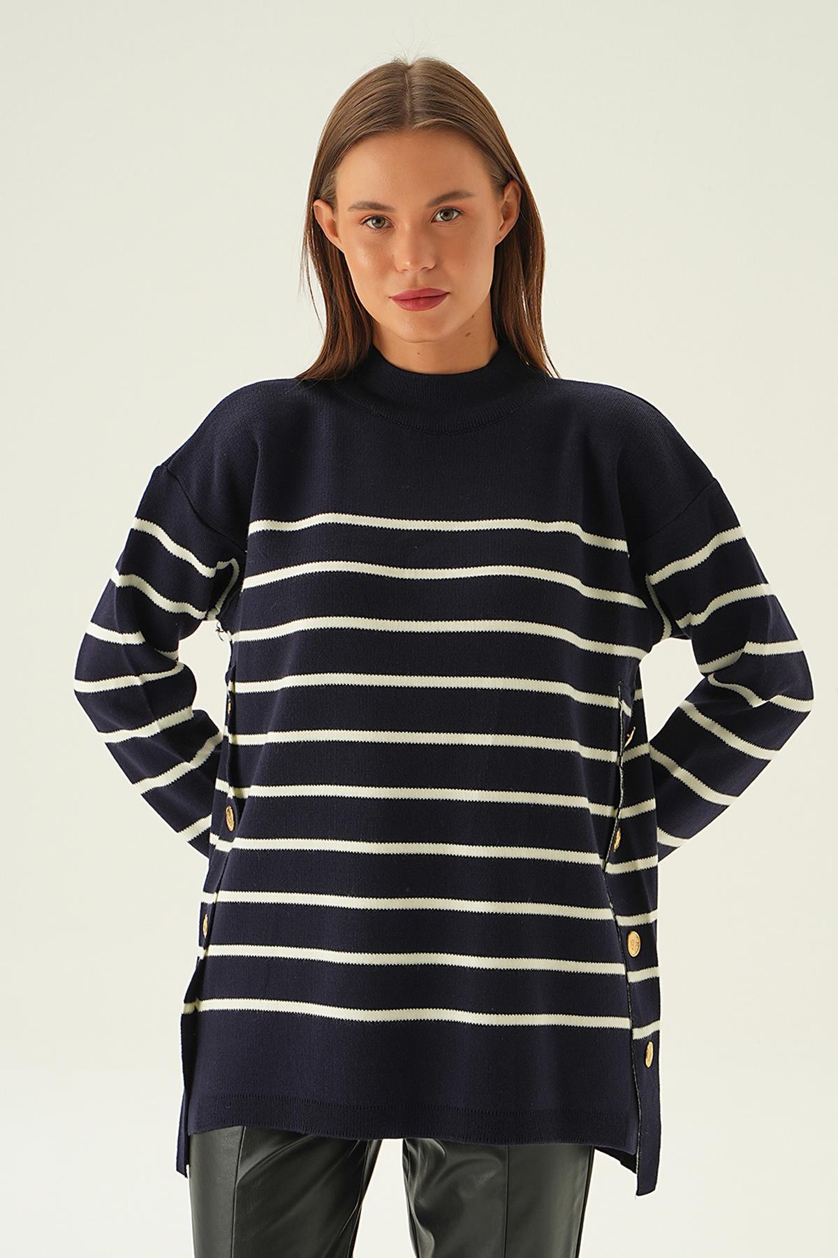 Laci Çizgili Yan Düğmeli Kazak 3370