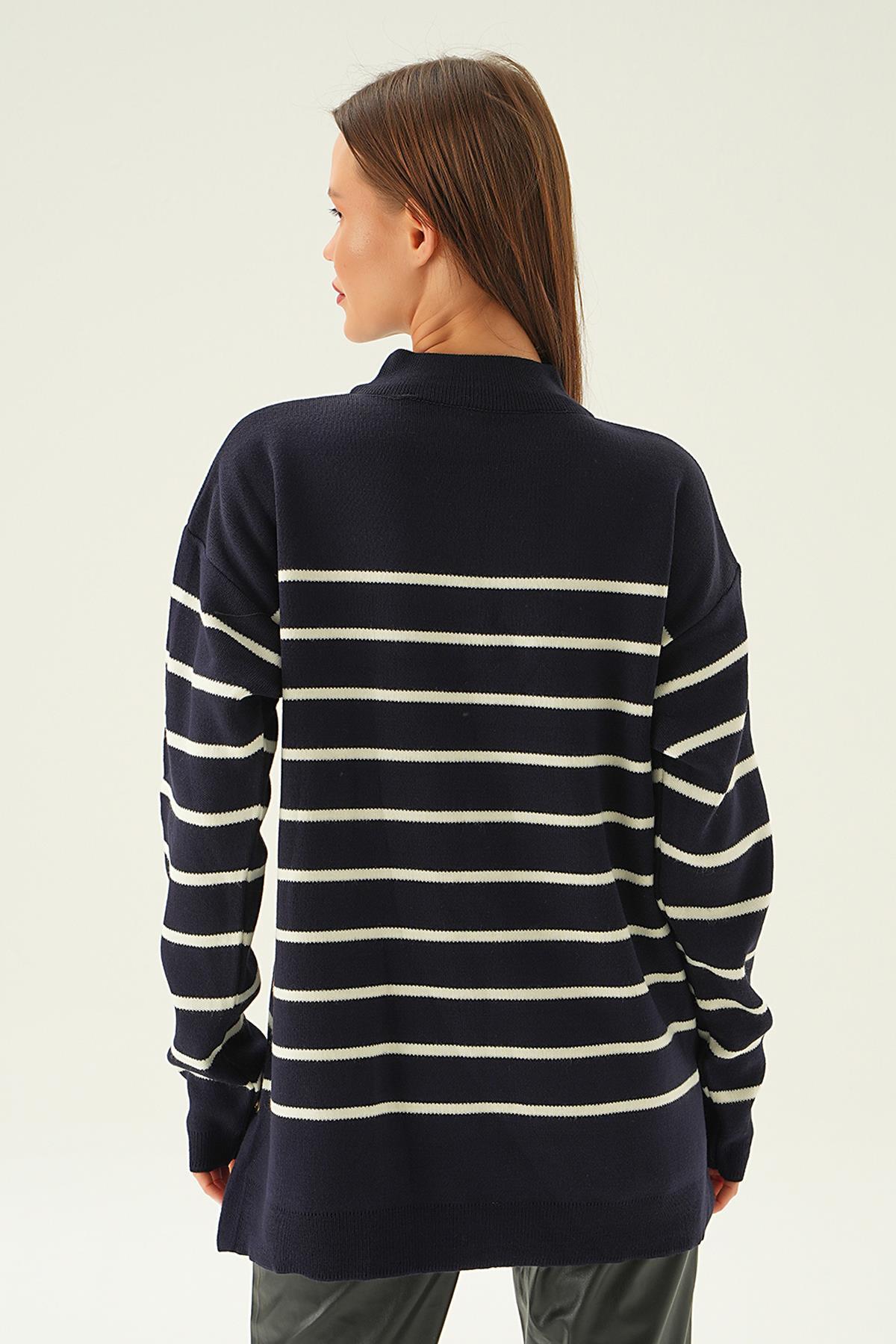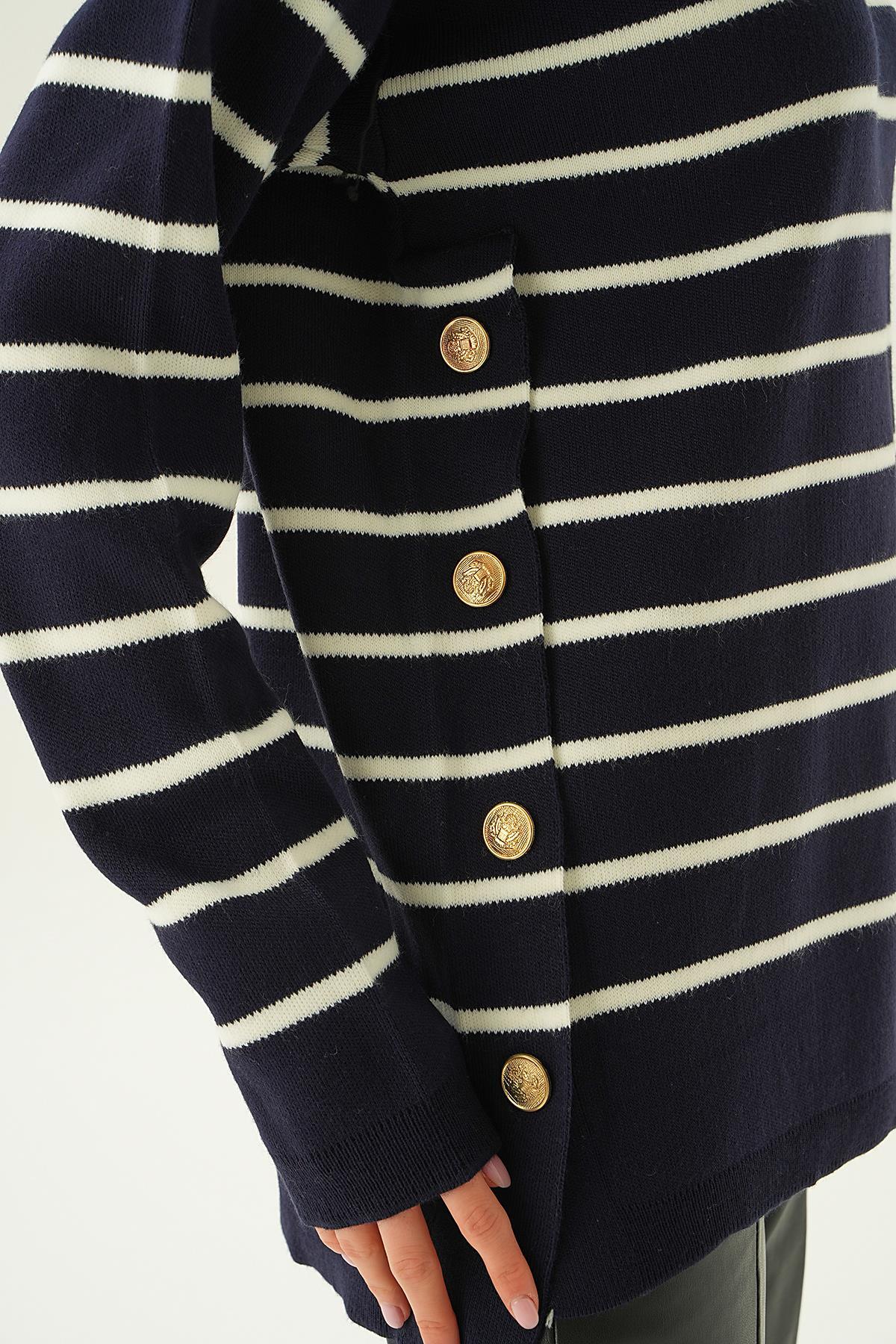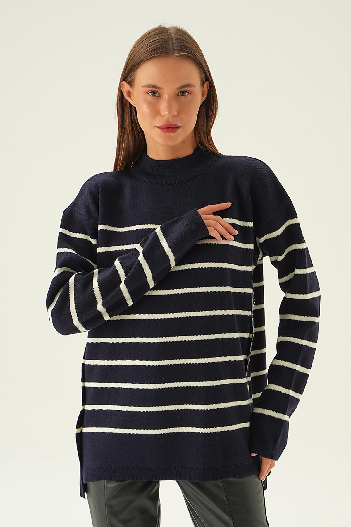 Laci Çizgili Yan Düğmeli Kazak 3370