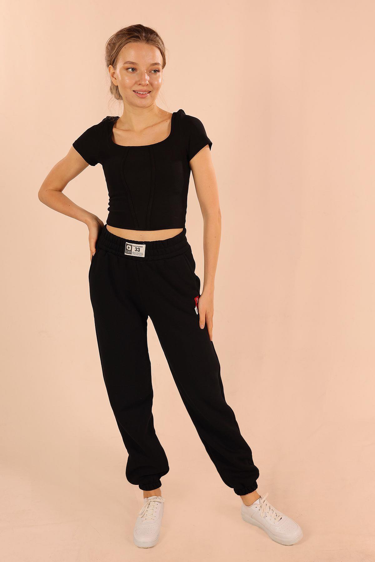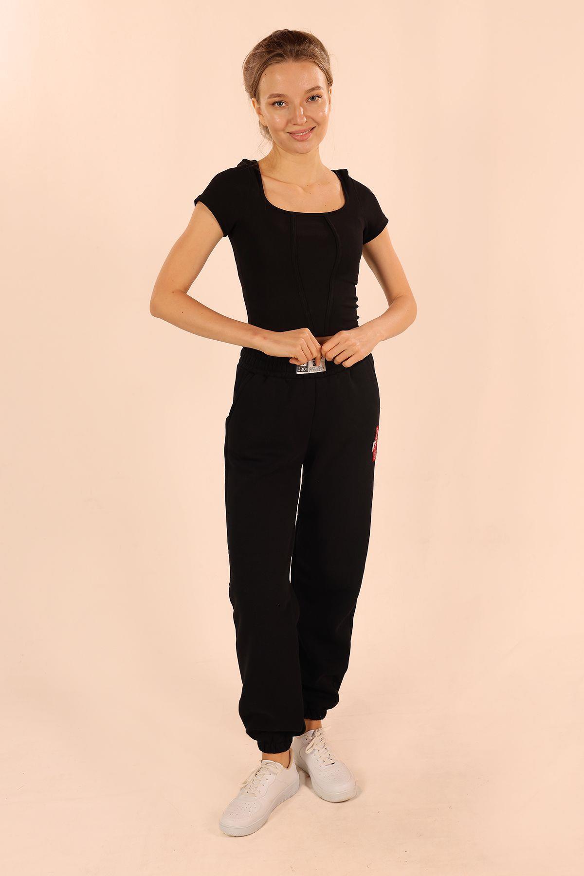 Siyah Arma Detay Cepli Eşofman 3375