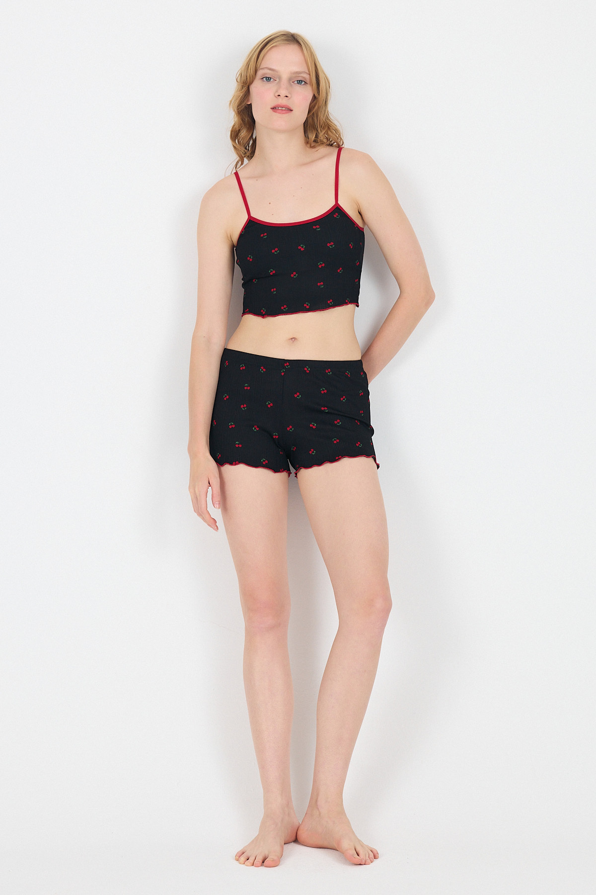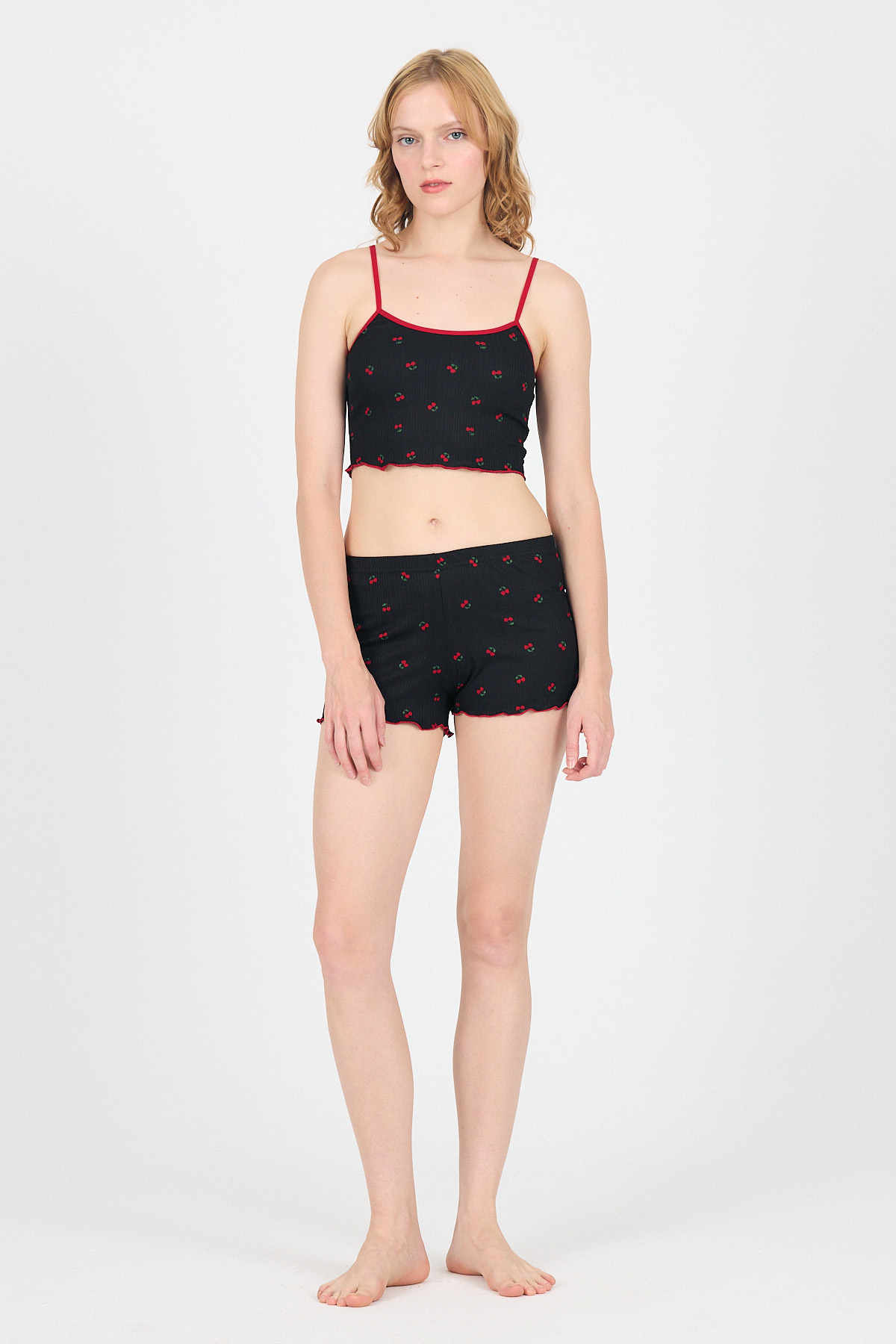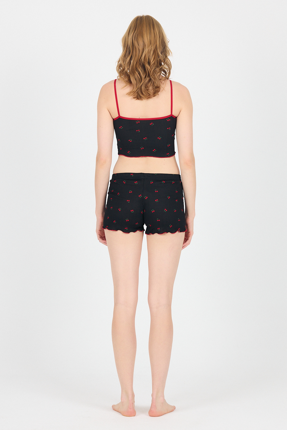 Siyah Kiraz Desenli Atlet Şort Takım 3403