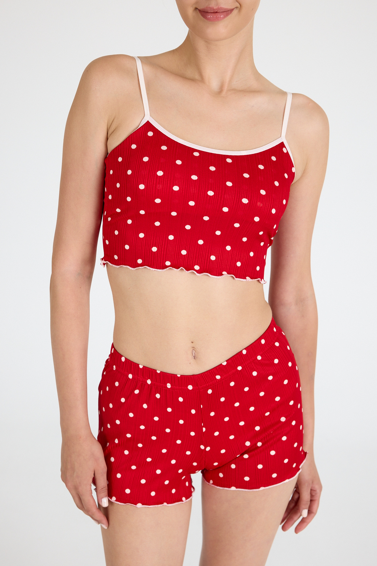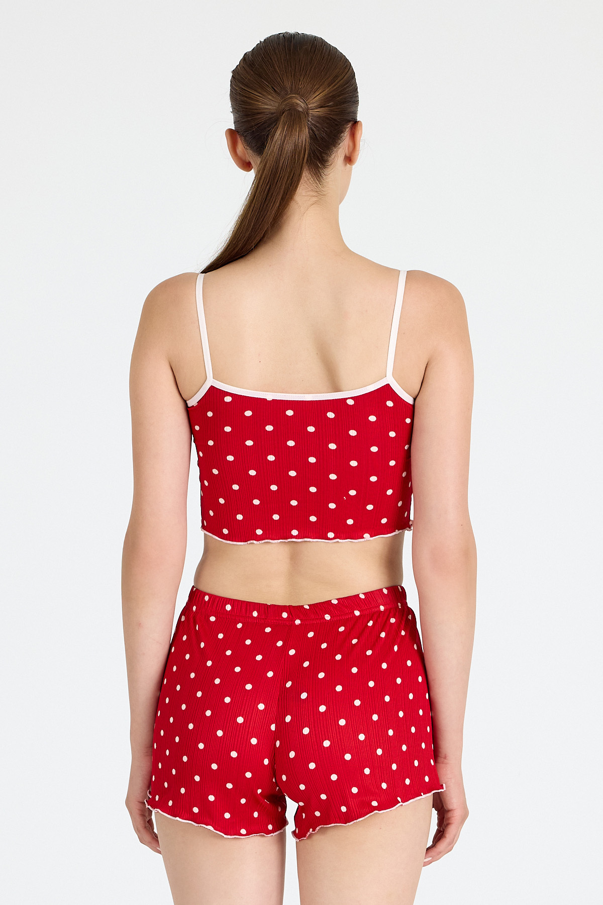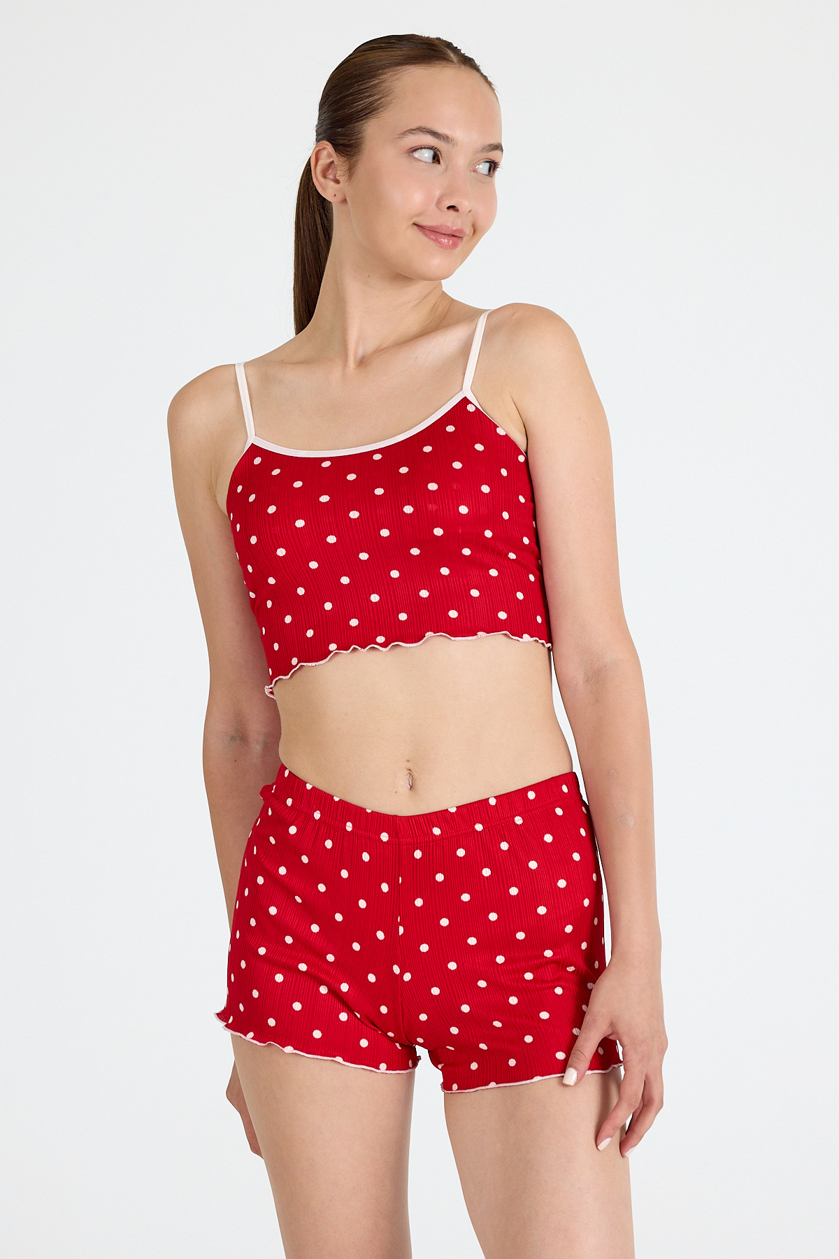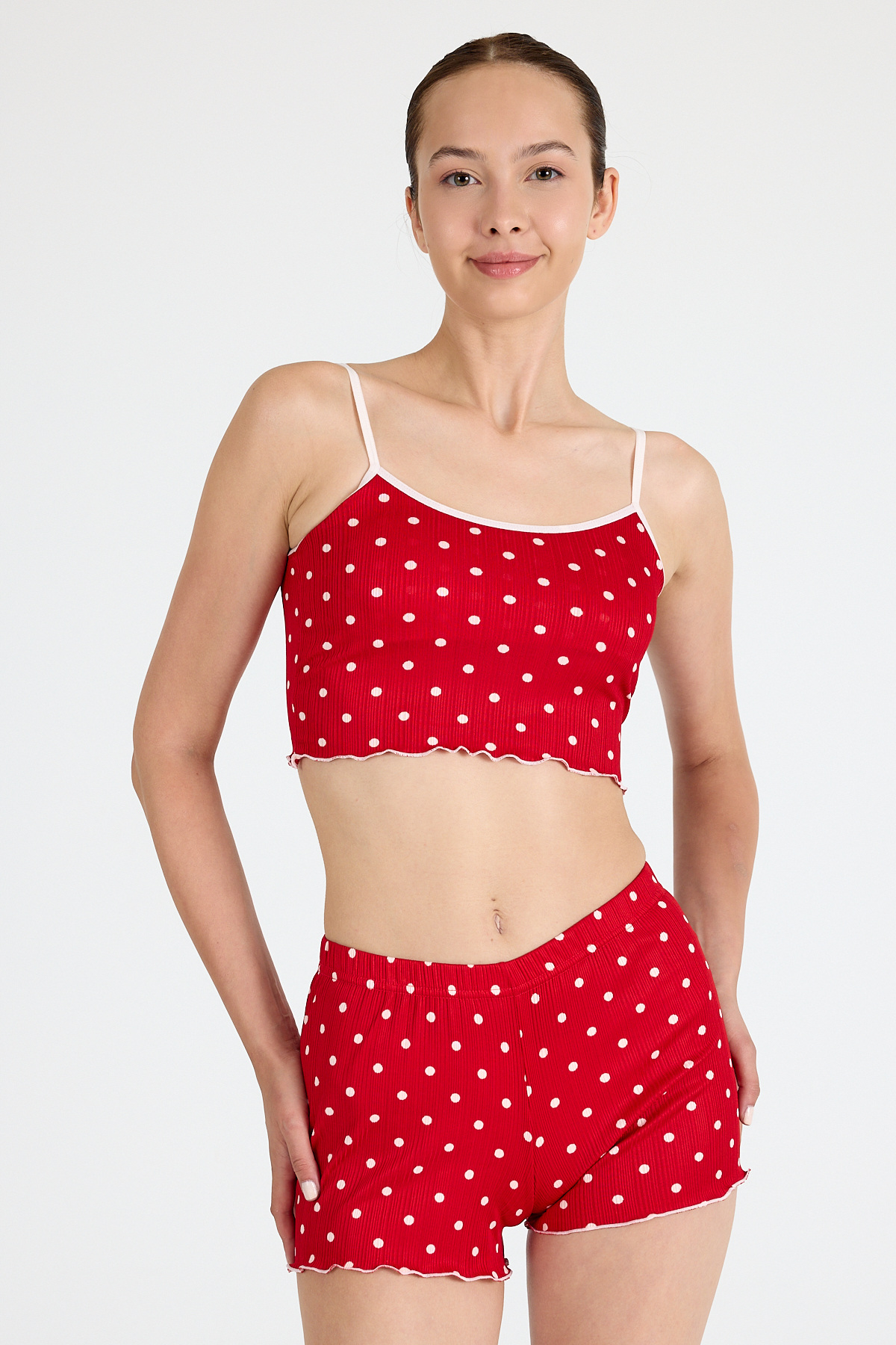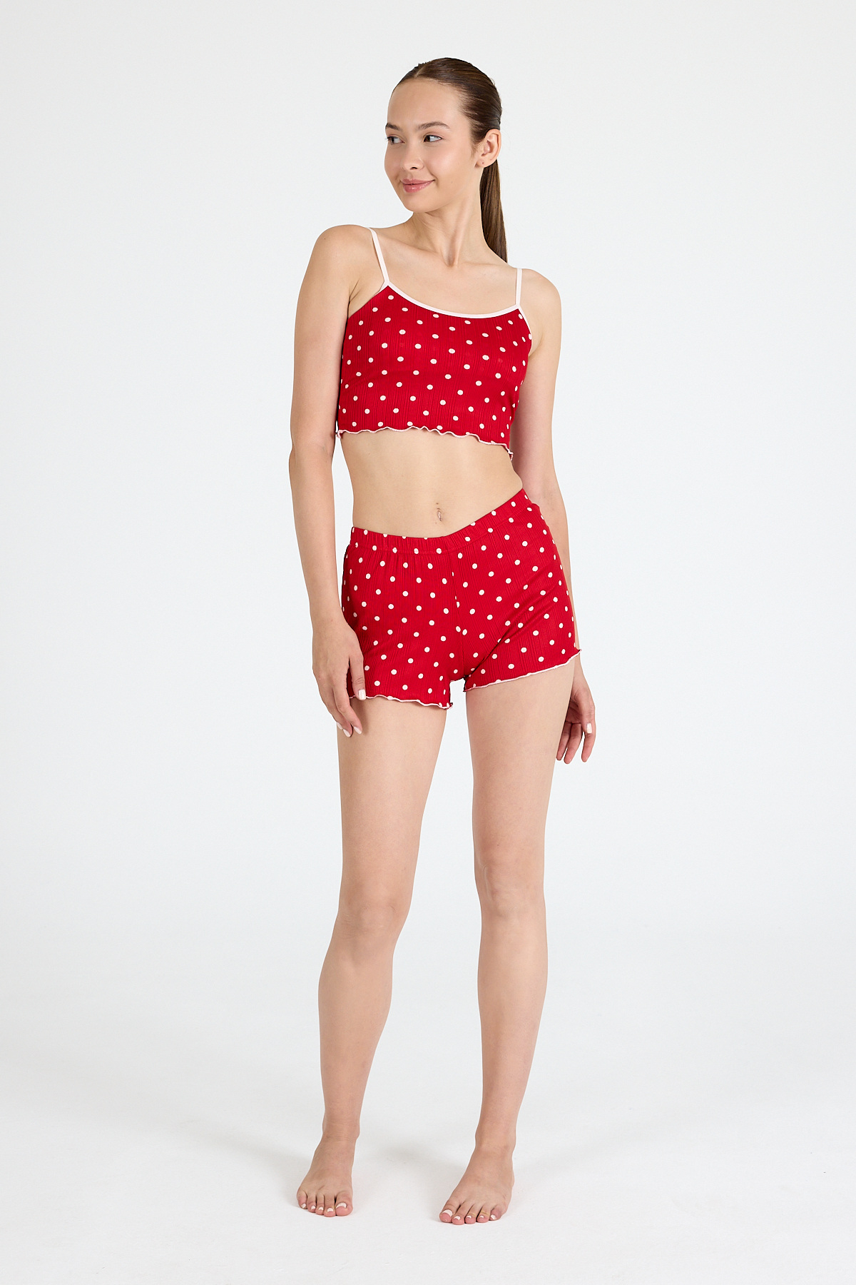 Kırmızı Puantiye Desenli Atlet Şort Takım 3404