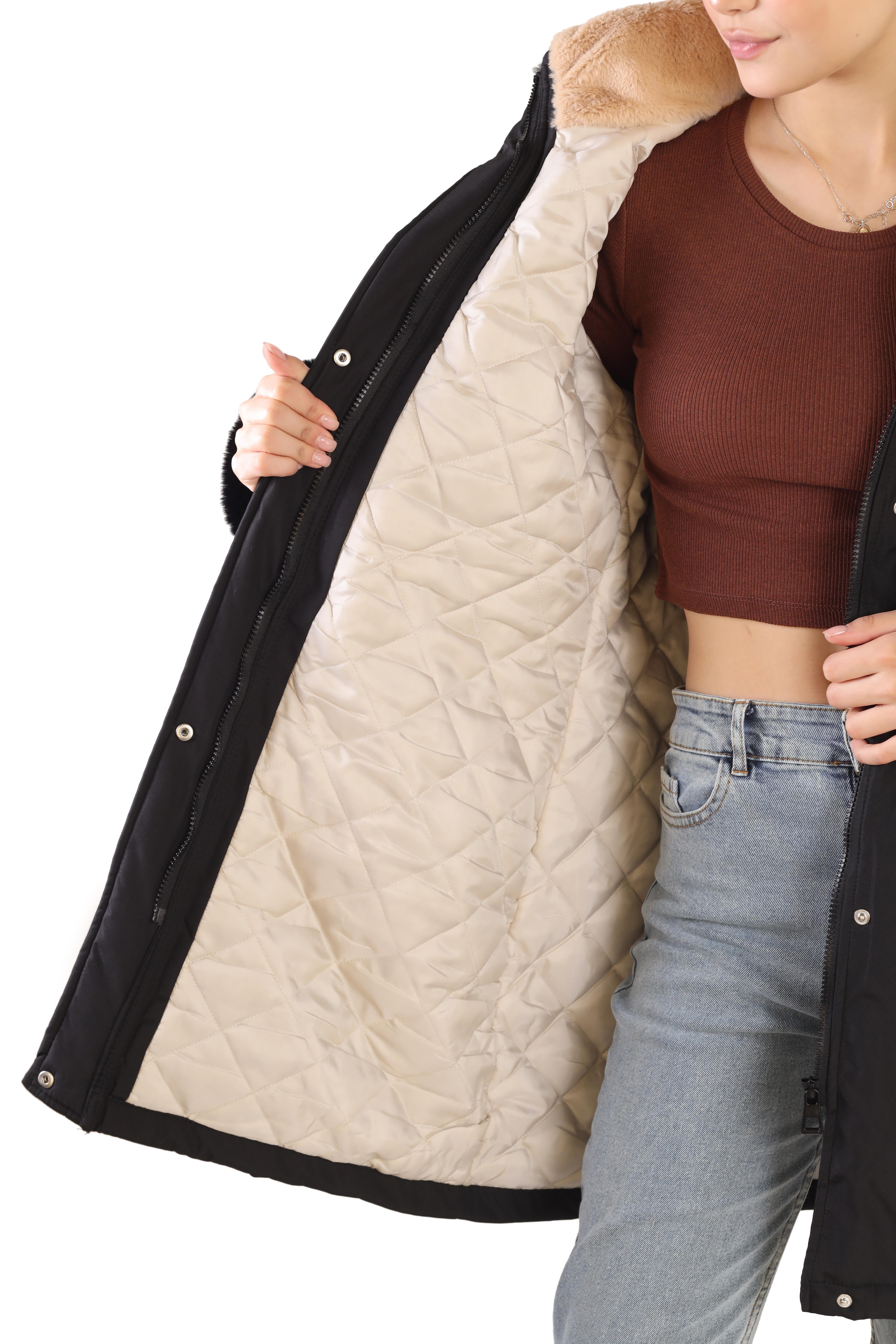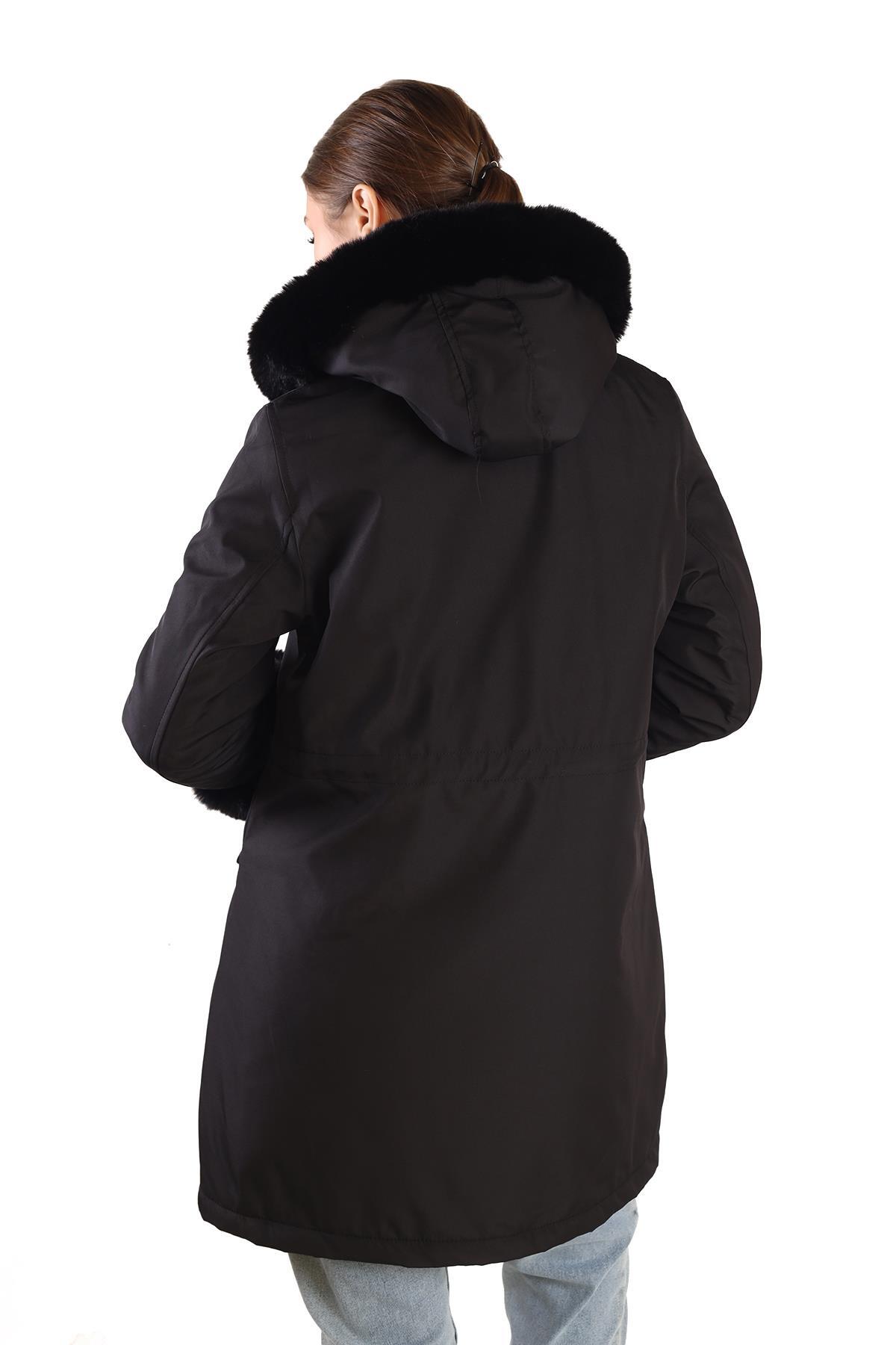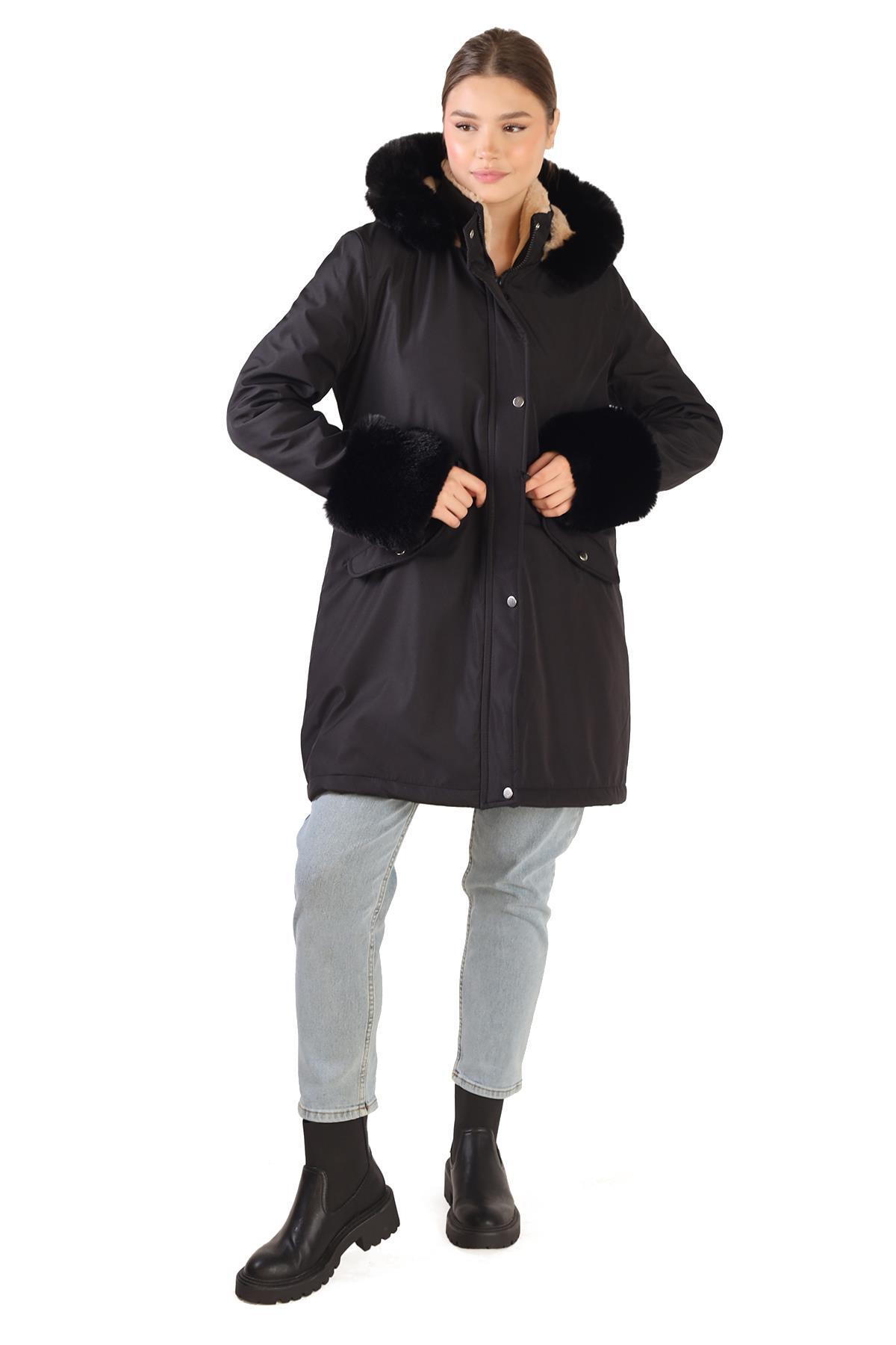 Siyah Kolu Kürklü Uzun Mont 3434