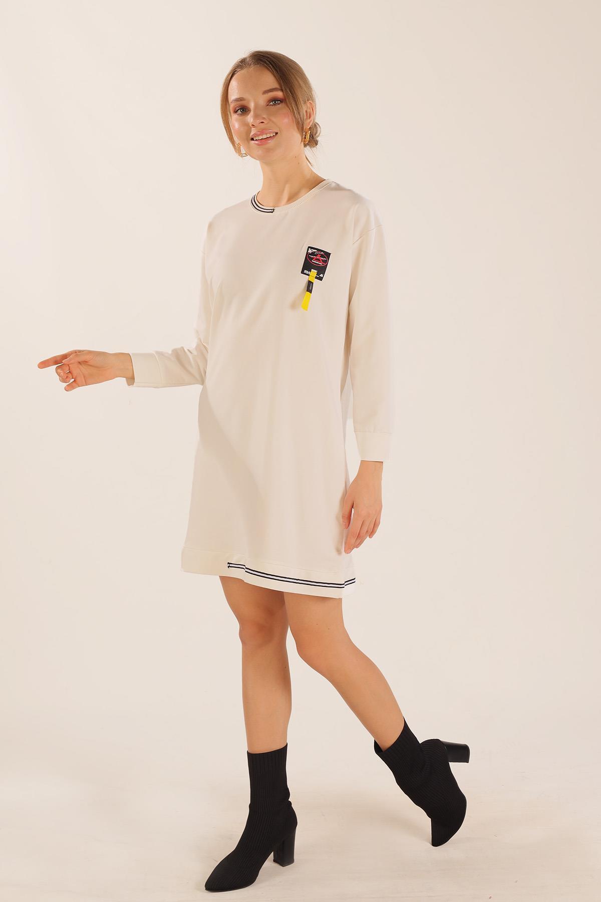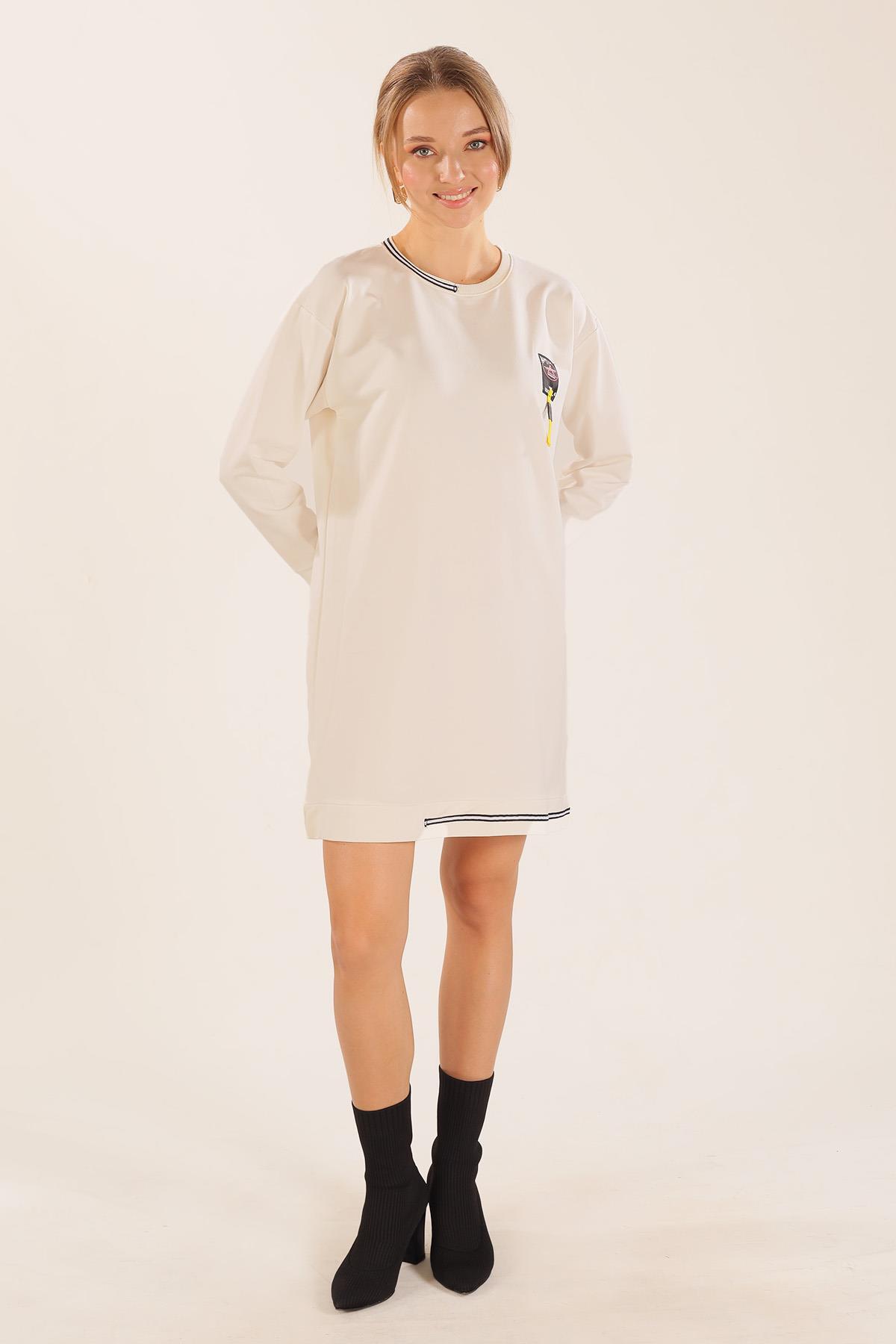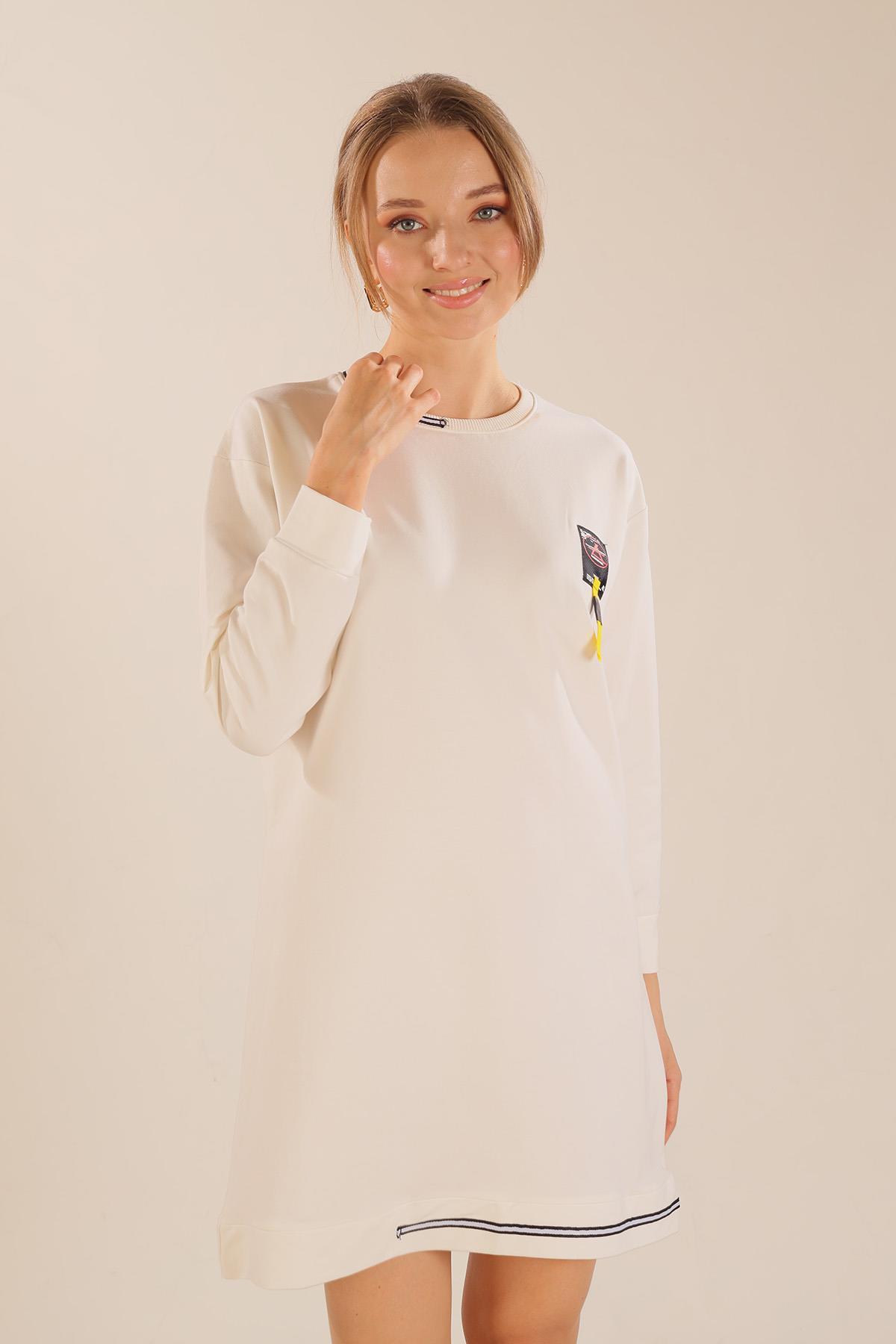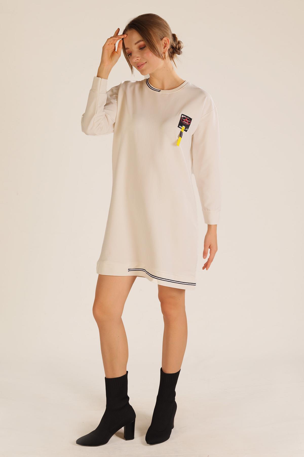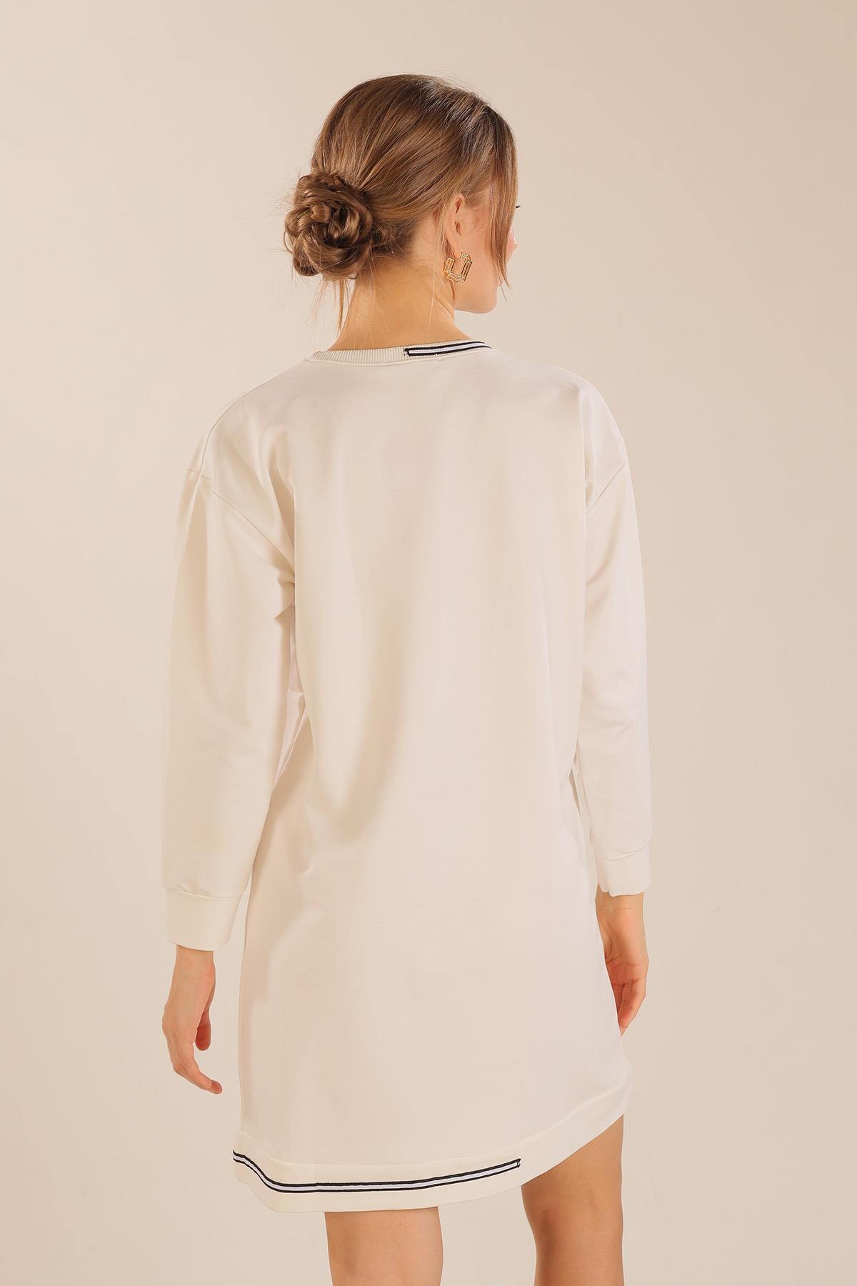 Beyaz Yaka Şerit Arma Detay Sweat 2684