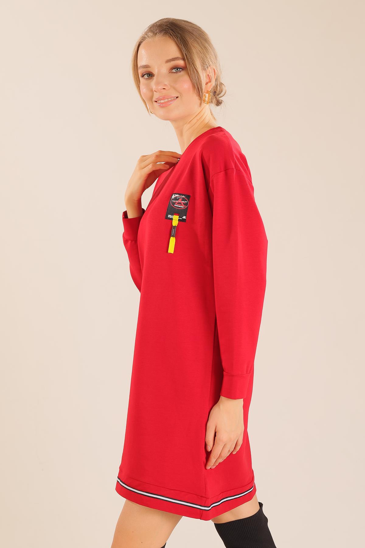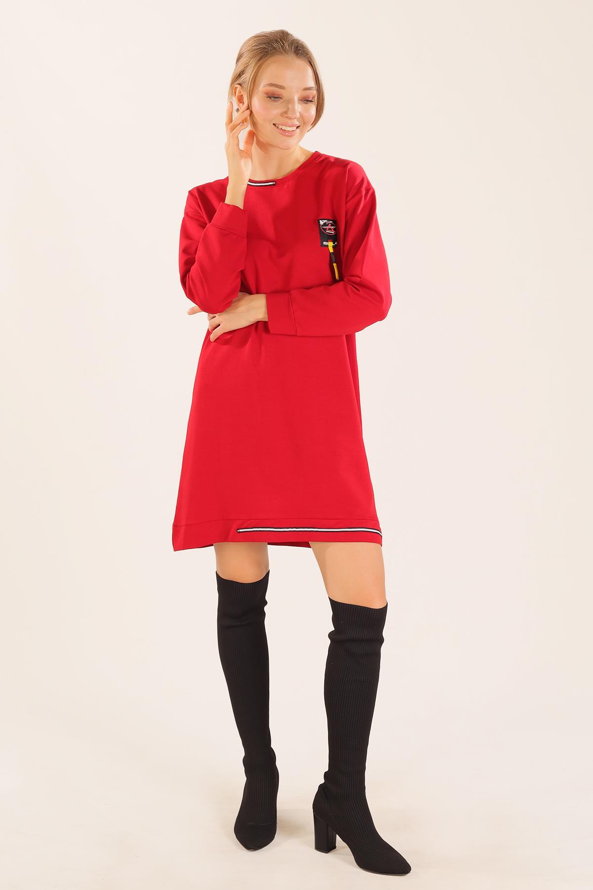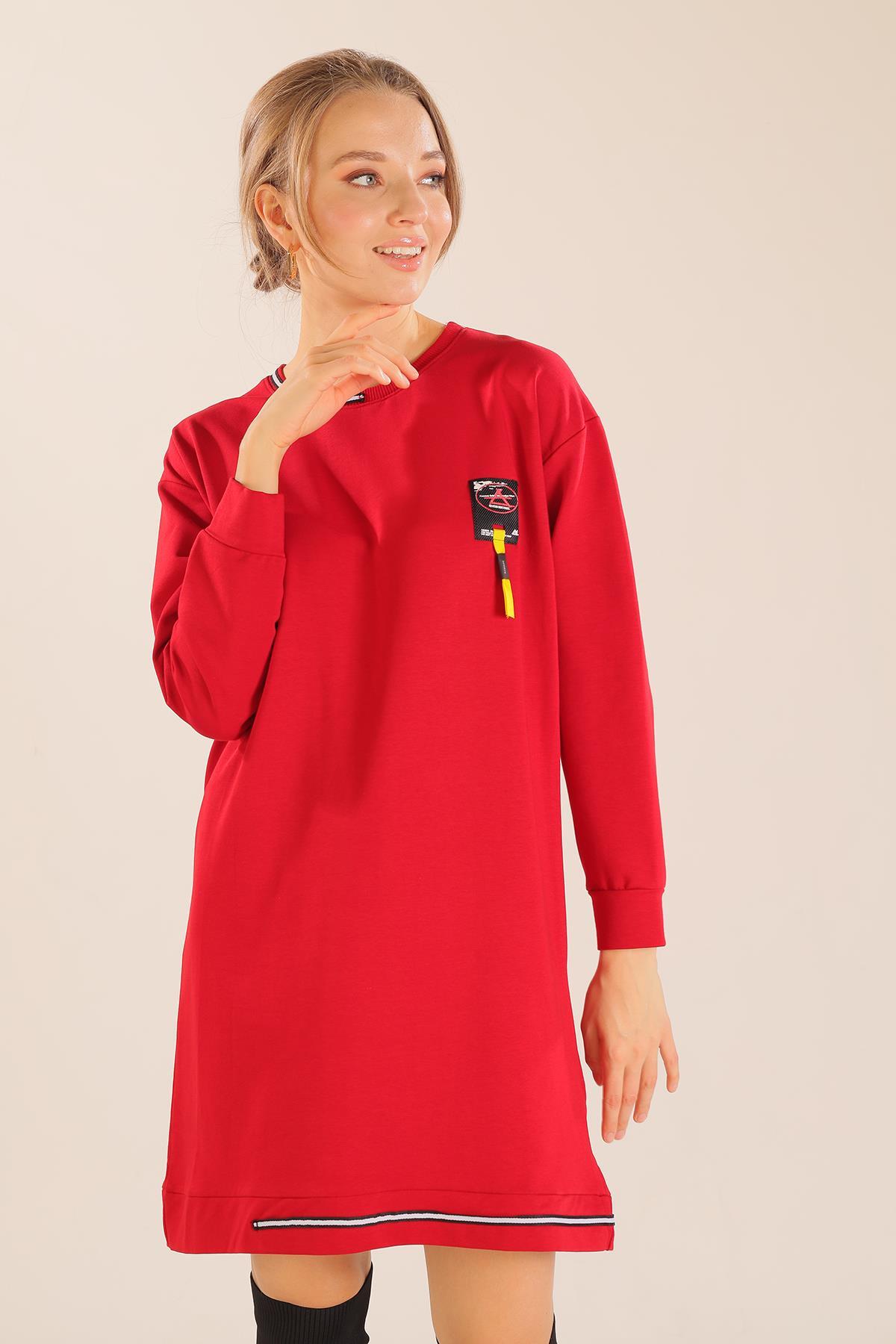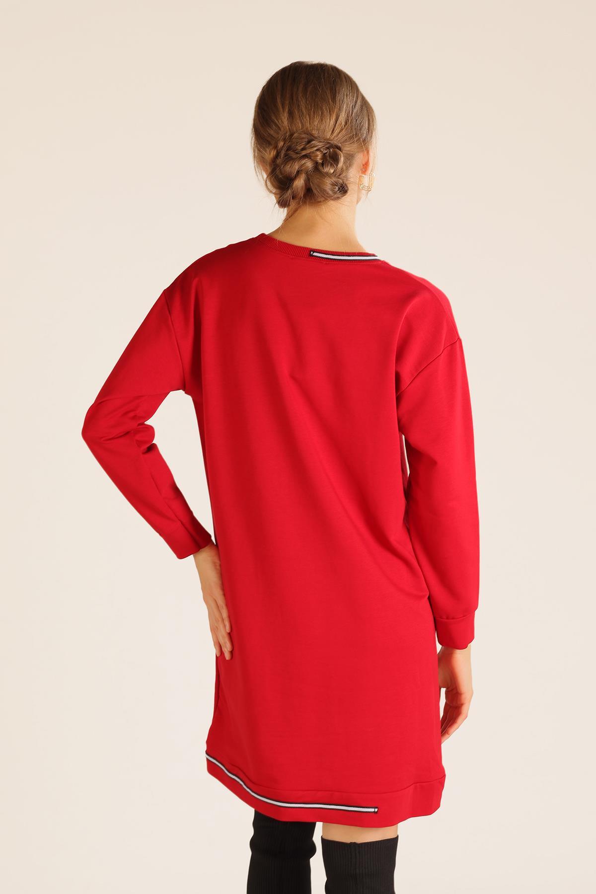 Kırmızı Yaka Şerit Arma Detay Sweat 2684