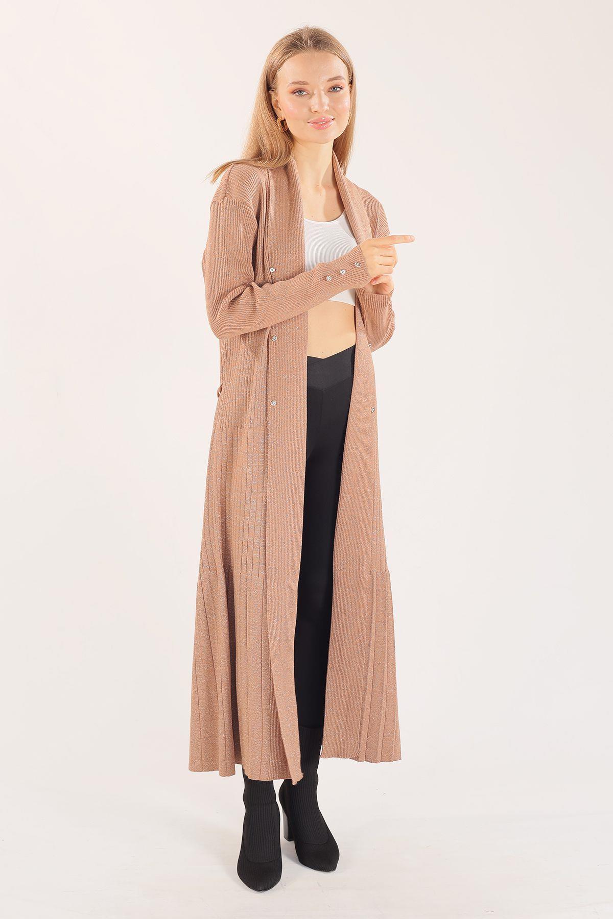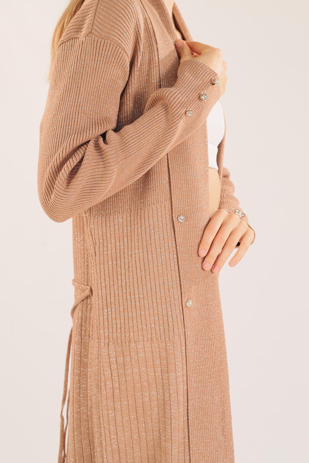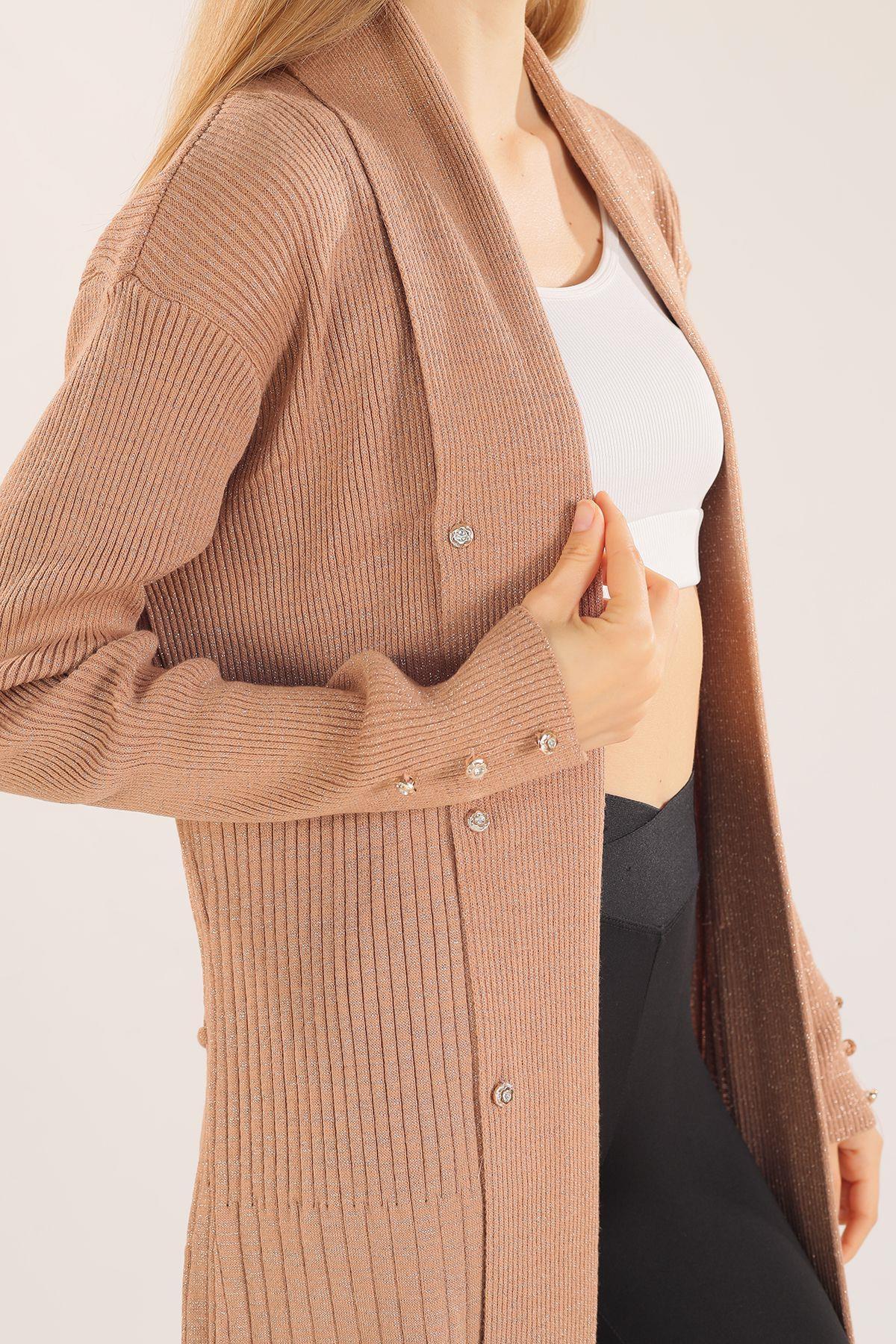 Bisküvi Zımba Detay Uzun Hırka 3435