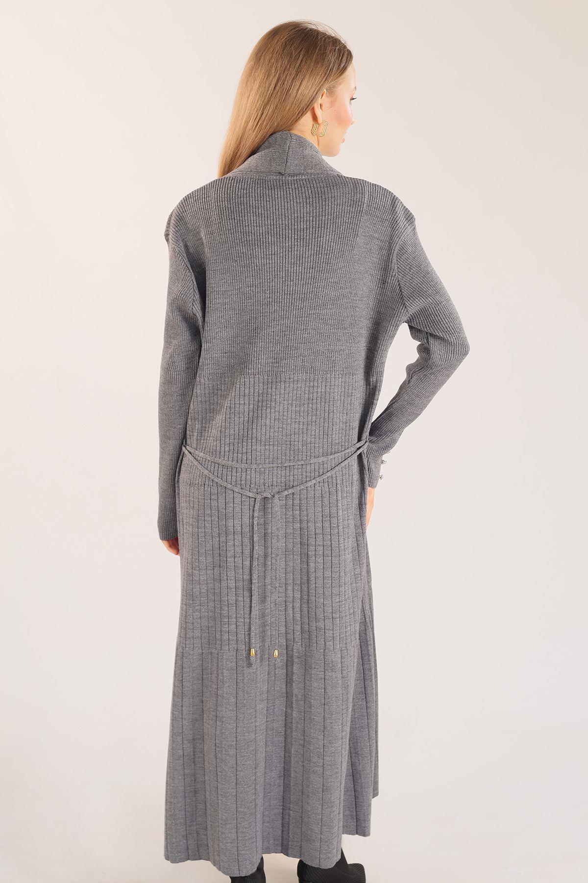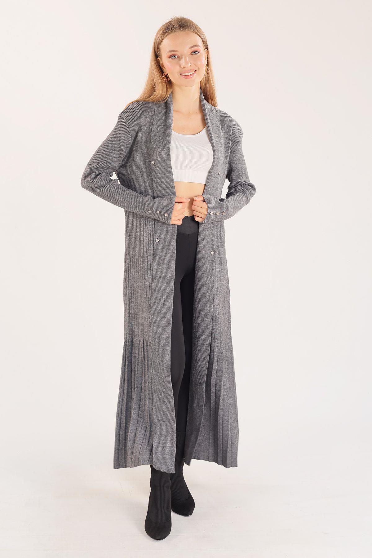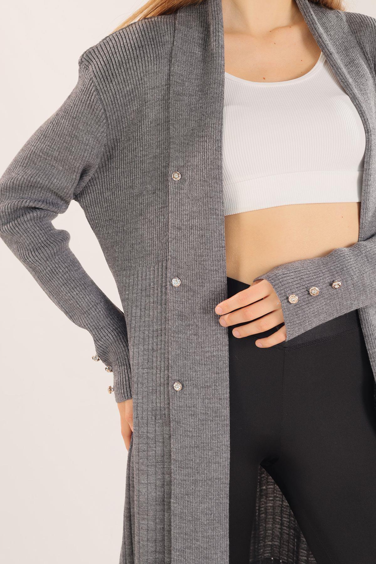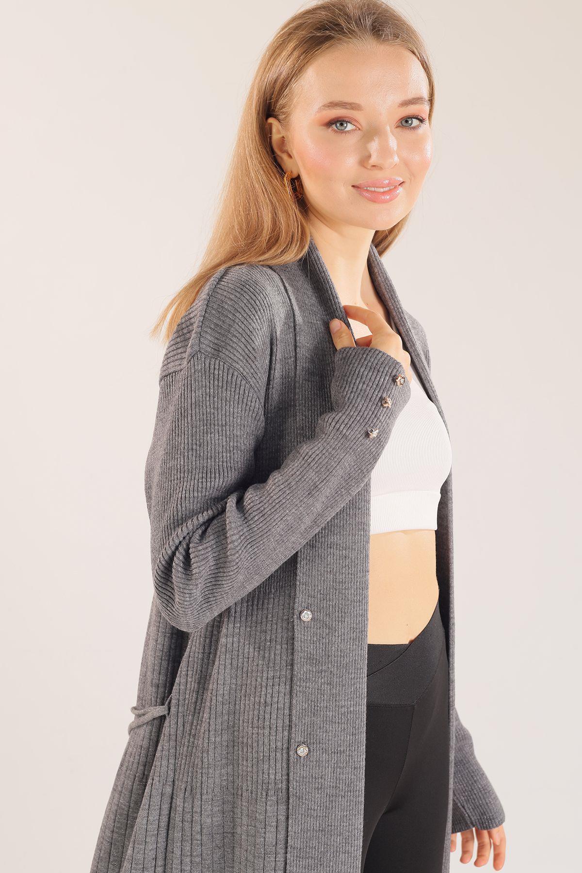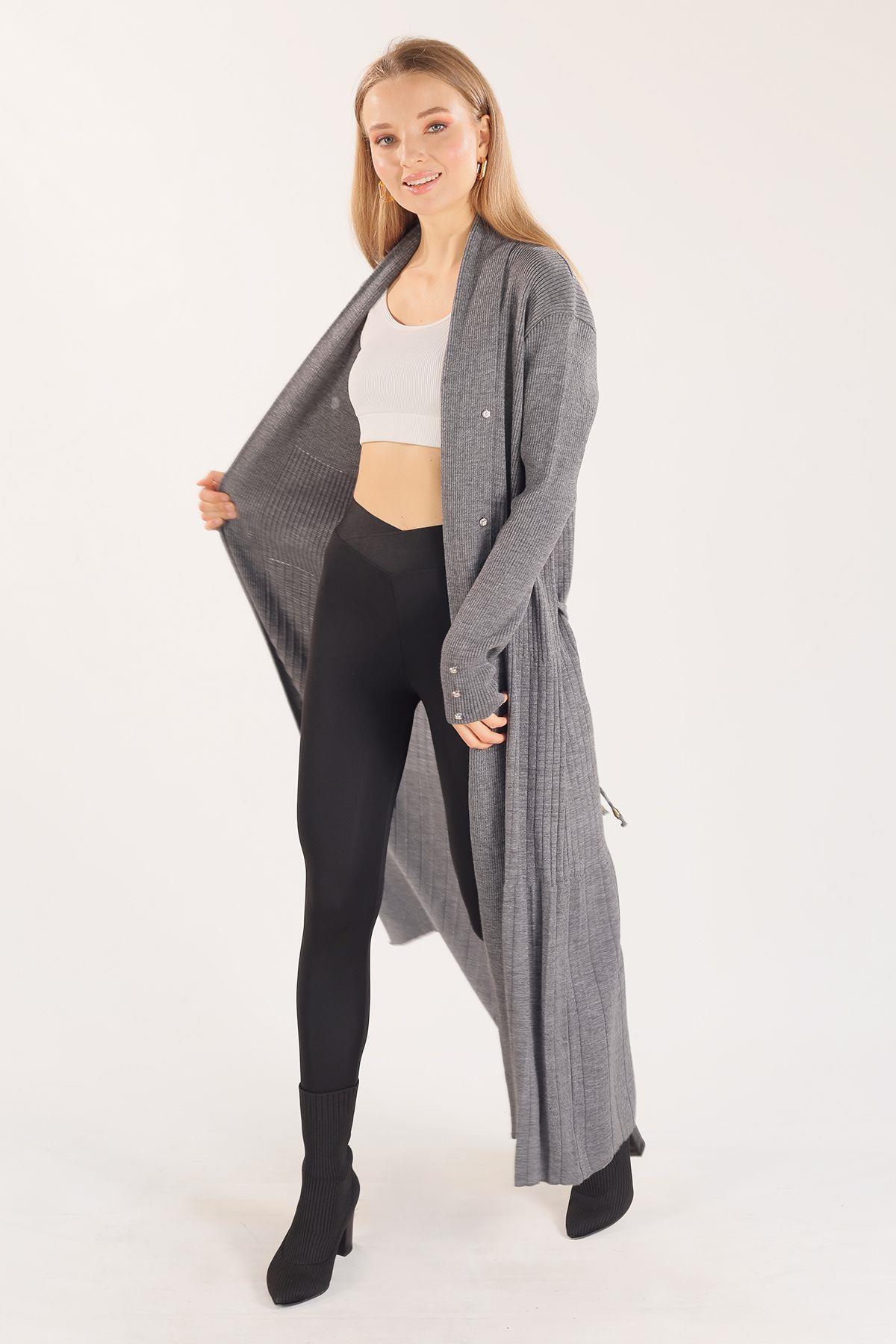 Gri Zımba Detay Uzun Hırka 3435