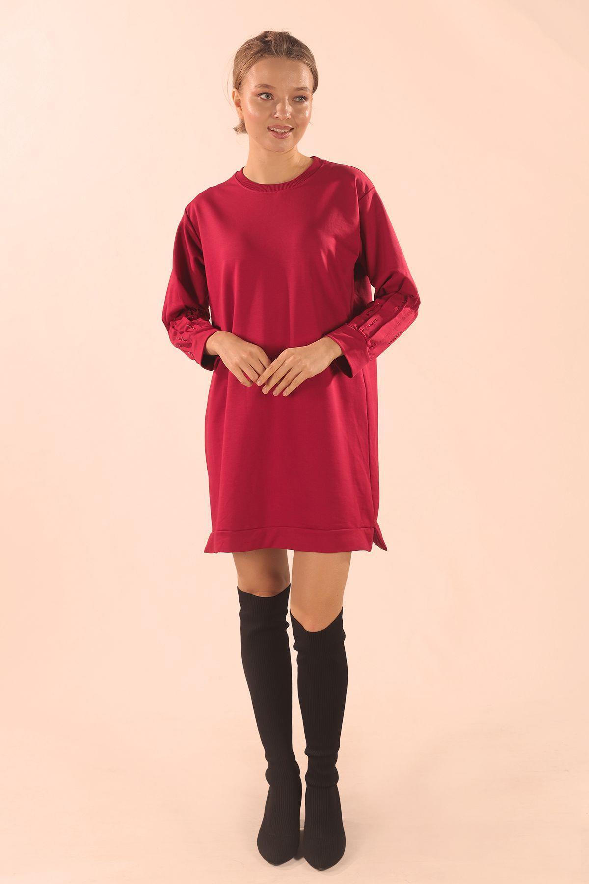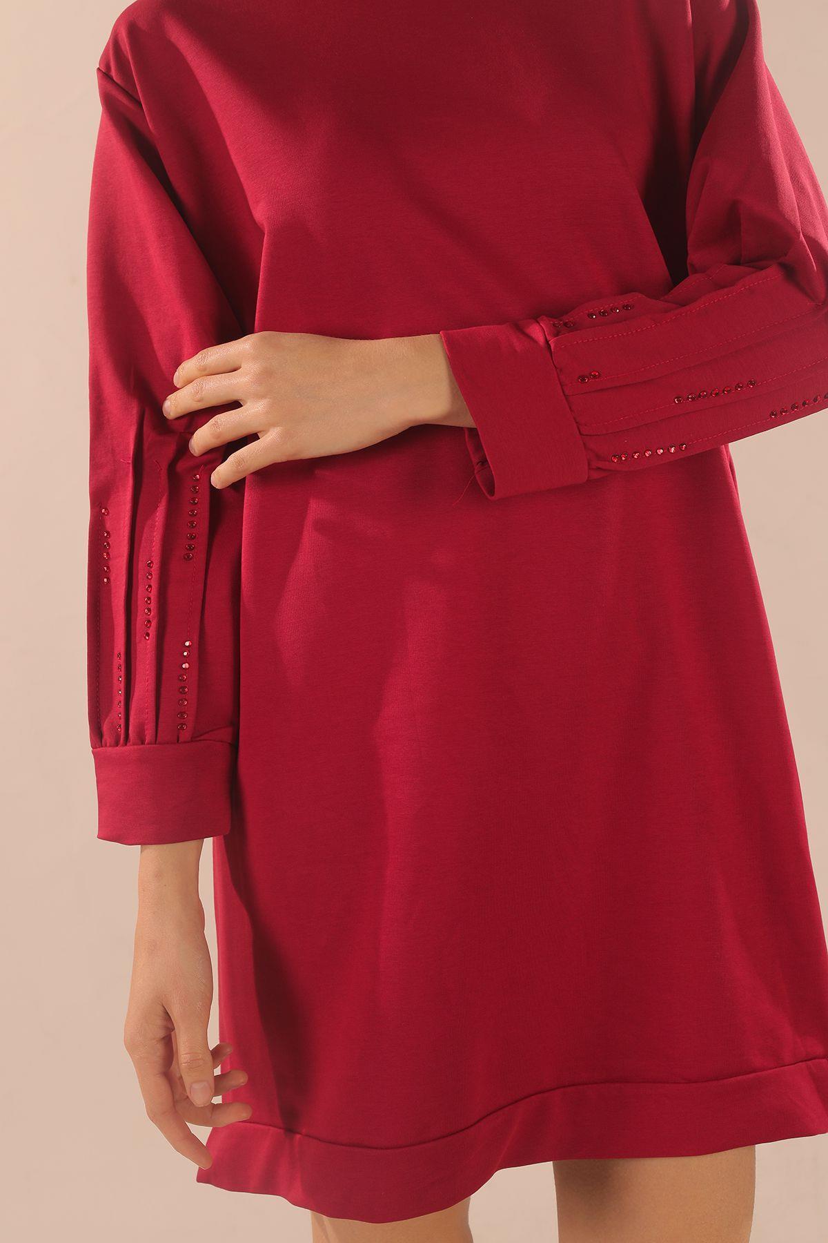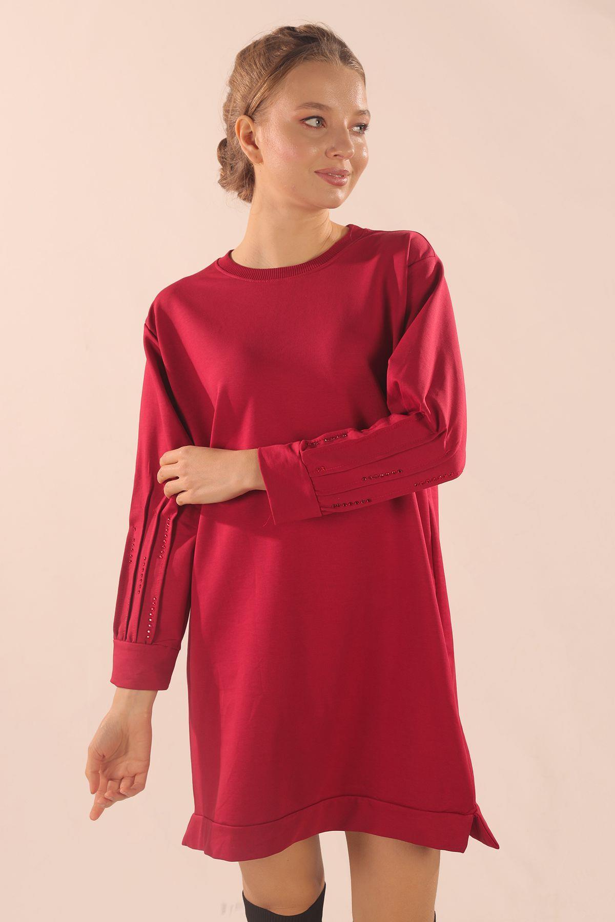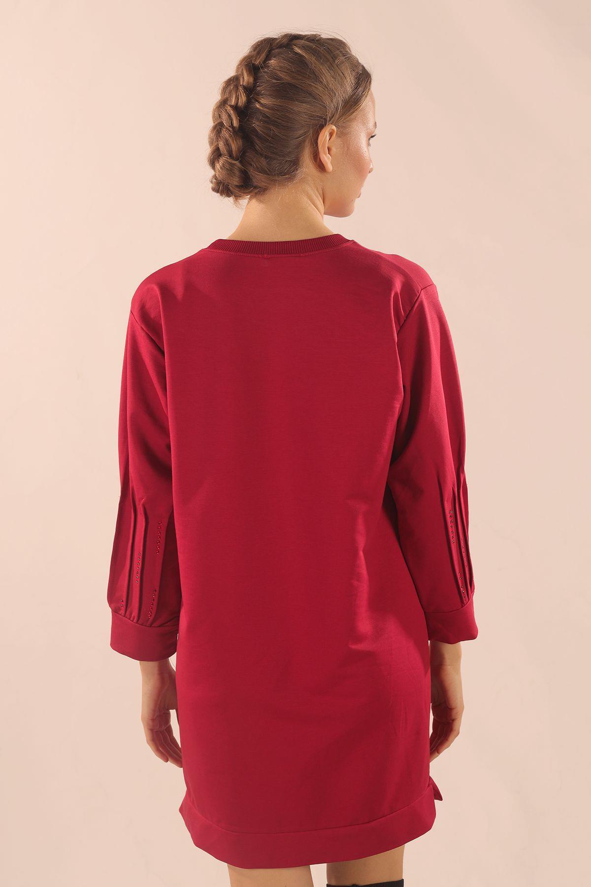 Kırmızı Kol Pile Taş Detay Sweat 3434