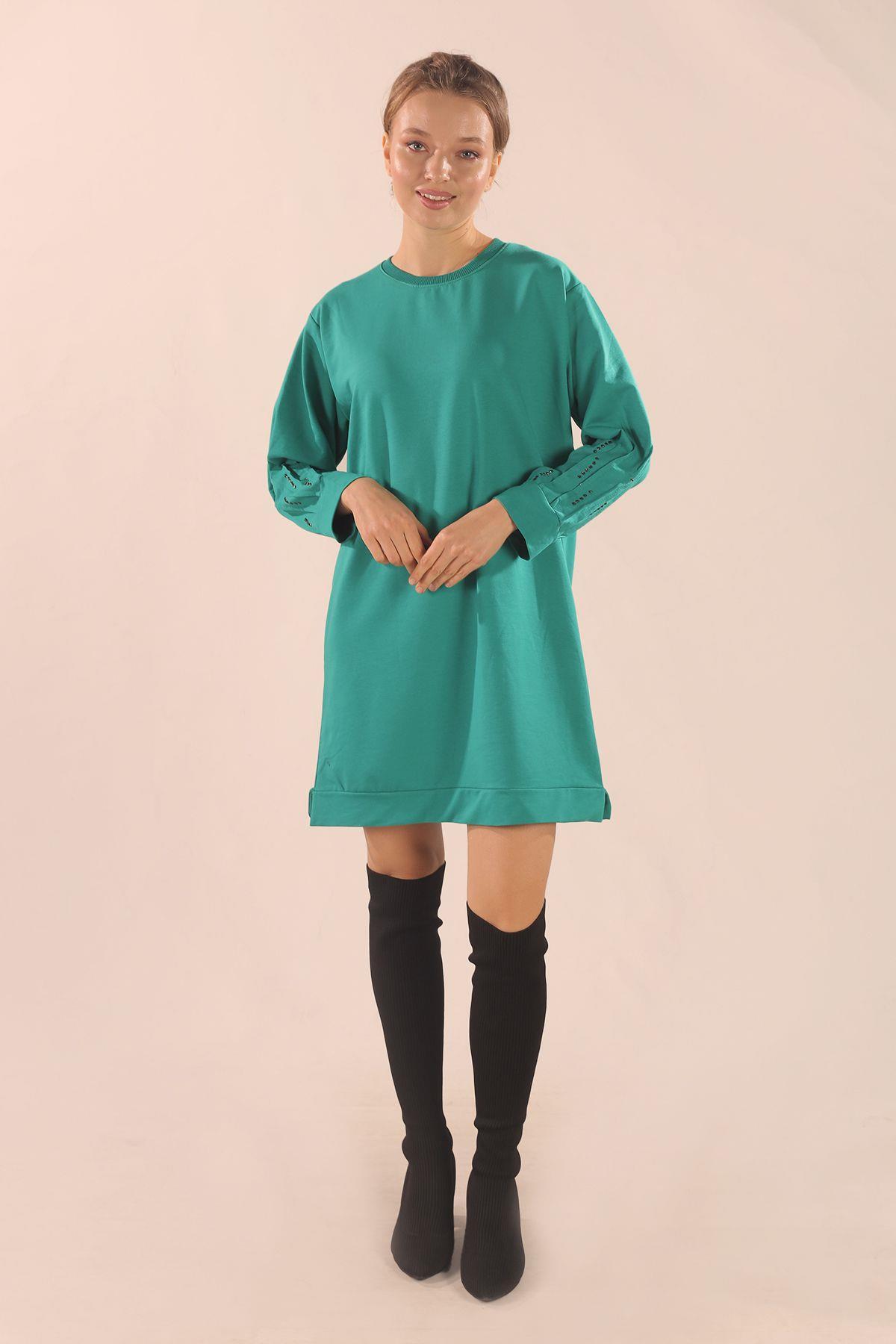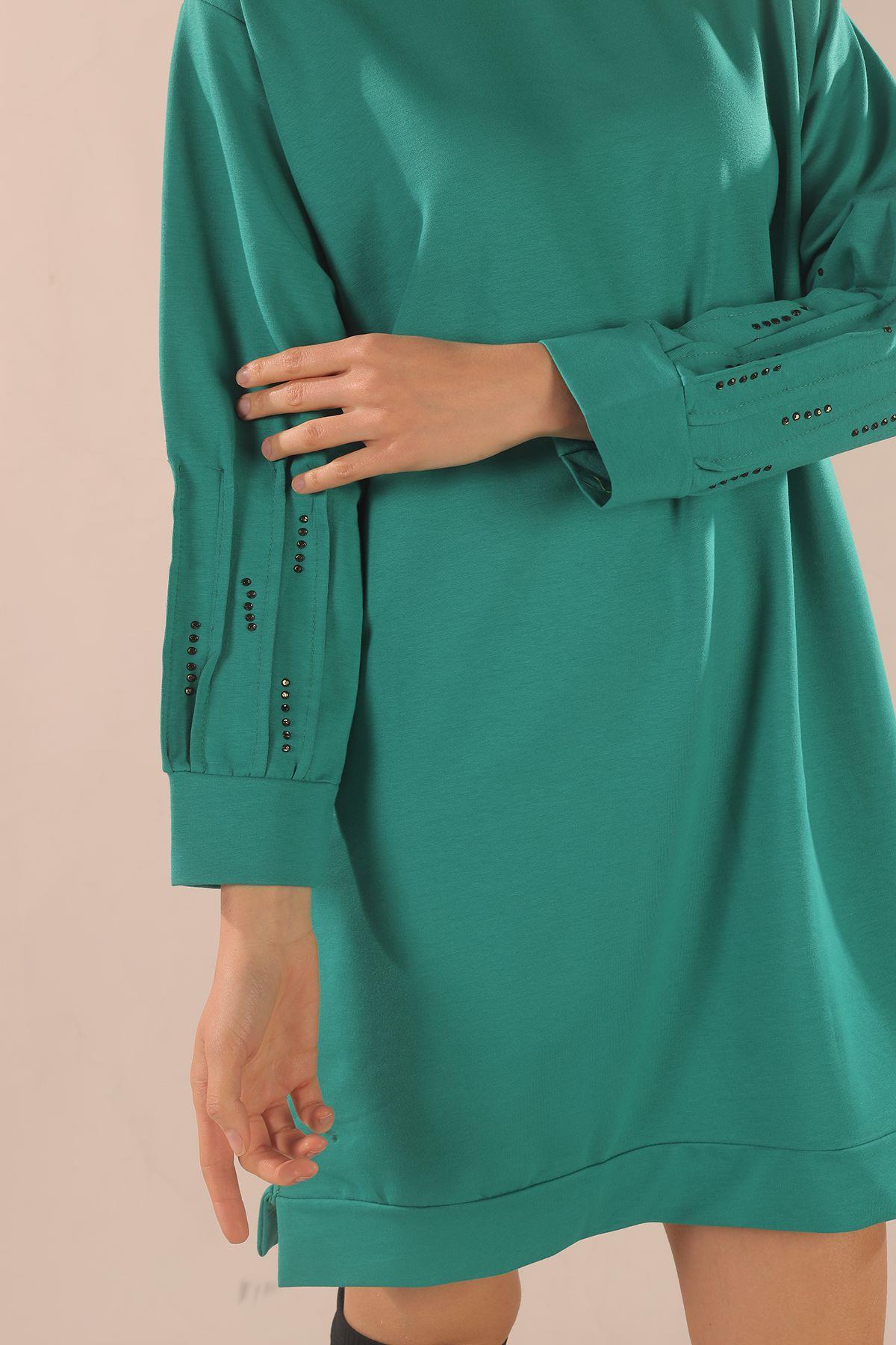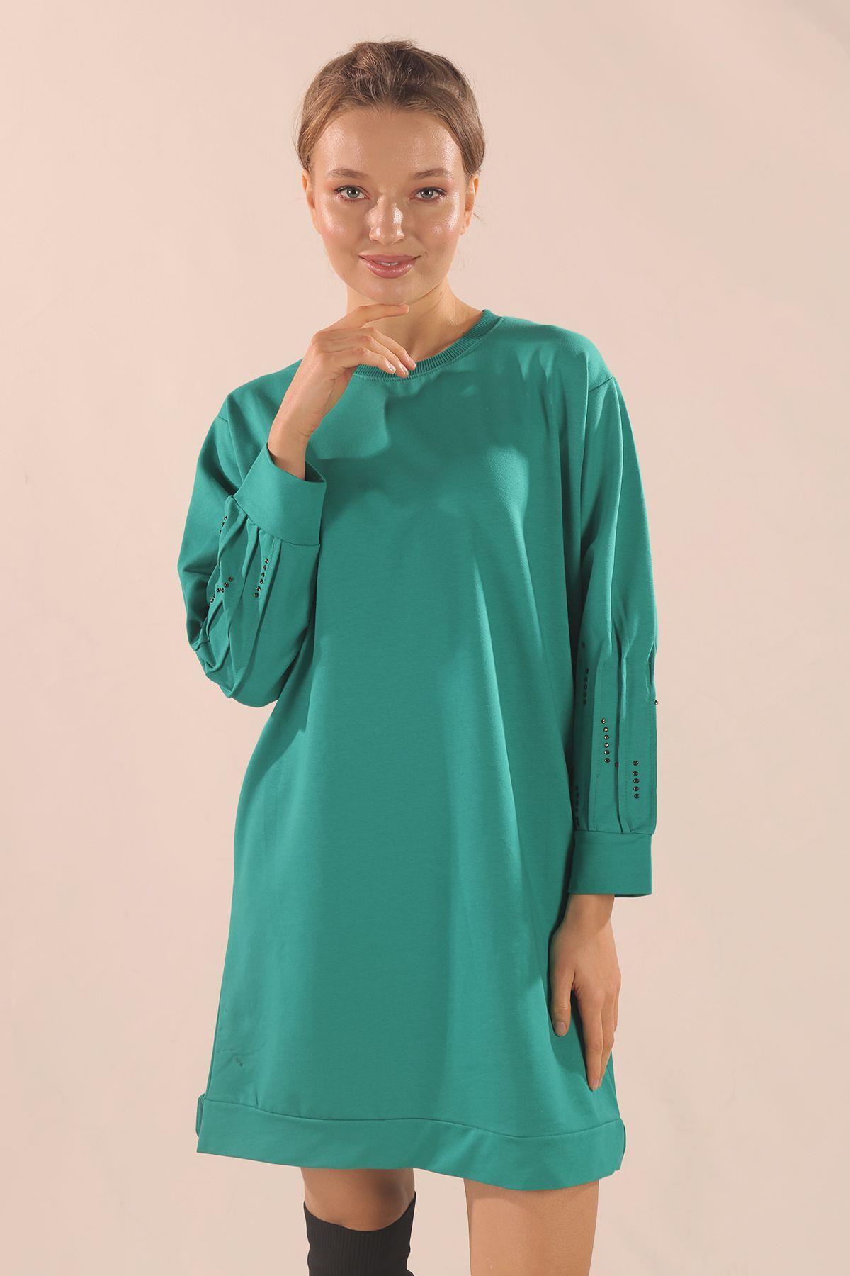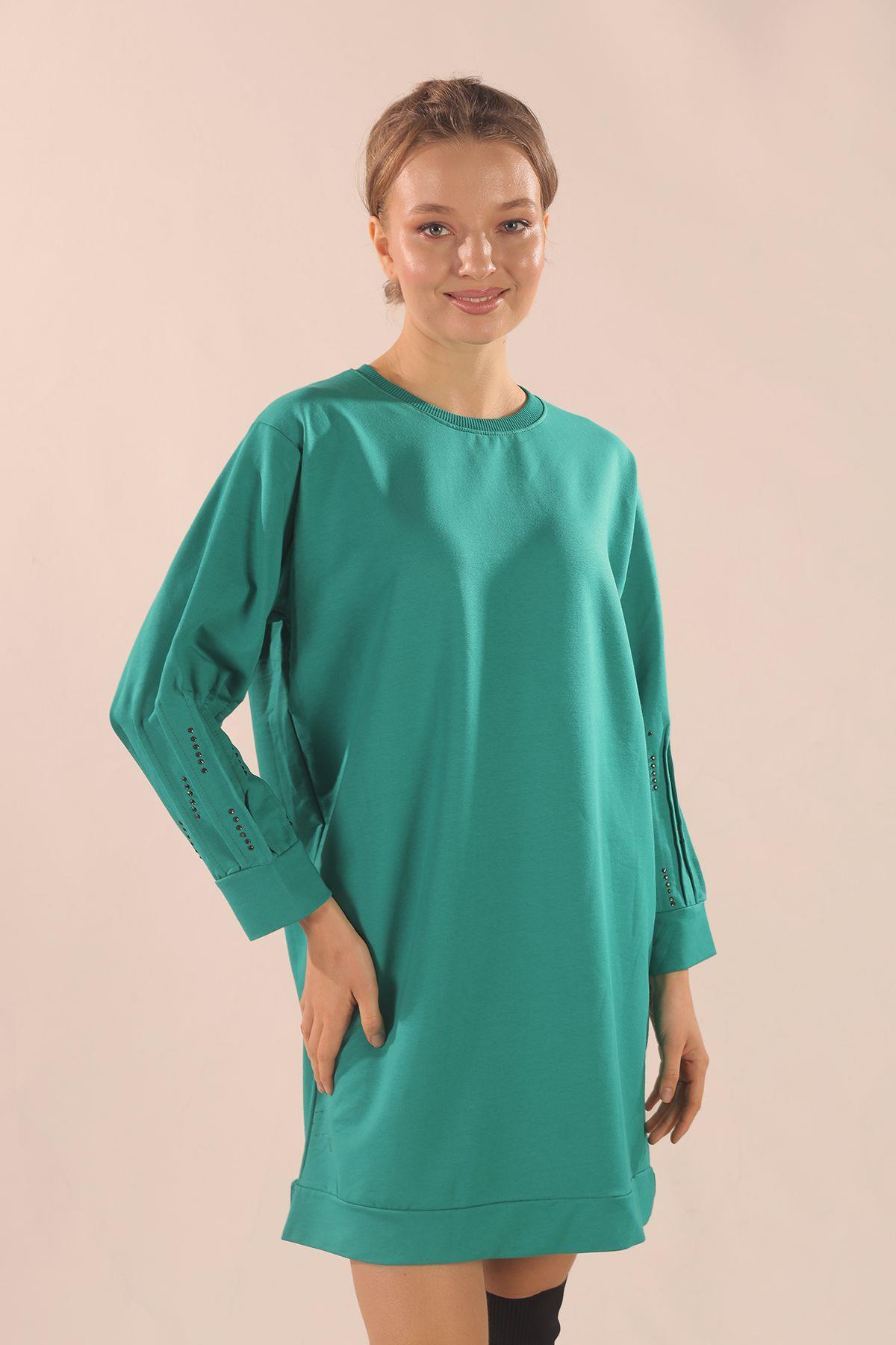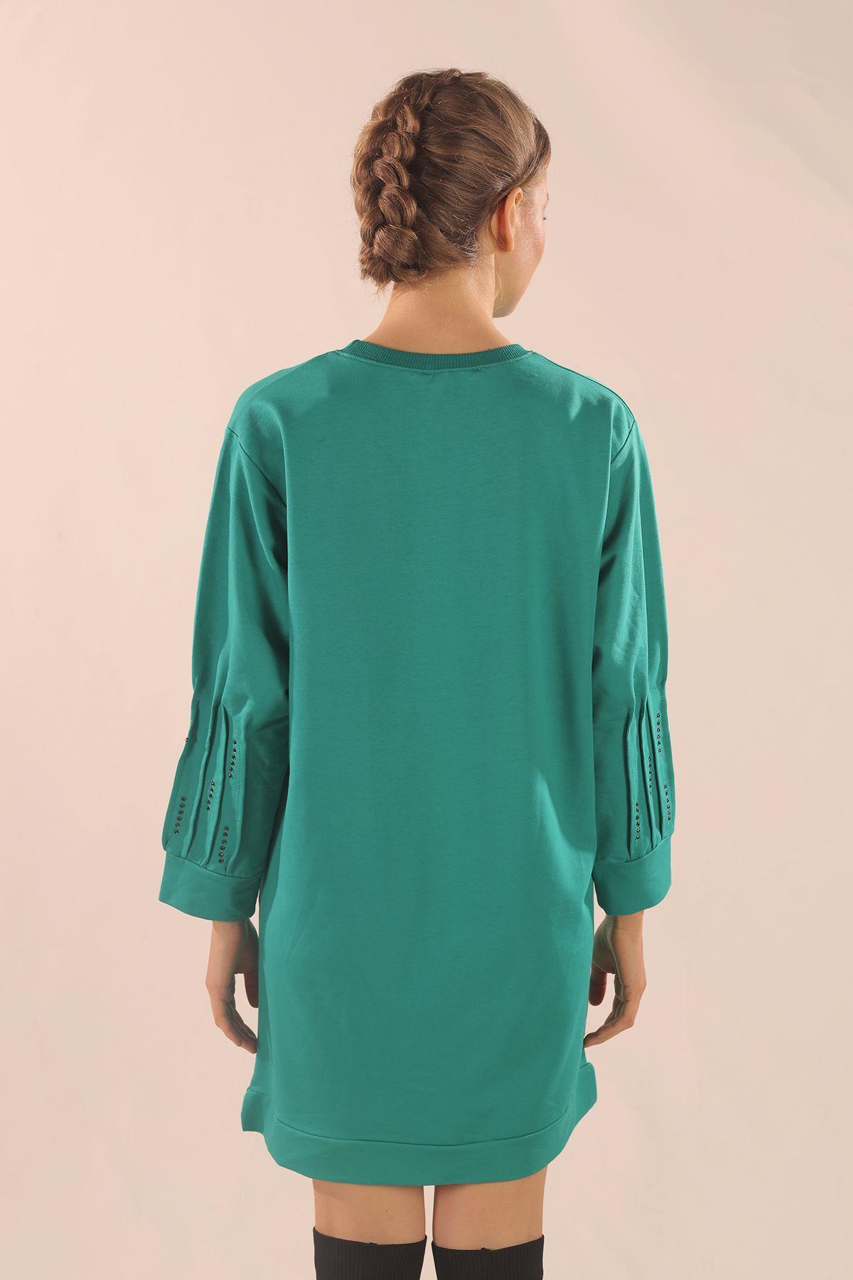 Yeşil Kol Pile Taş Detay Sweat 3434