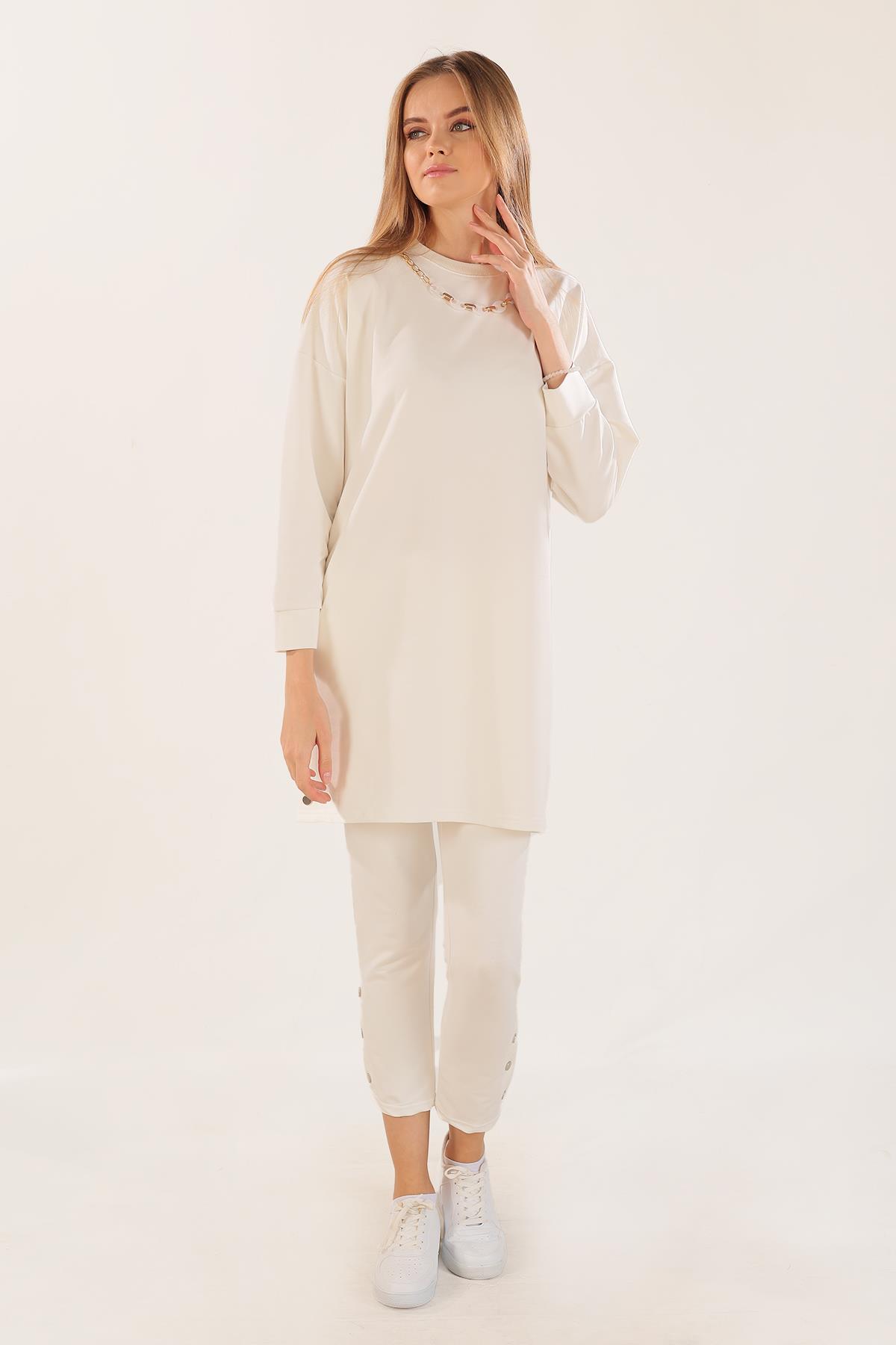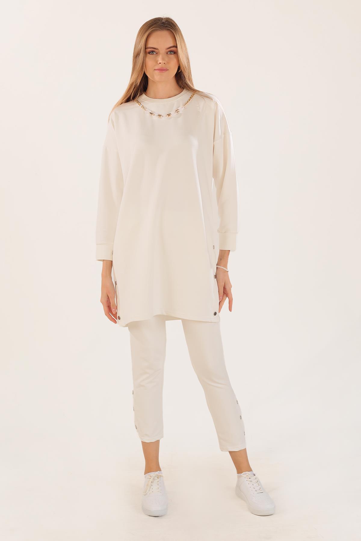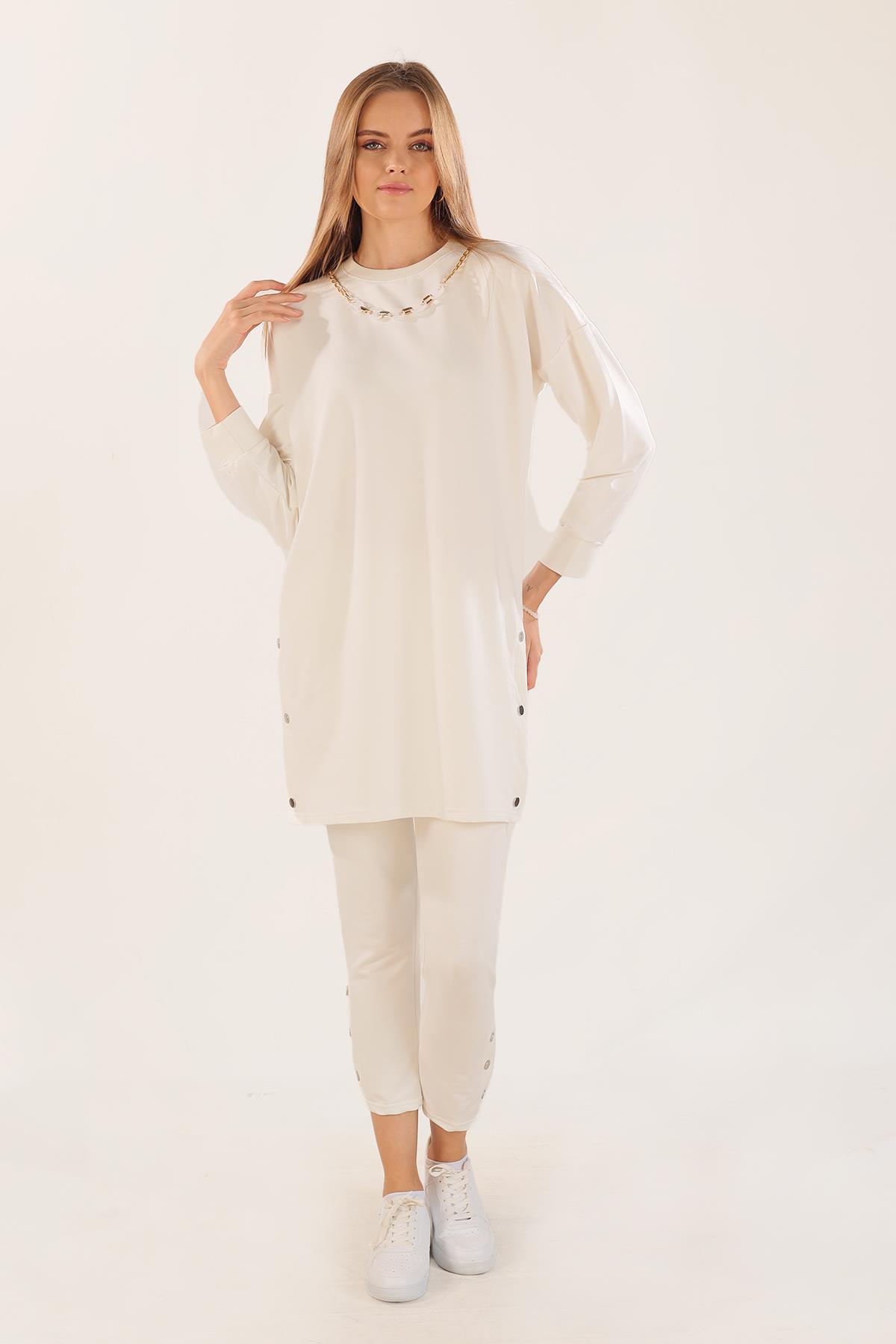 Beyaz Kolyeli Çıtçıt Detay Sweat Takım 3479