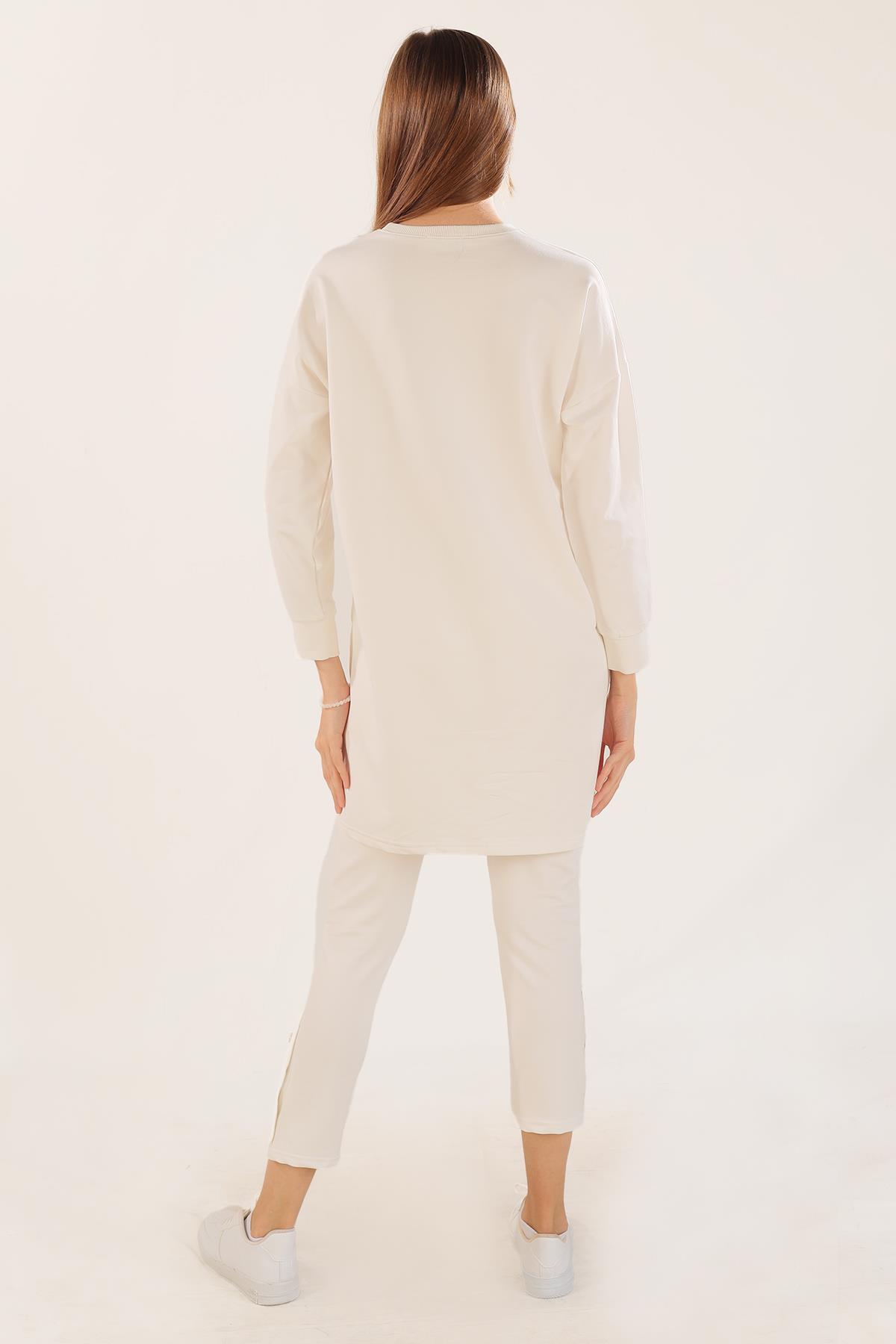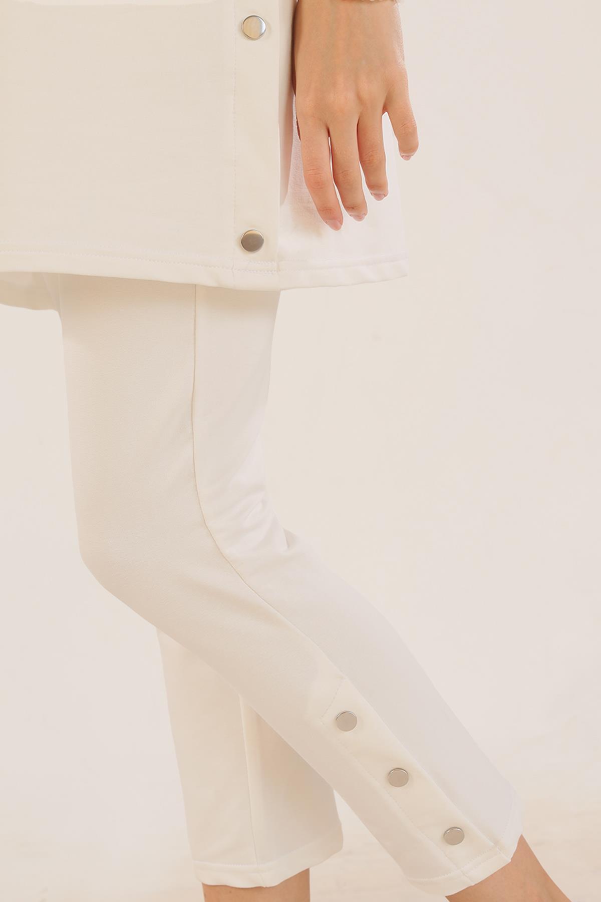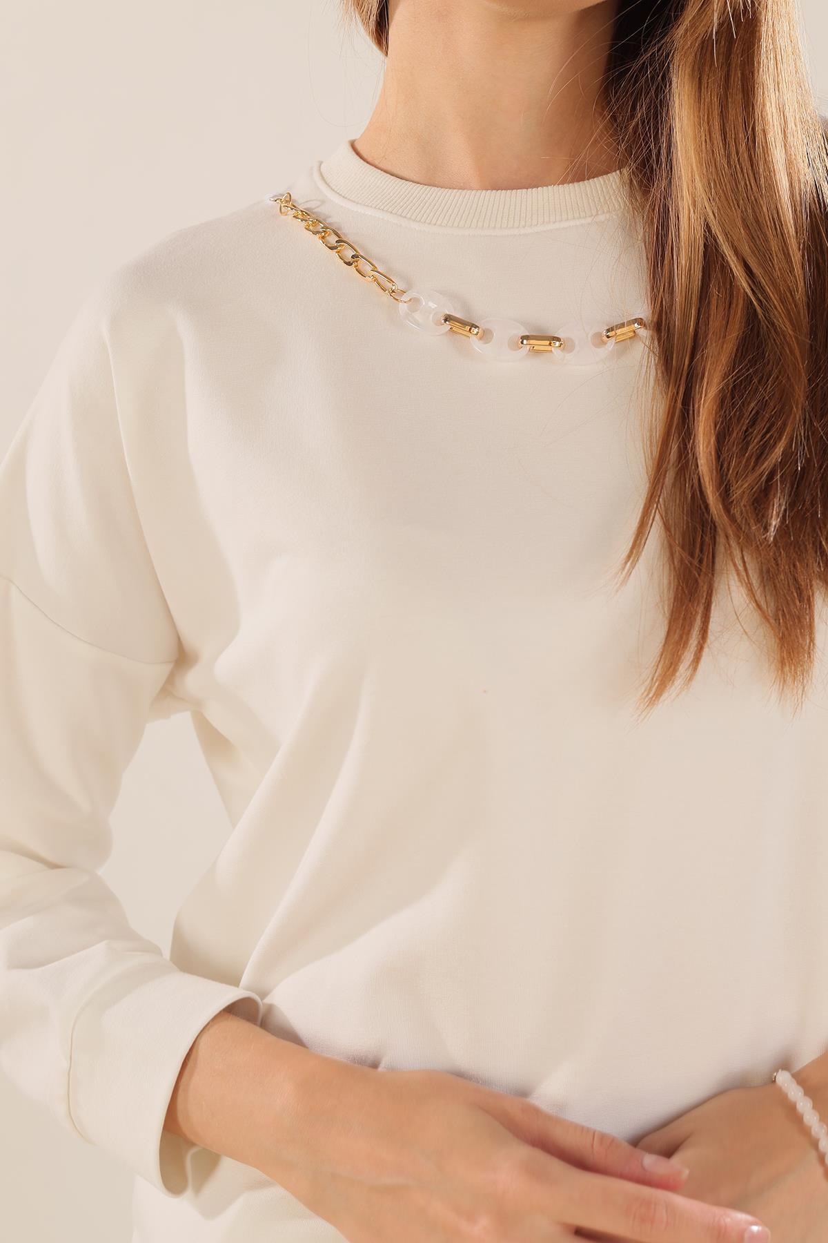 Beyaz Kolyeli Çıtçıt Detay Sweat Takım 3479