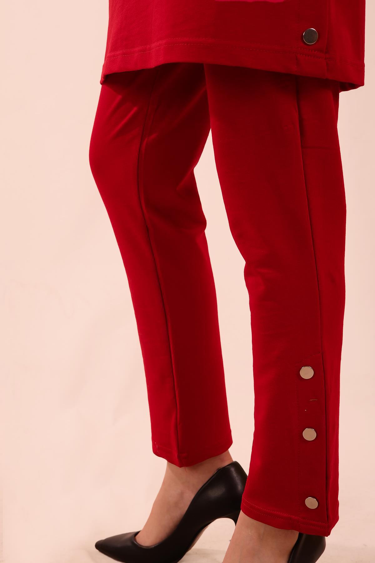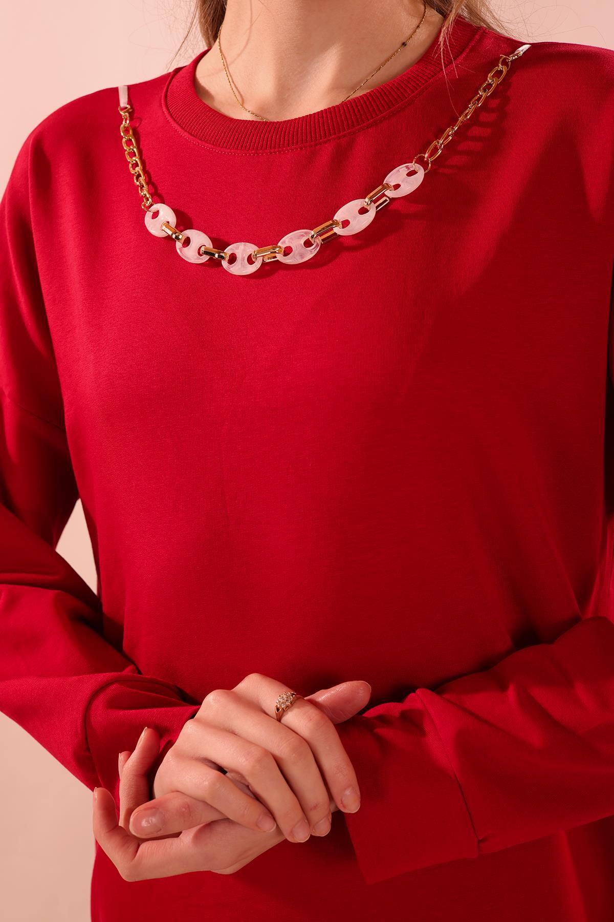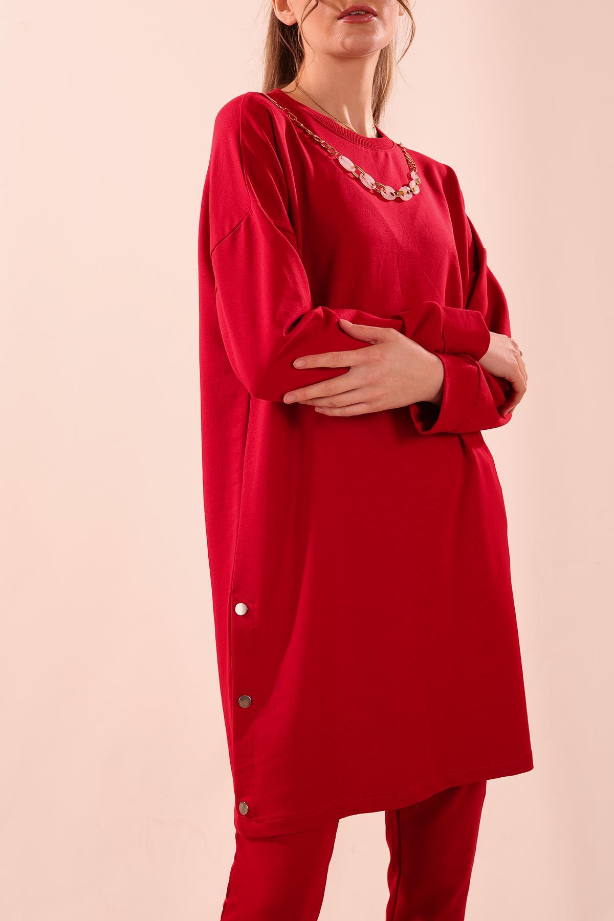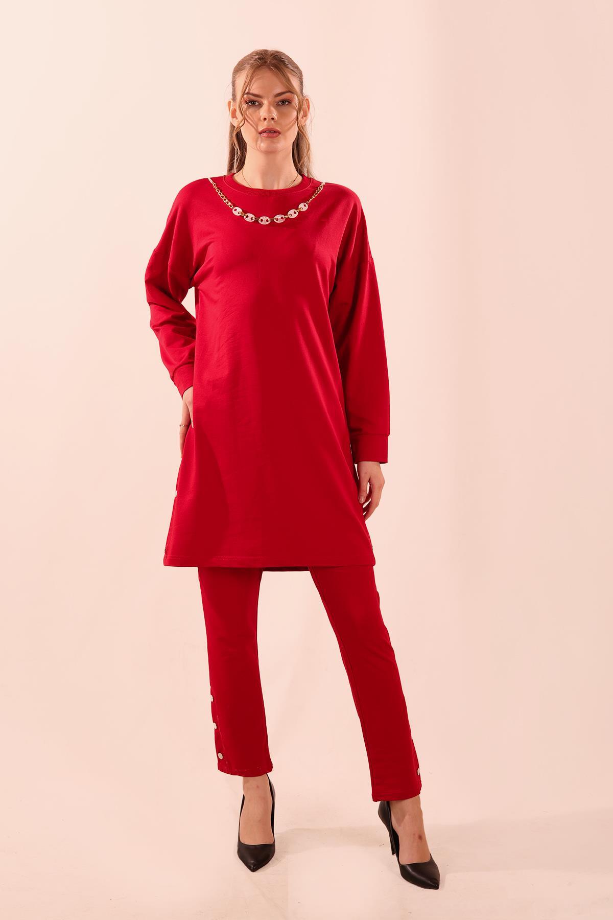 Kırmızı Kolyeli Çıtçıt Detay Sweat Takım 3479
