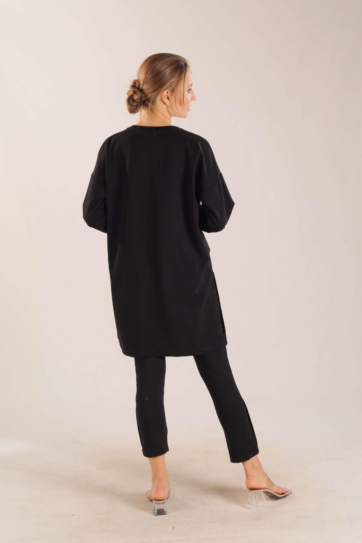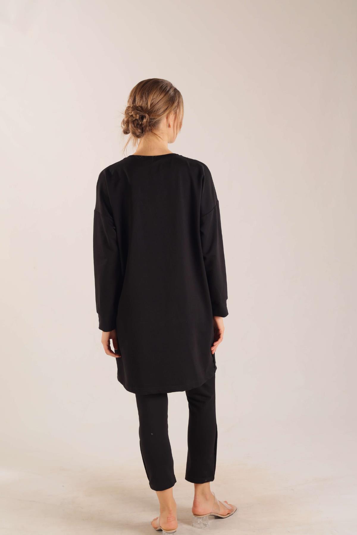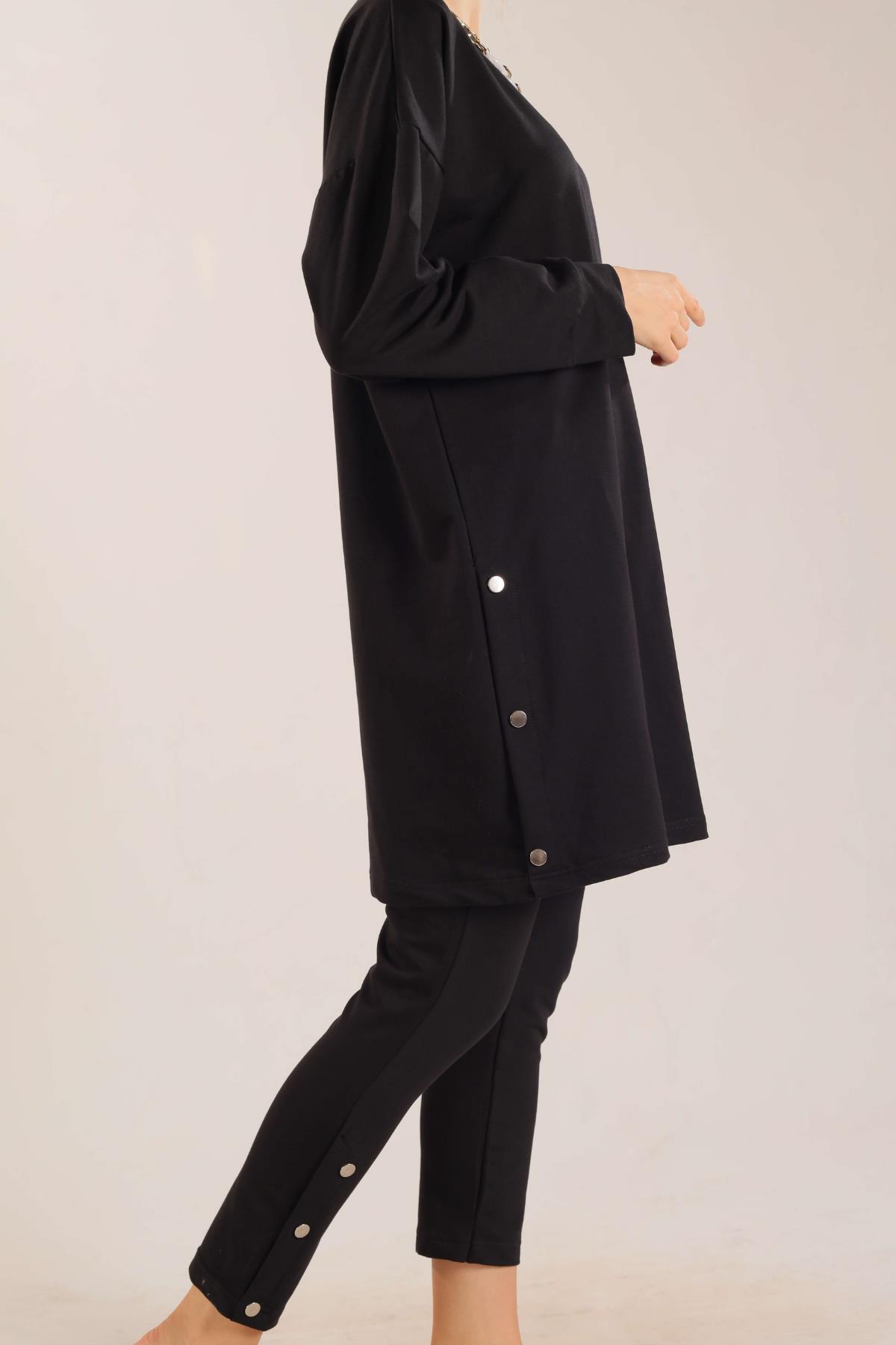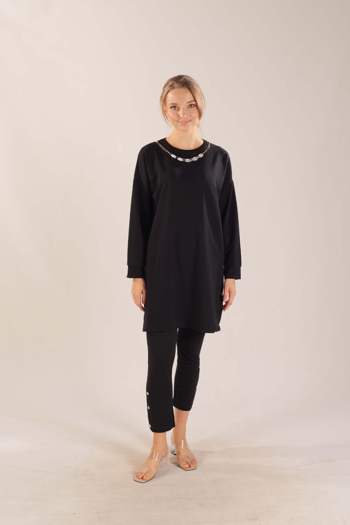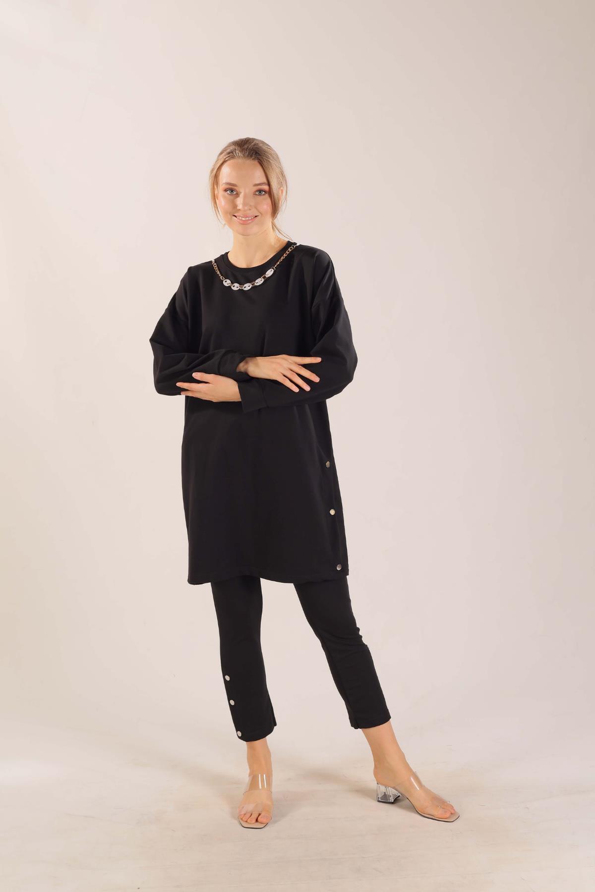 Siyah Kolyeli Çıtçıt Detay Sweat Takım 3479