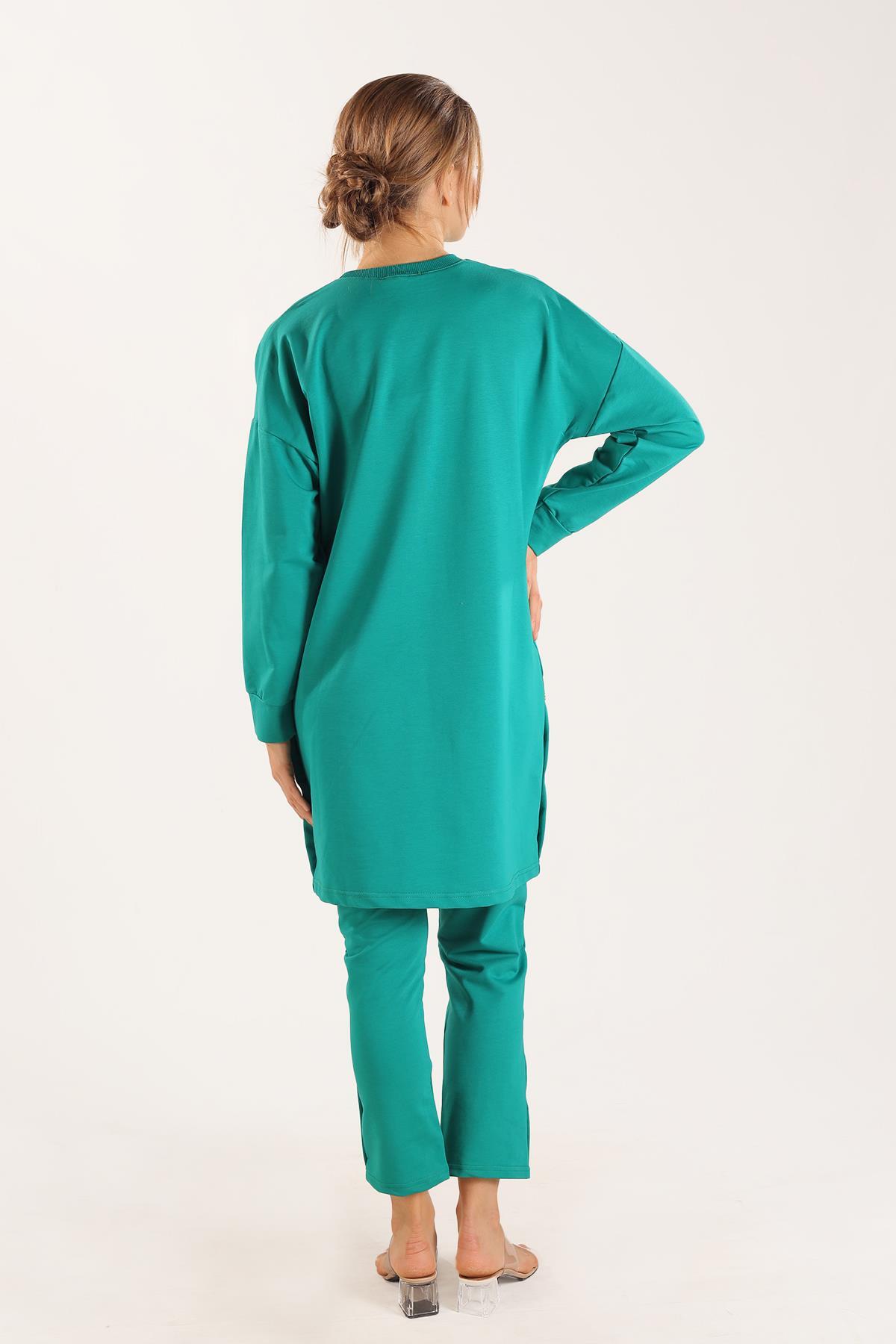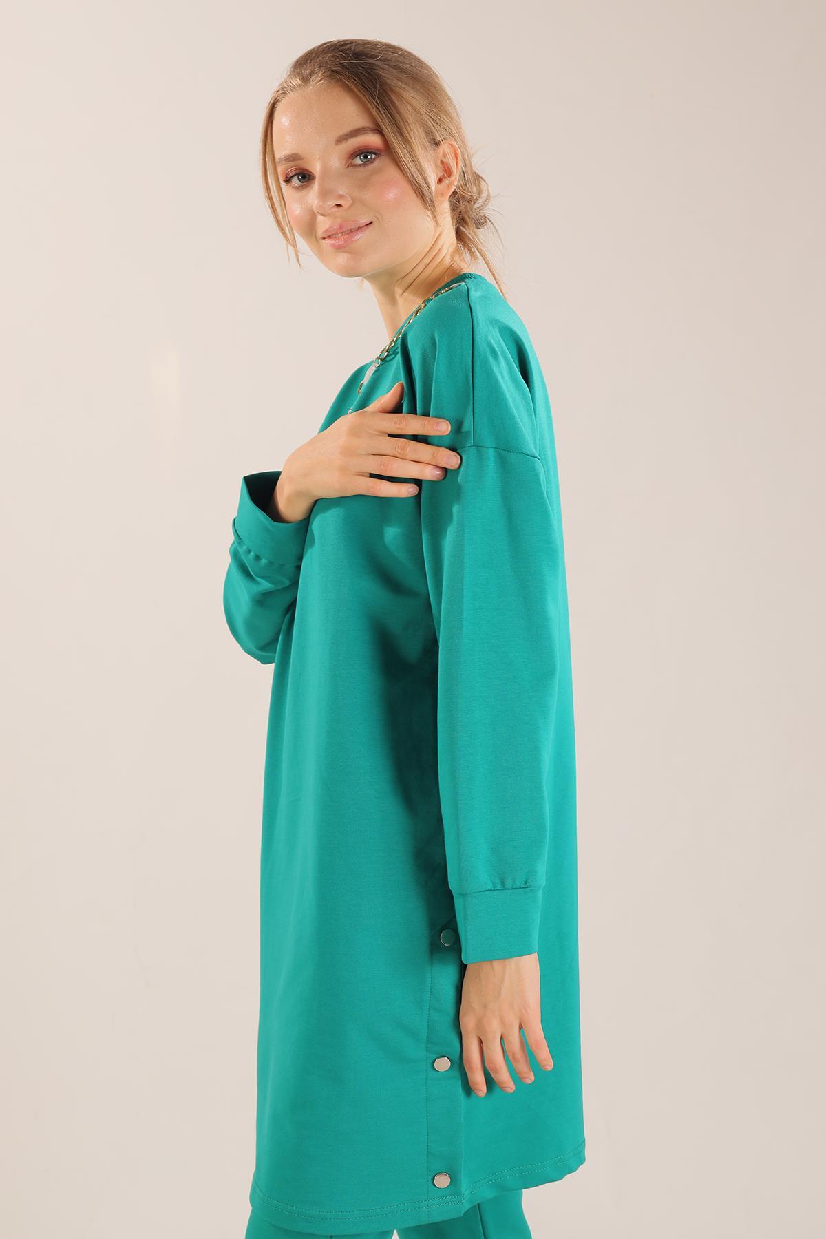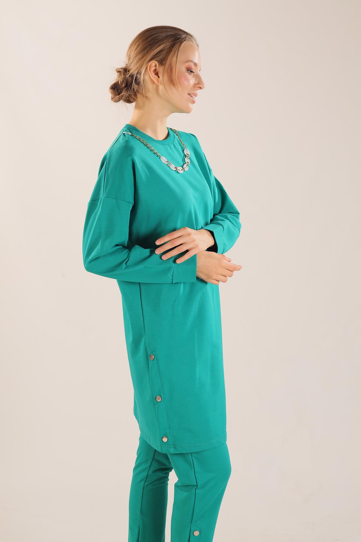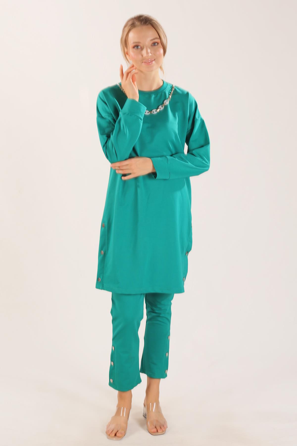 Yeşil Kolyeli Çıtçıt Detay Sweat Takım 3479