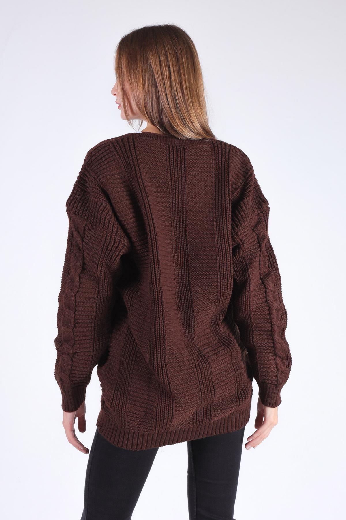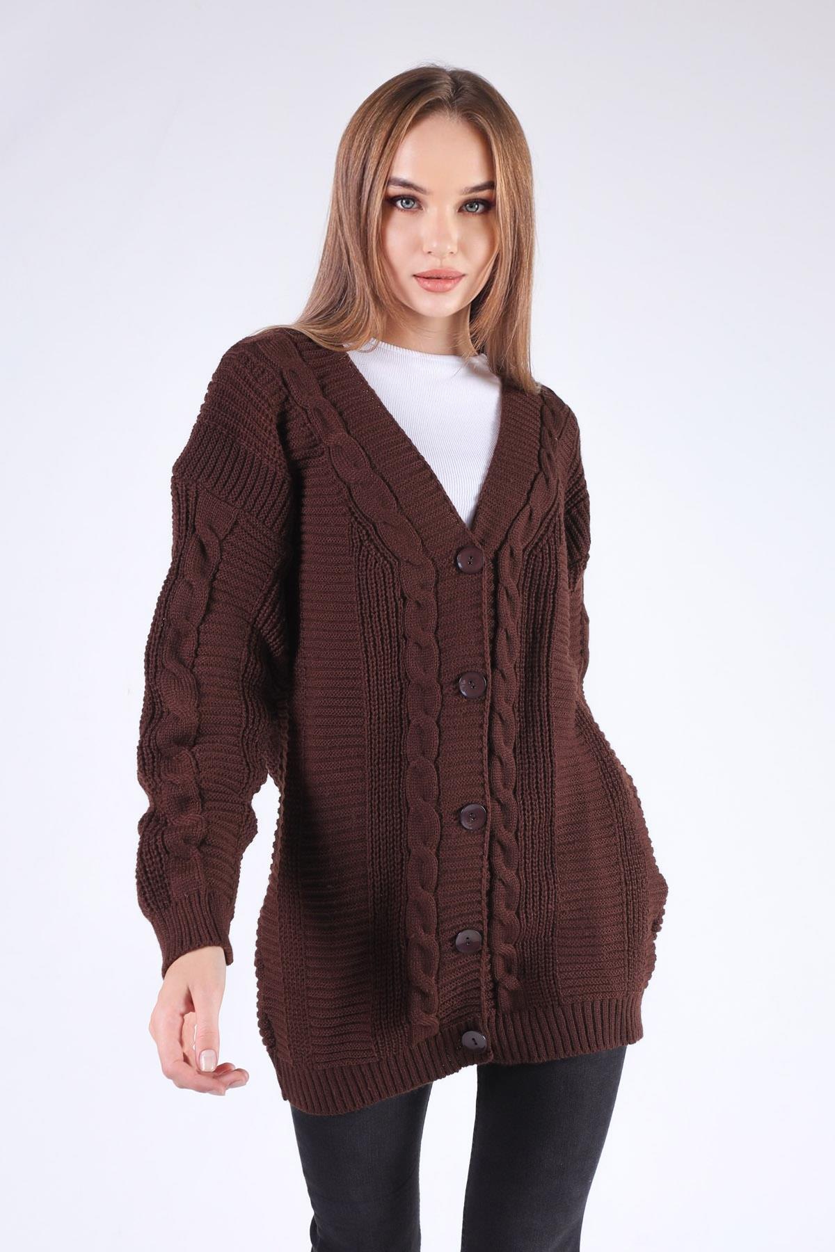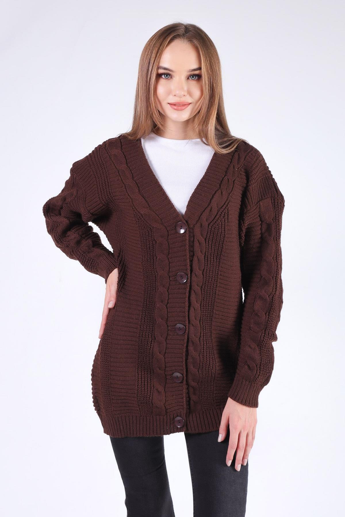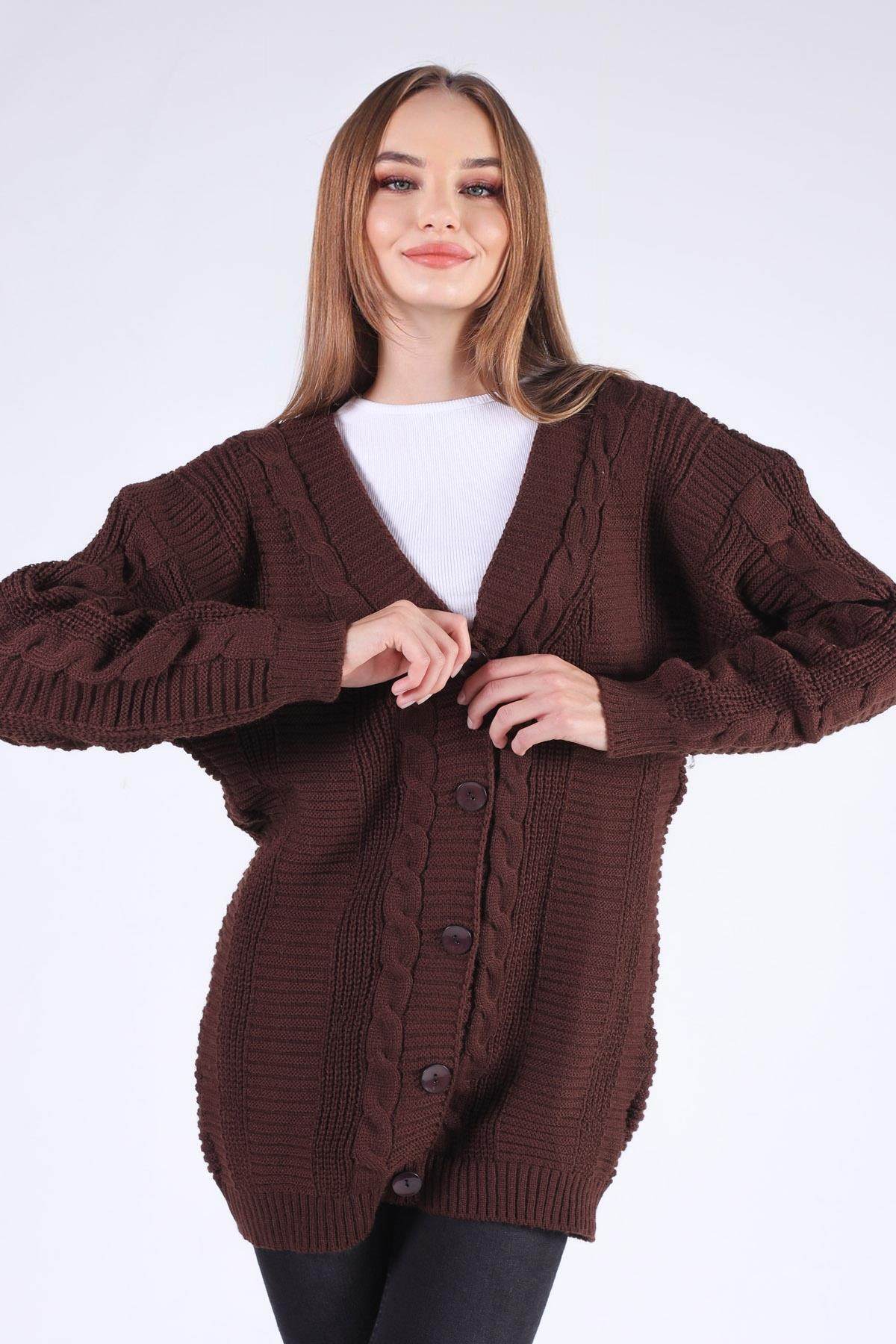 Acı Kahve Düğme Detay Örgülü Hırka 350