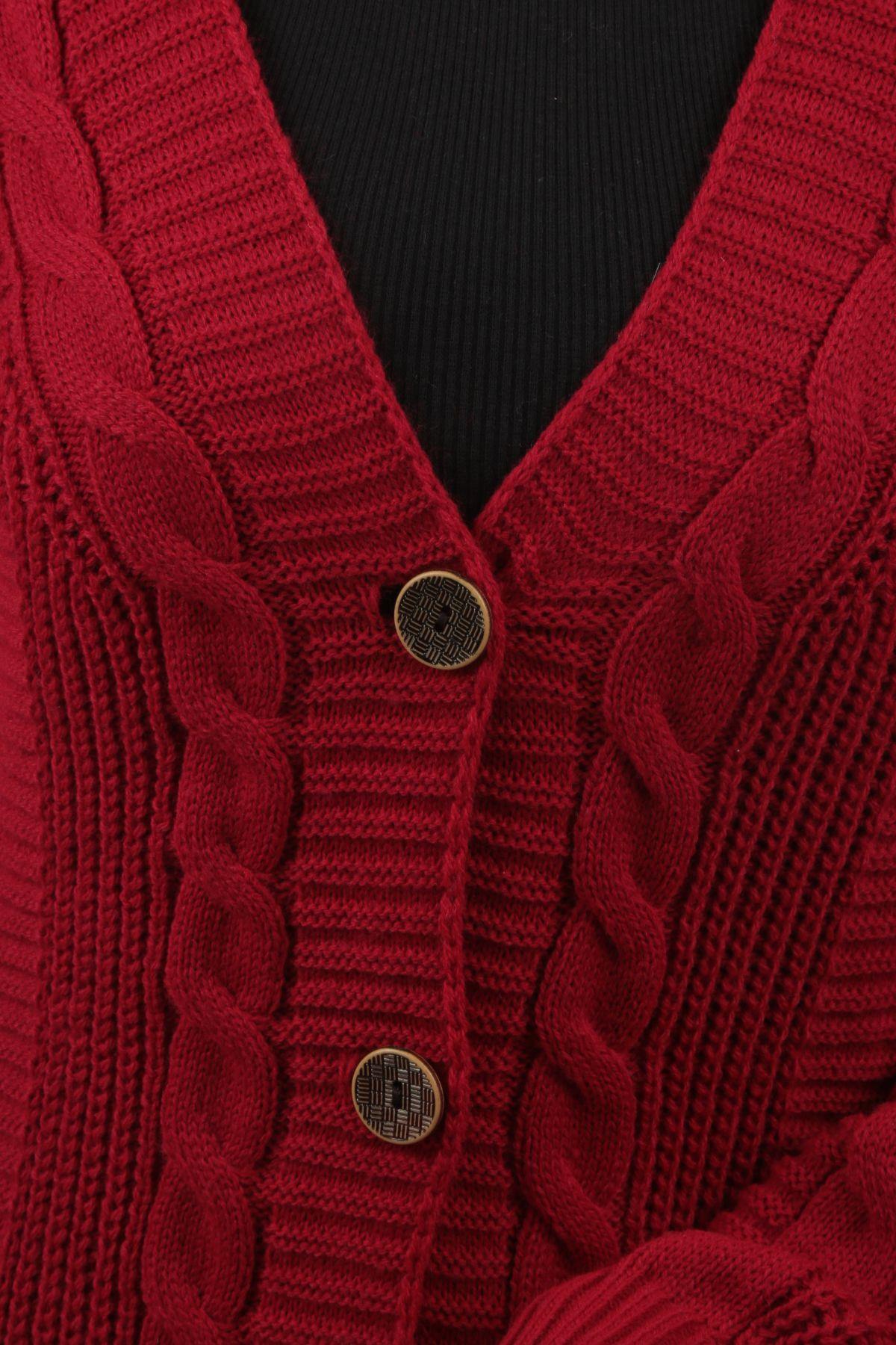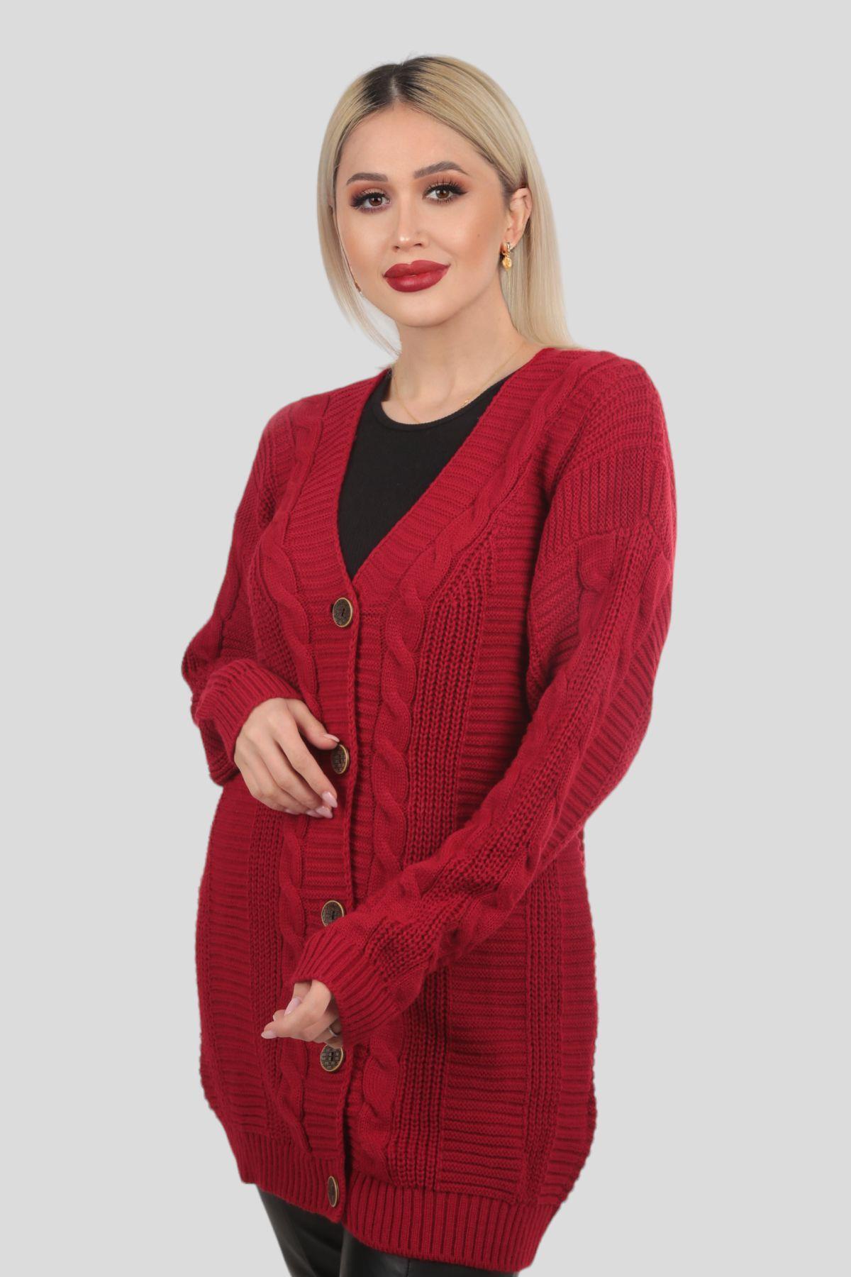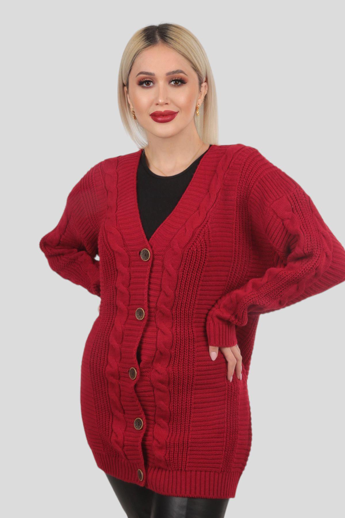 Kırmızı Düğme Detay Örgülü Hırka 350