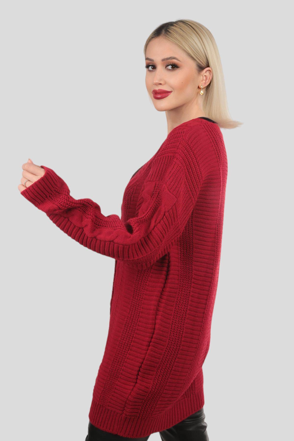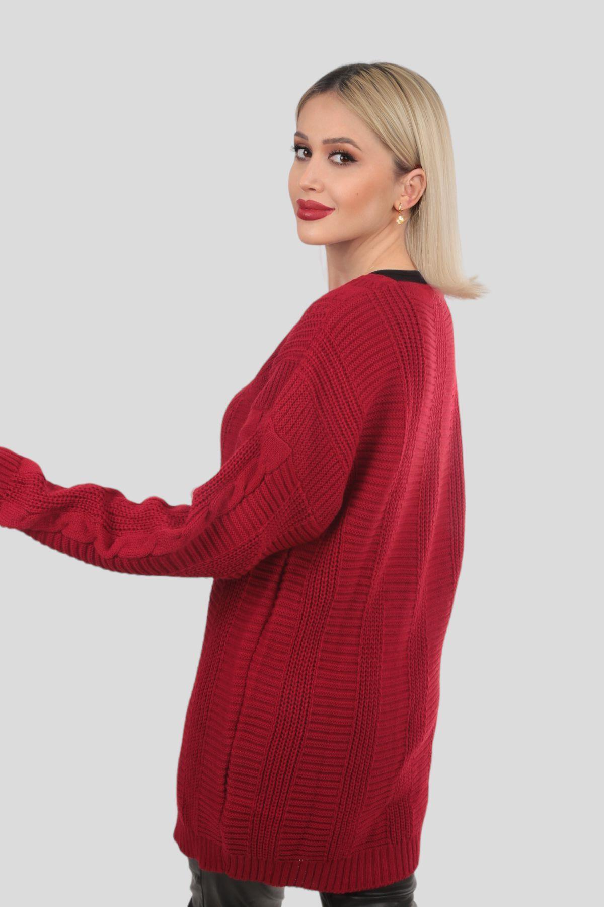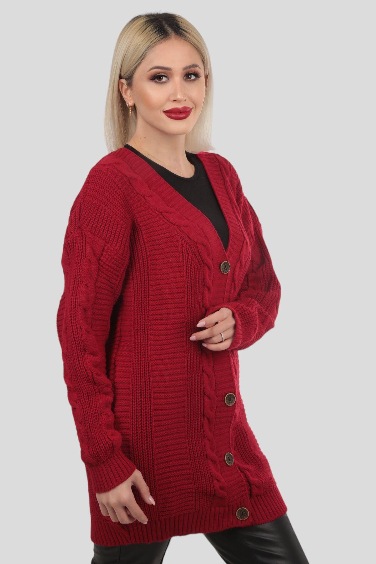Kırmızı Düğme Detay Örgülü Hırka 350