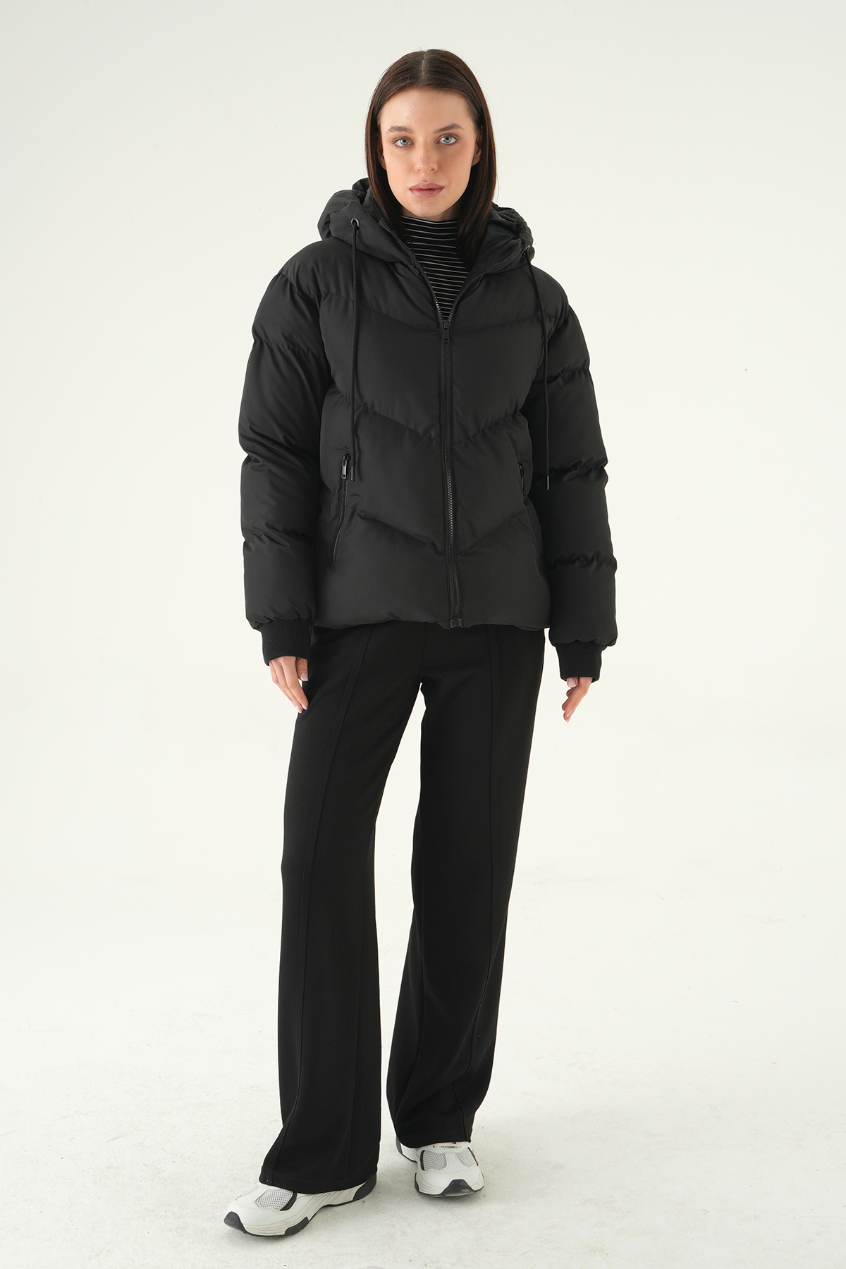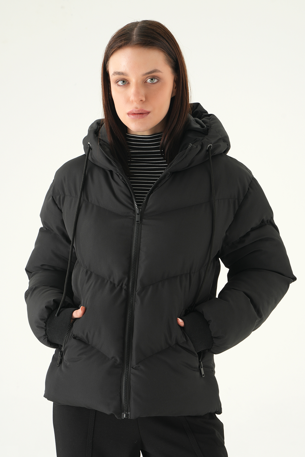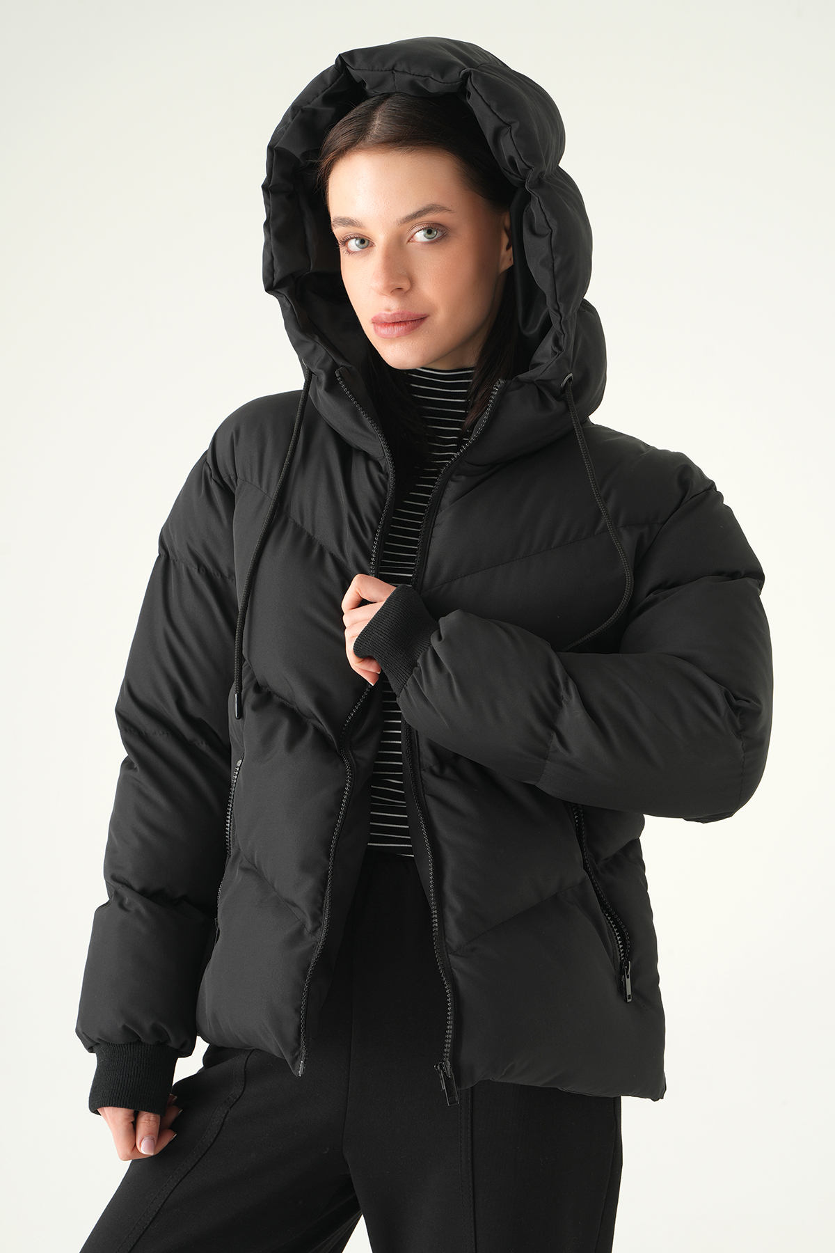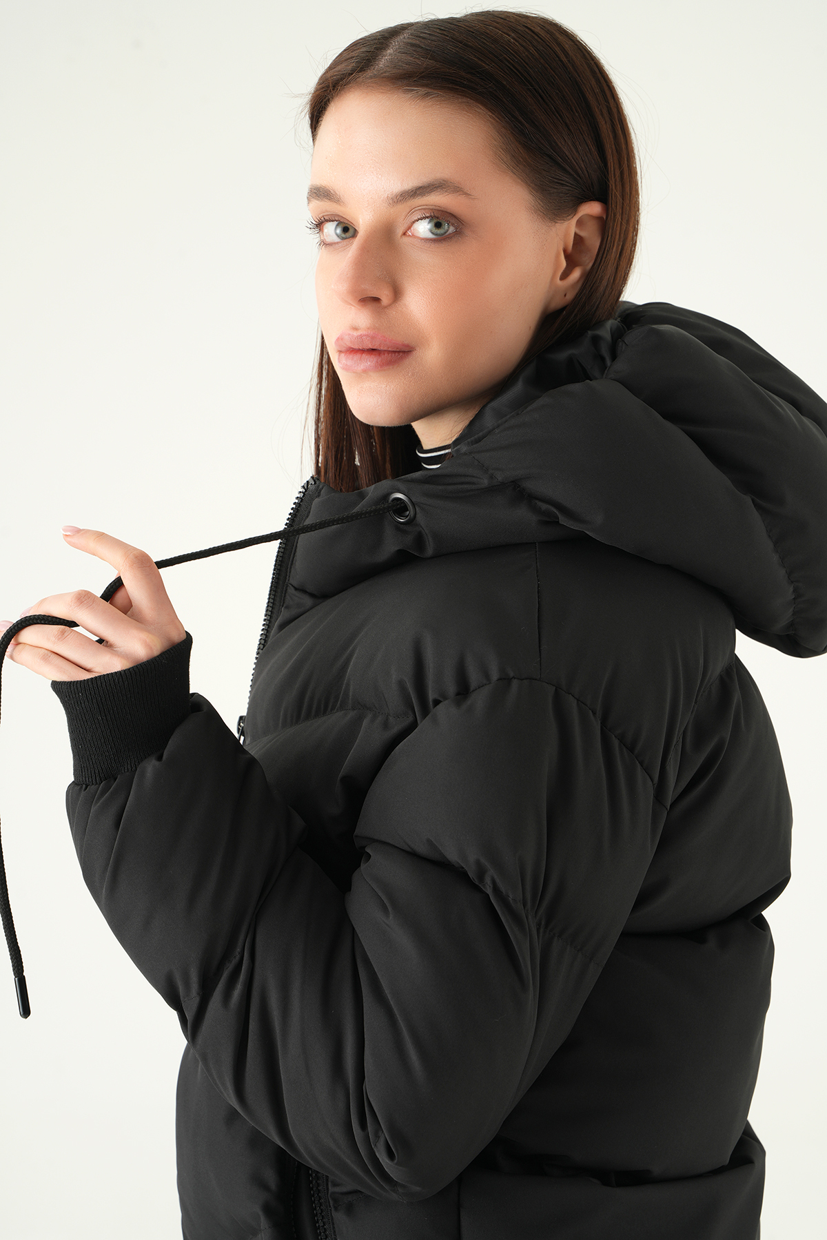 Siyah Kapüşonlu Cepli Mont 3505