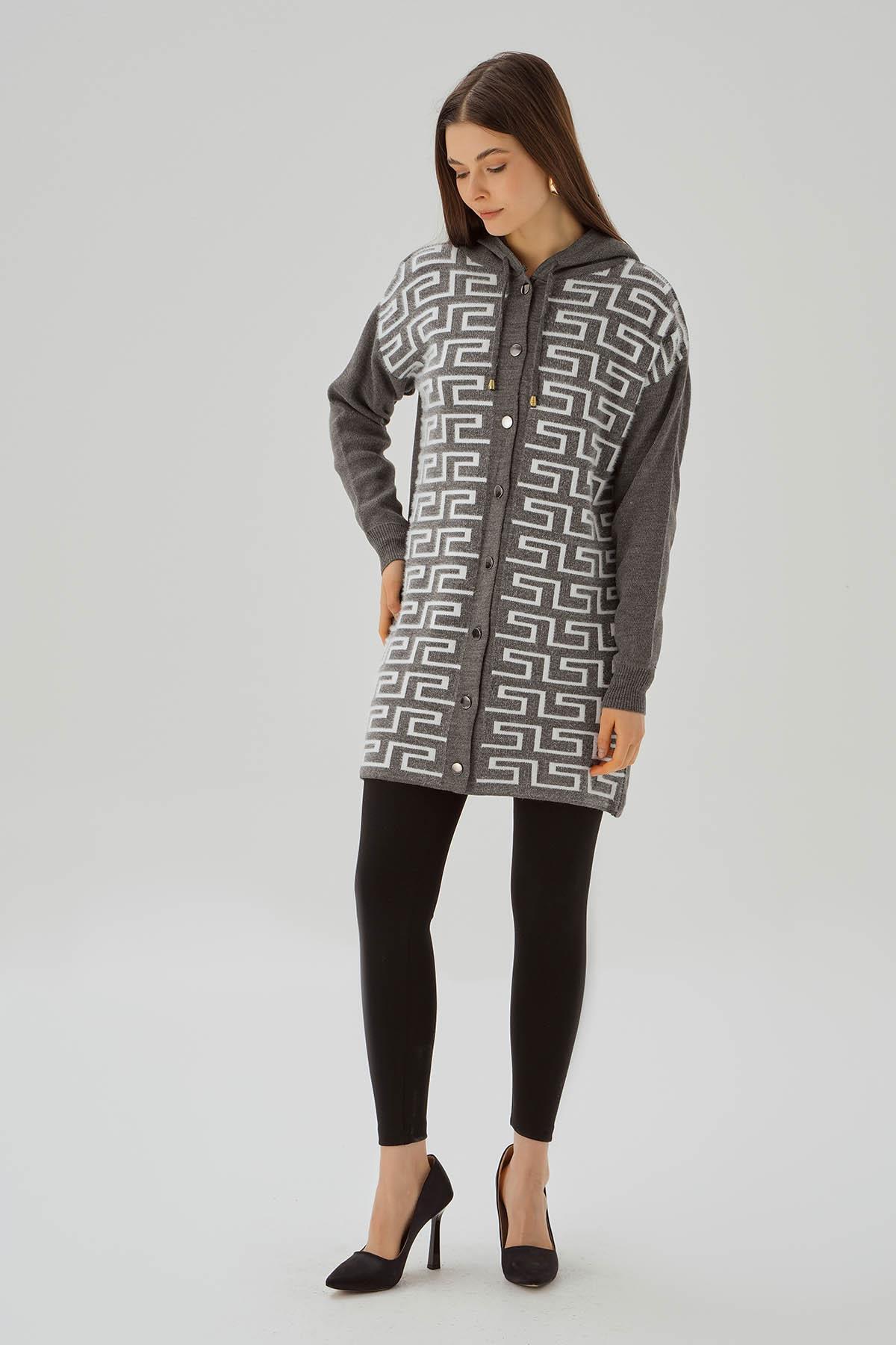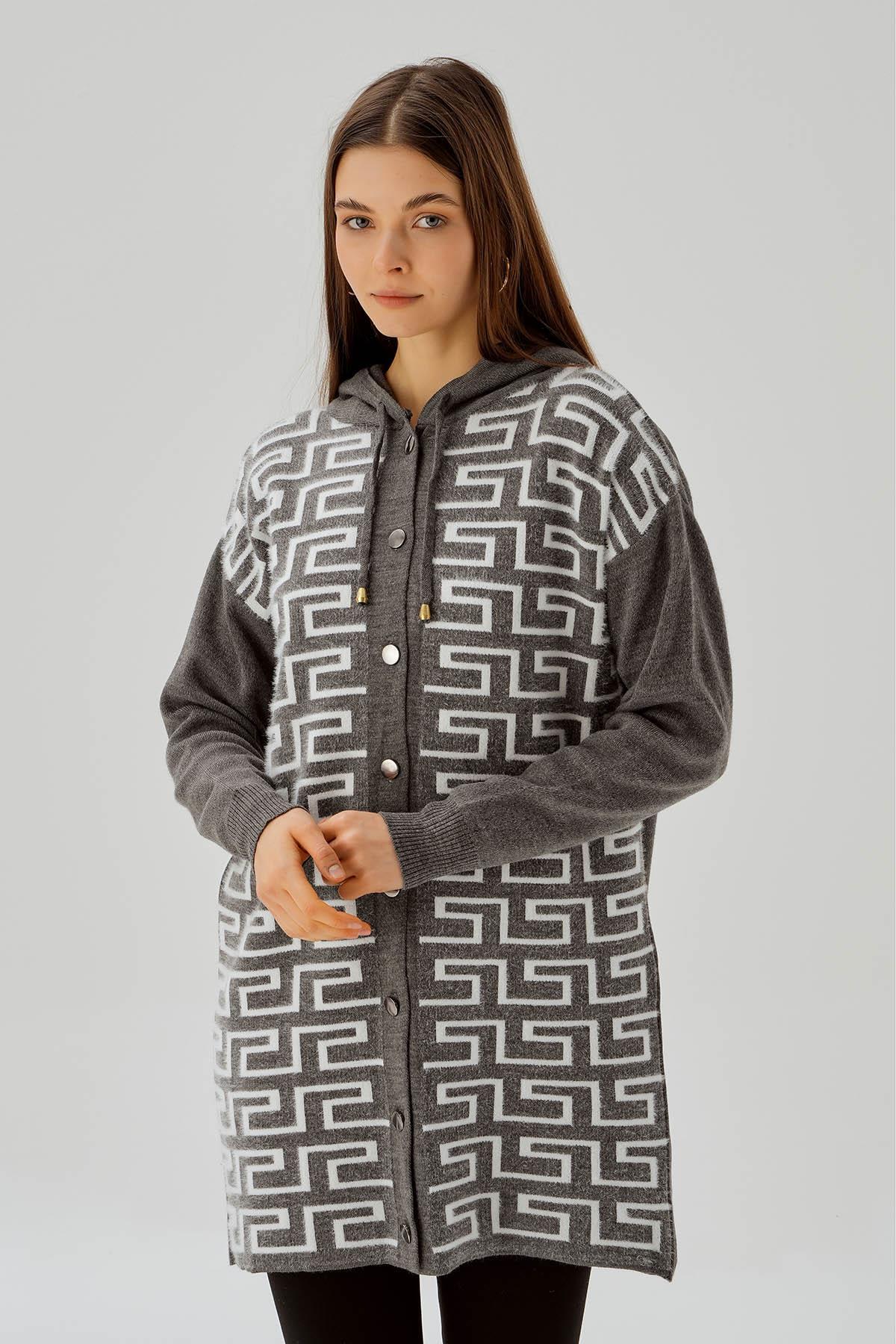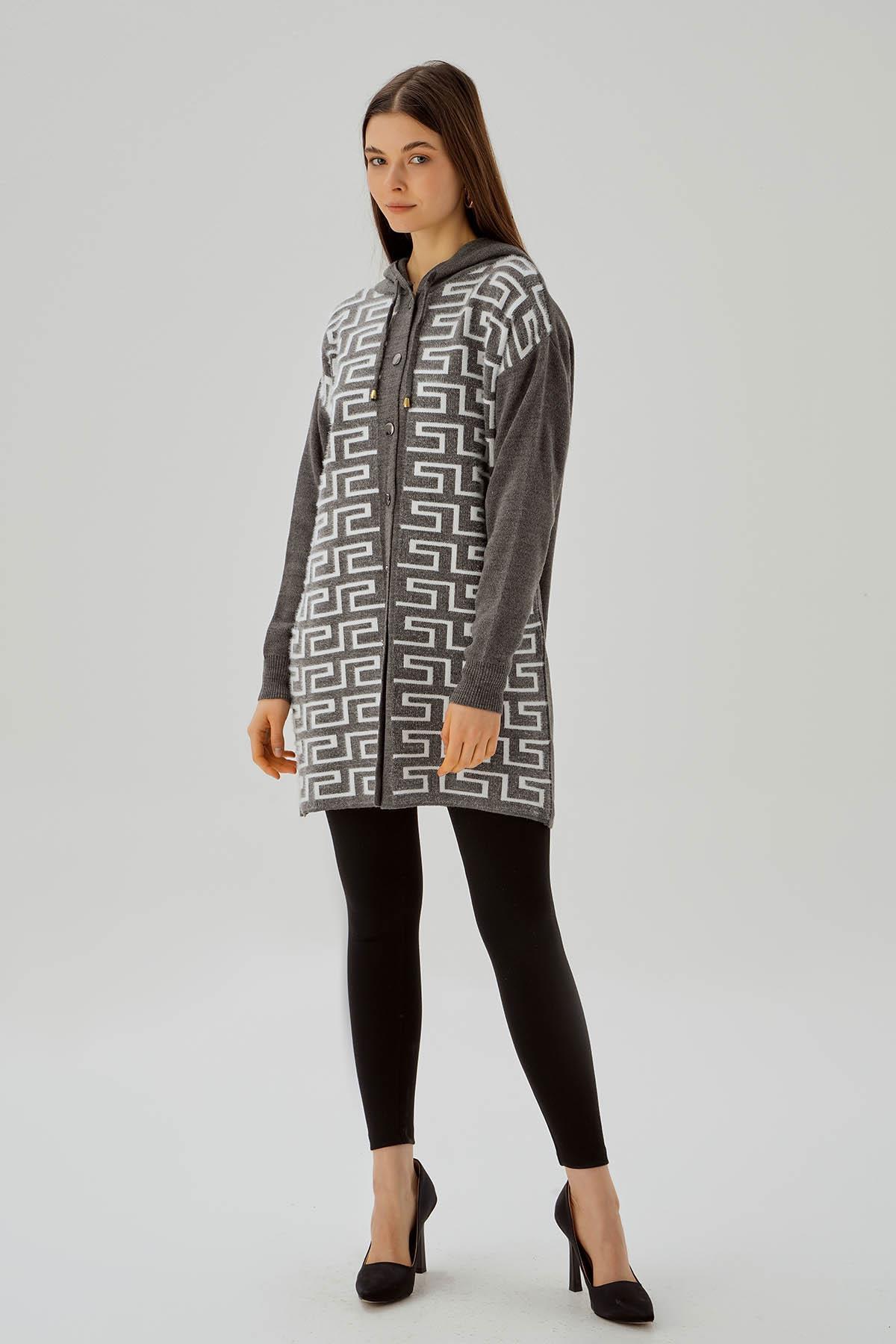 Gri Labirent Desen Düğmeli Hırka 3505