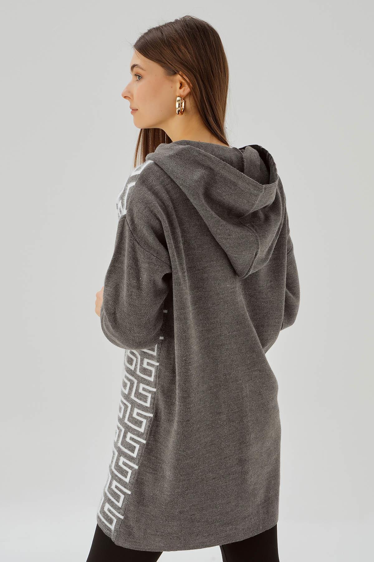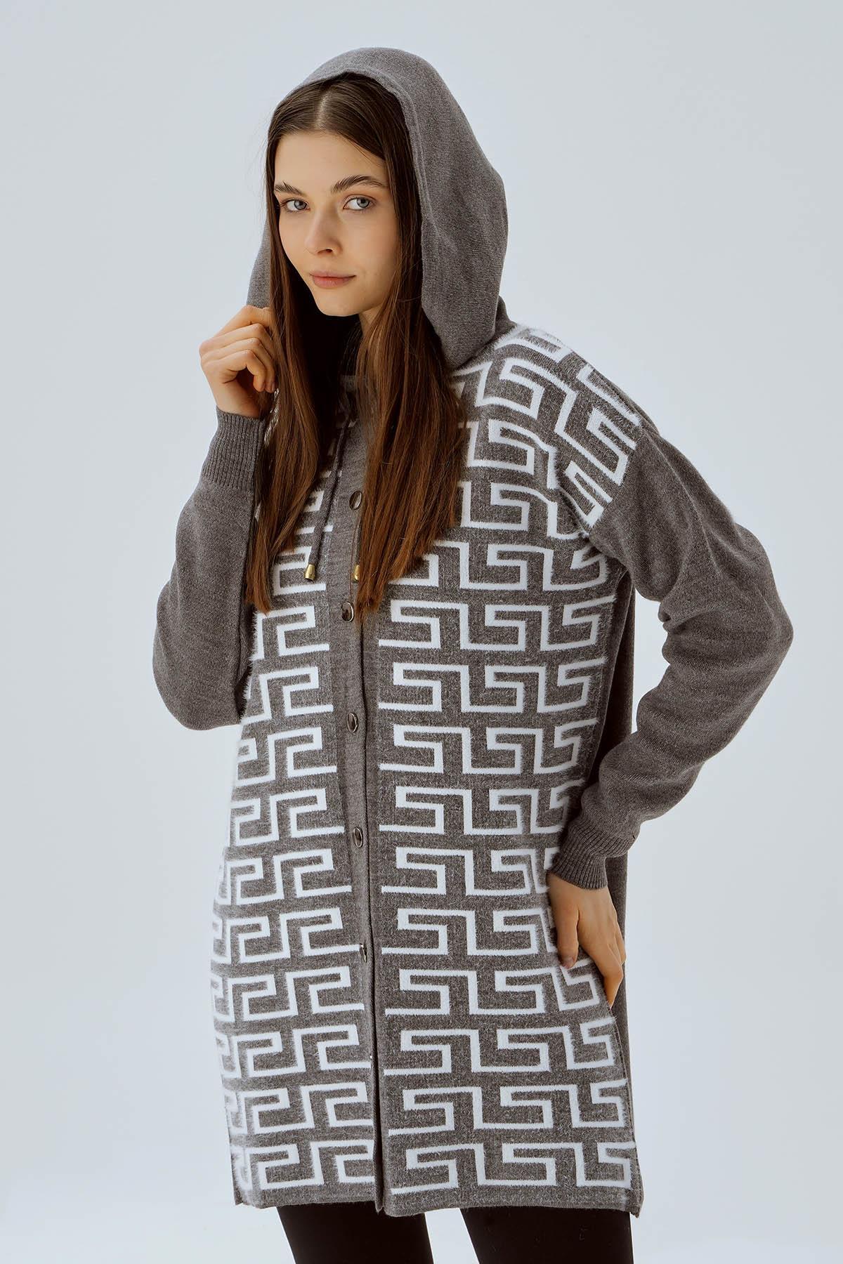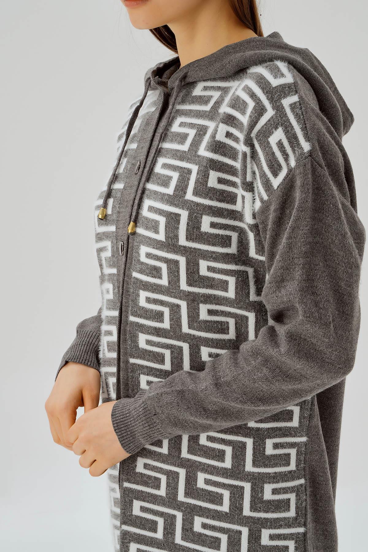 Gri Labirent Desen Düğmeli Hırka 3505
