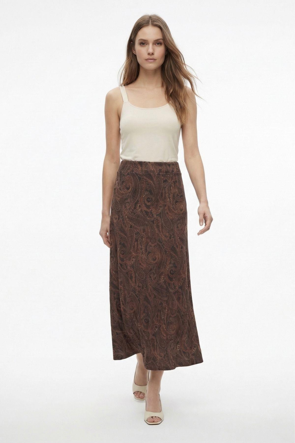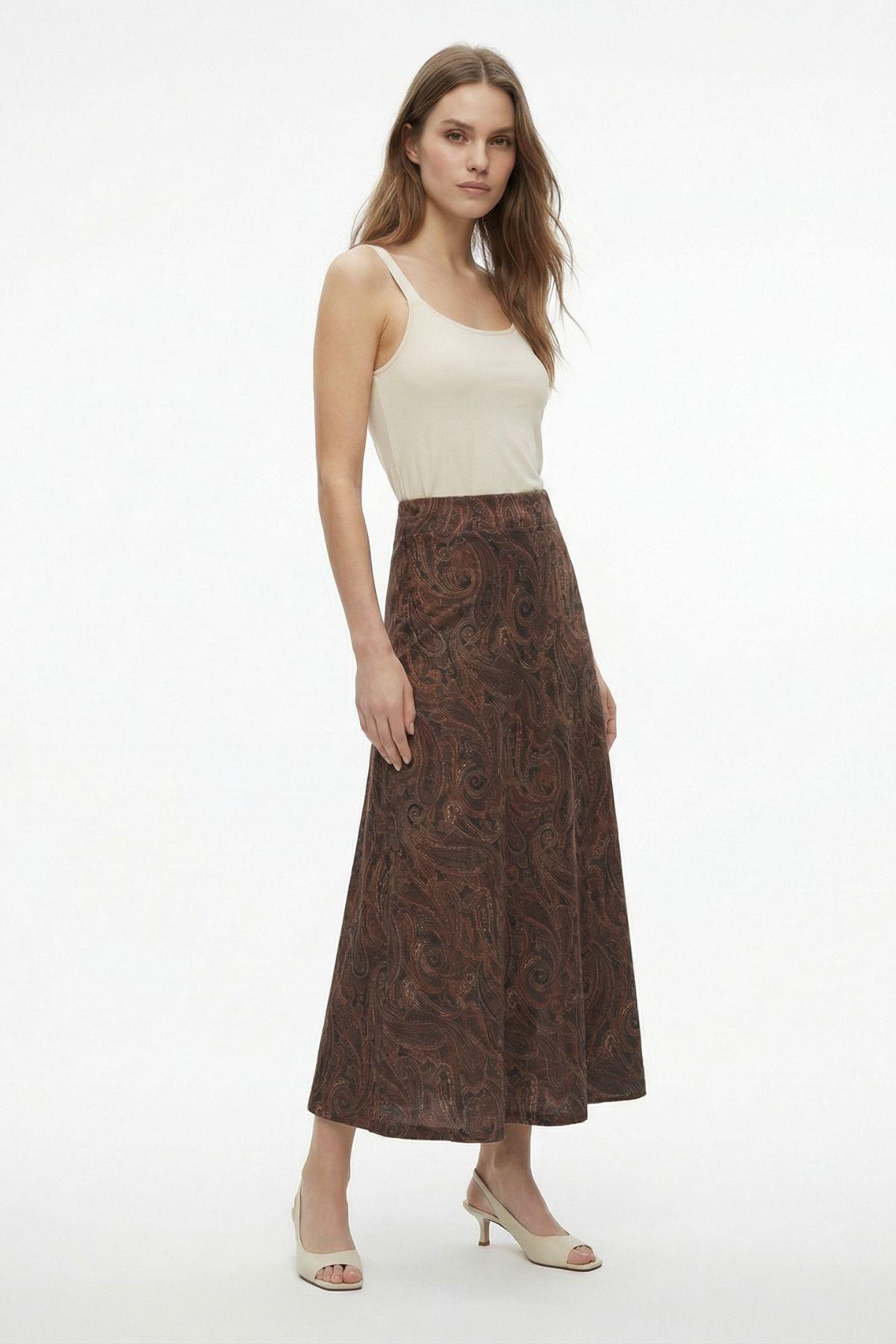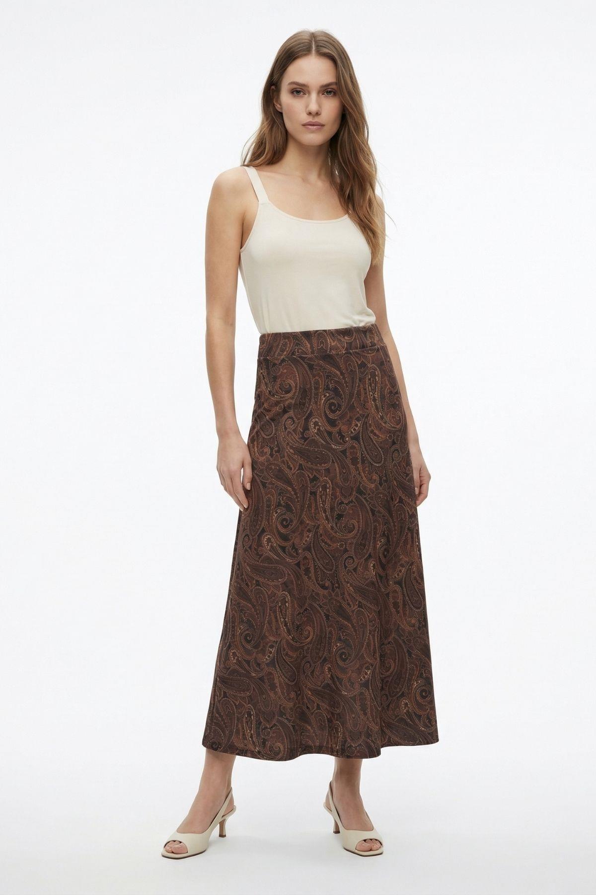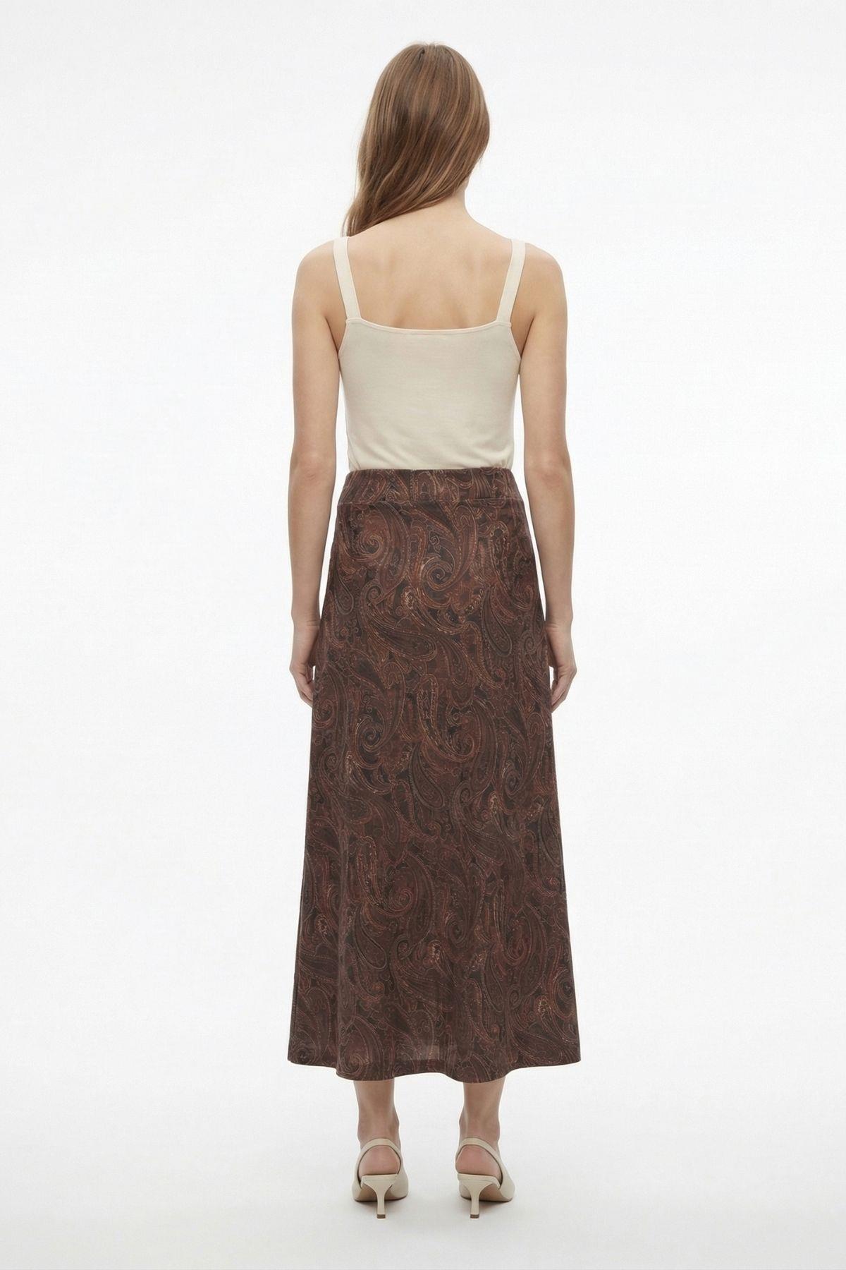 Acı Kahve Yaprak Desenli Etek 3507