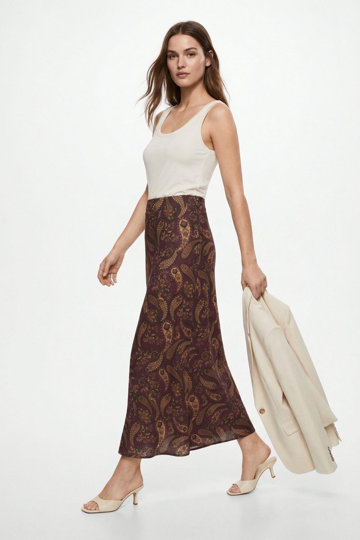 Bordo Yaprak Desenli Etek 3507