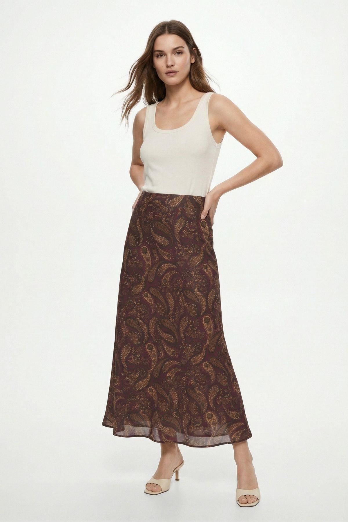 3507 Yaprak Desenli Etek