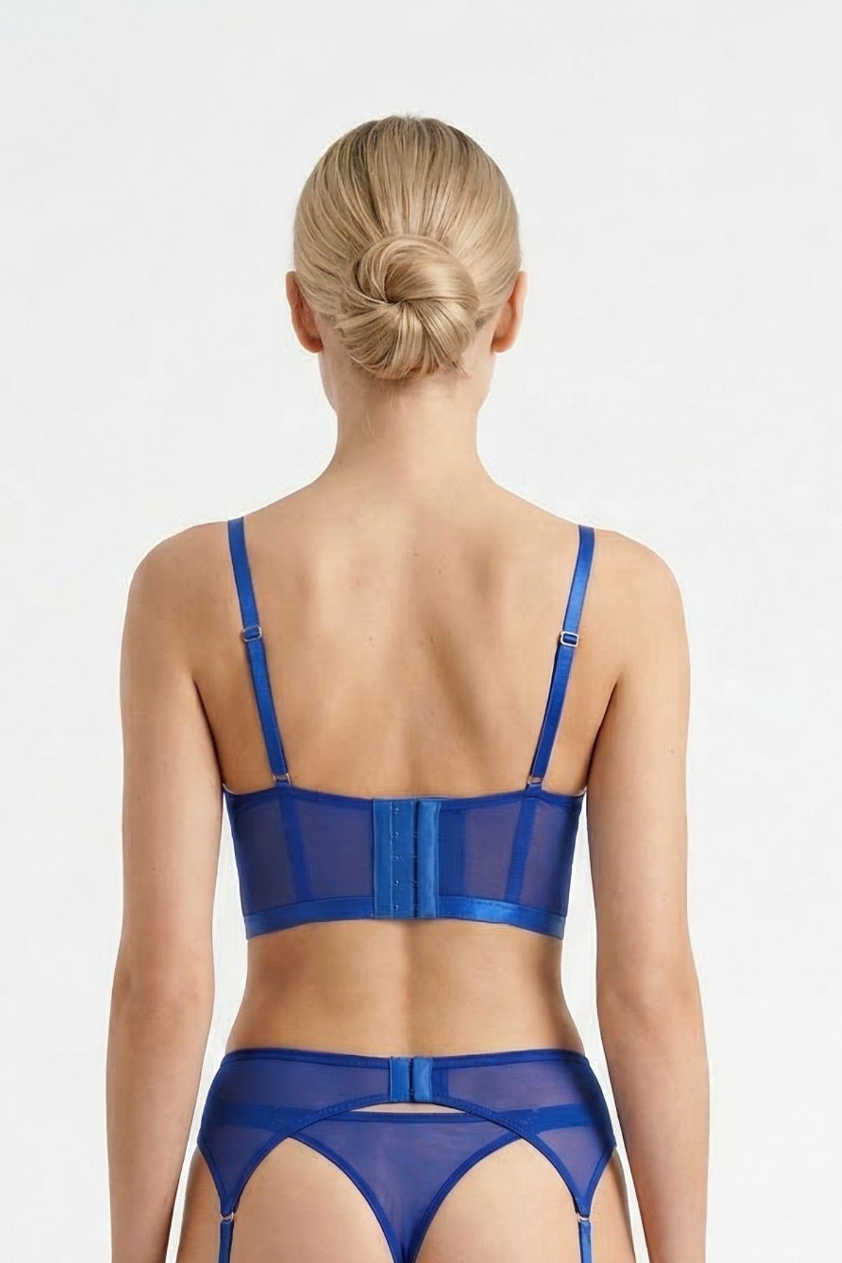 361 Tül Detay Jartiyer Takım Mavi