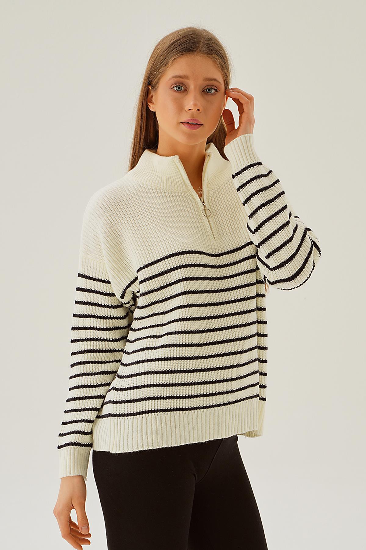 Gri - Ekru Yıldız Baskılı Oversize Kazak 2474 - RAYS Gri - Ekru Yıldız Baskılı Oversize Kazak 2474 - RAYS (1)