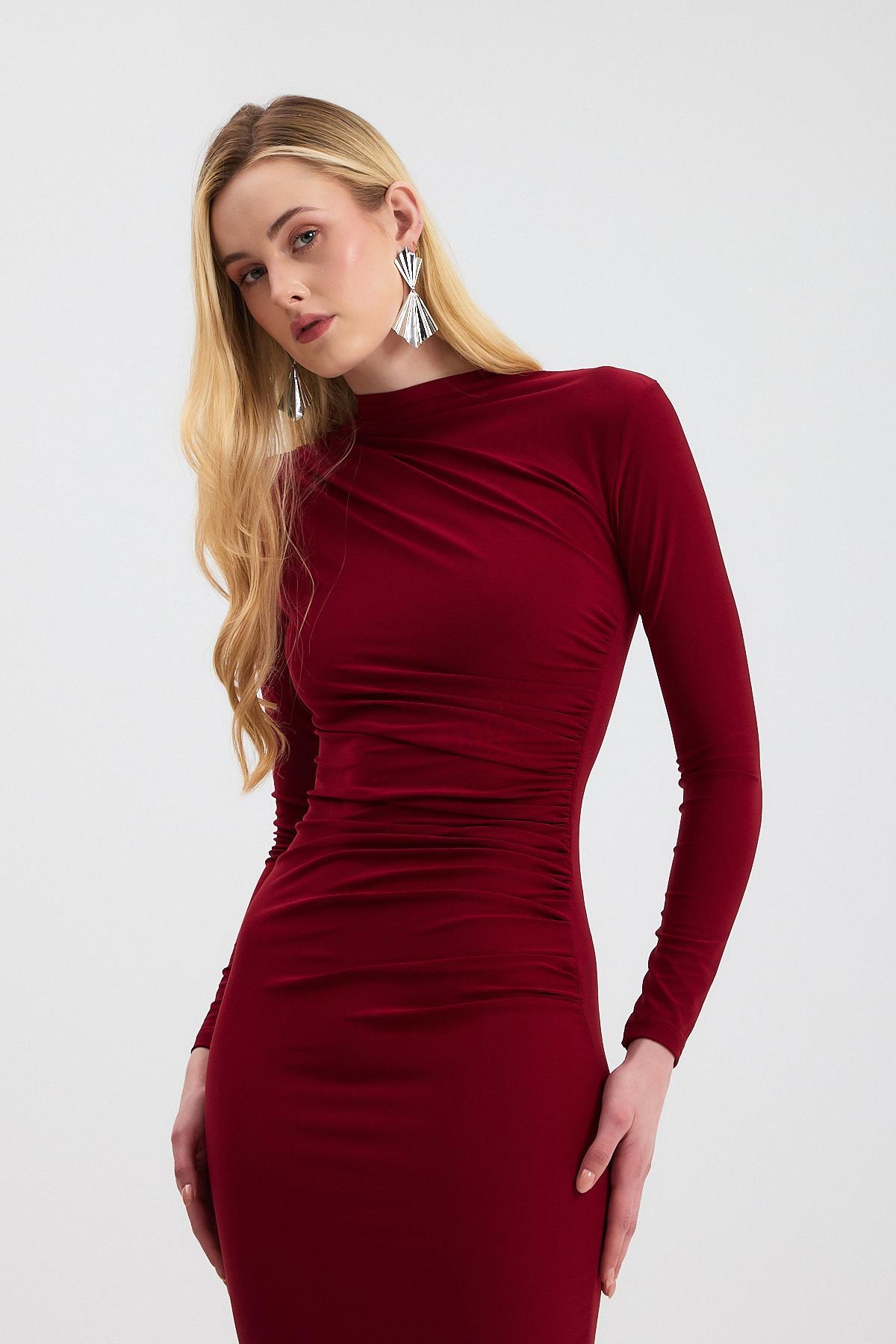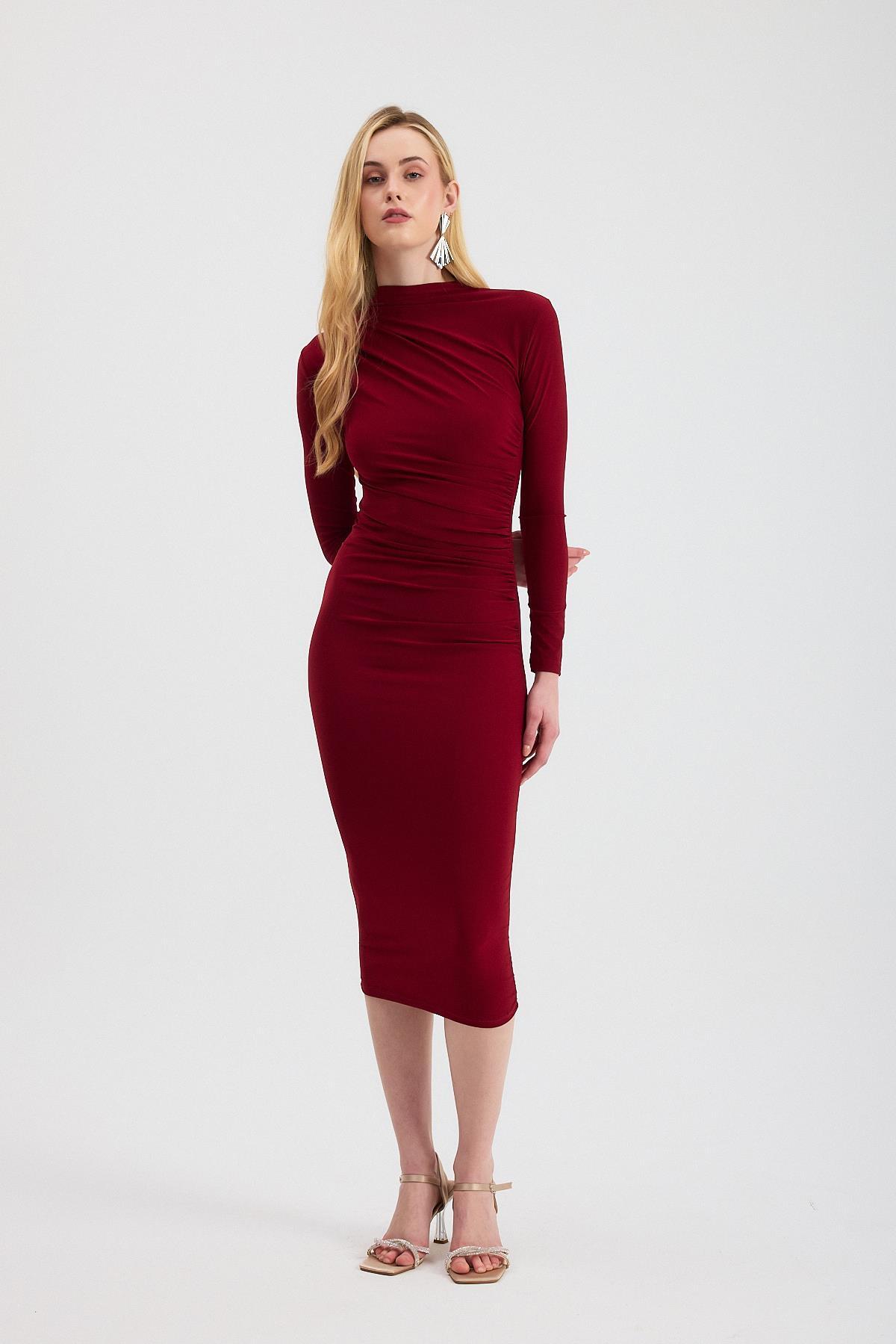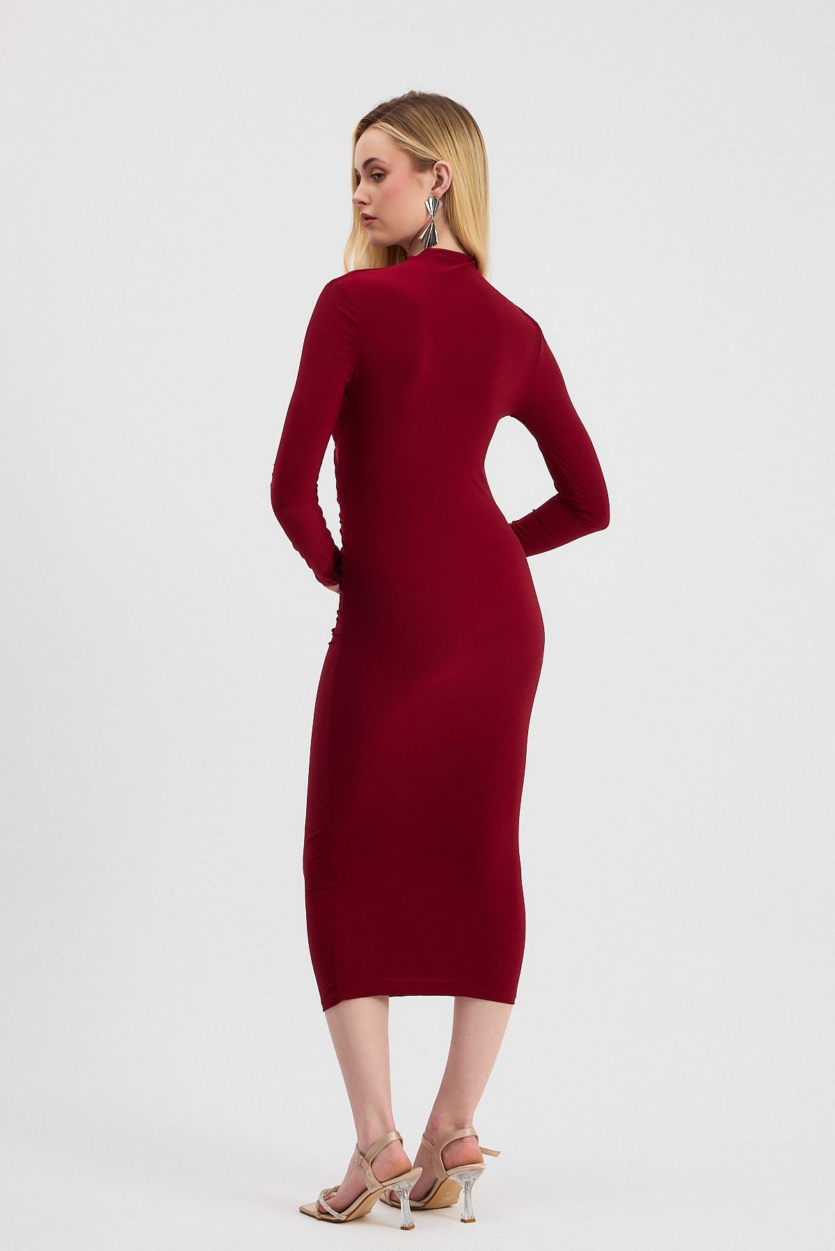 4470A Yan Bağlamalı Uzun Elbise Saks - RAYS