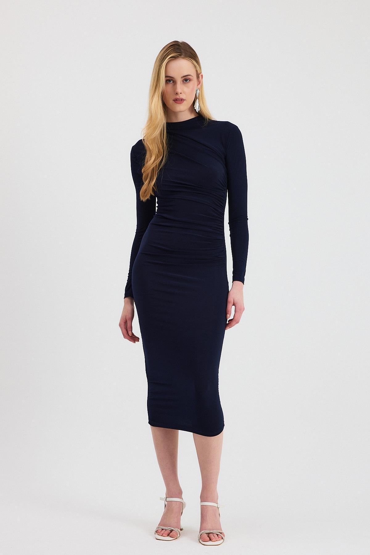 3686 Bel Büzgü Detay Elbise Laci