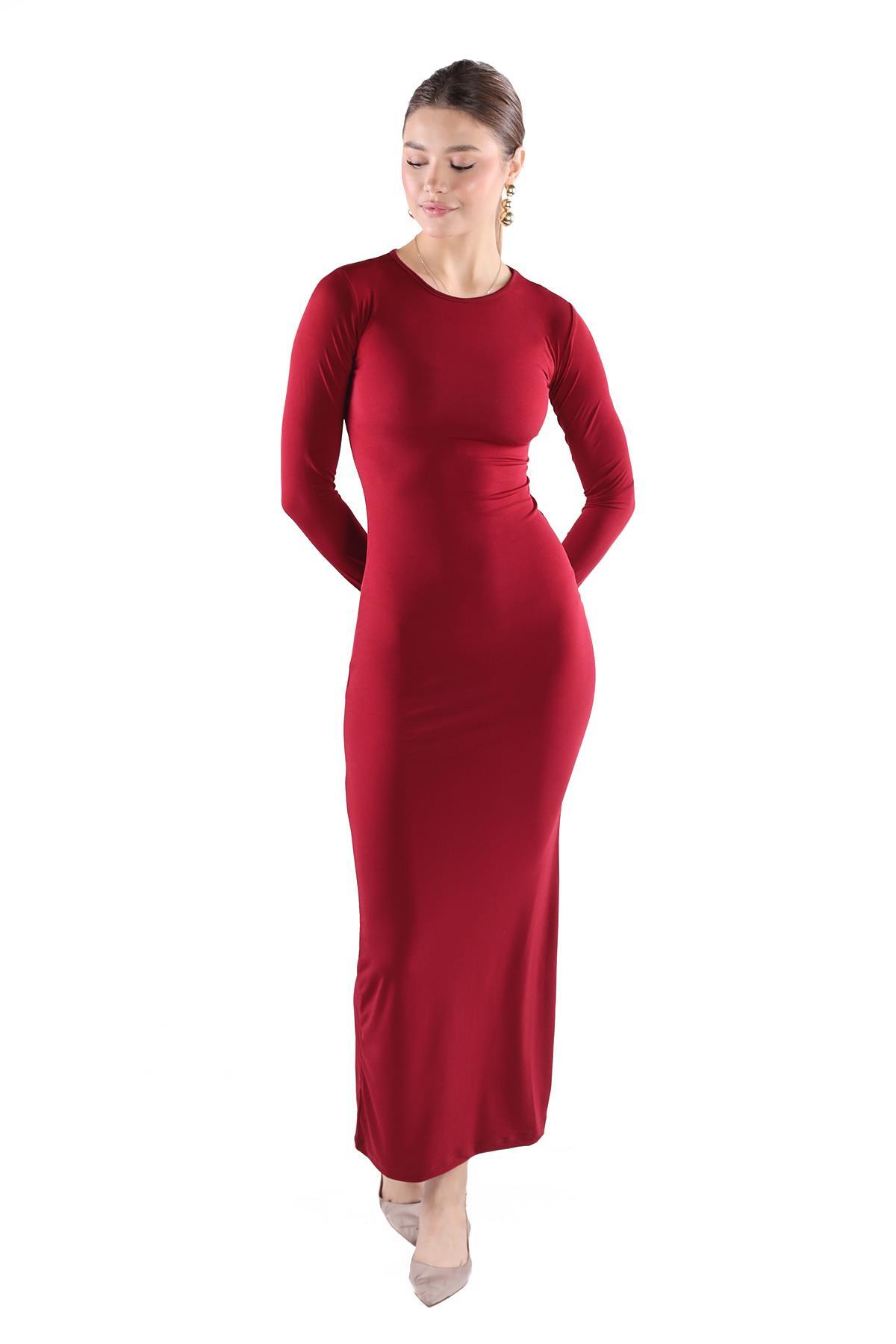 Bordo Bisiklet Yaka Elbise 376