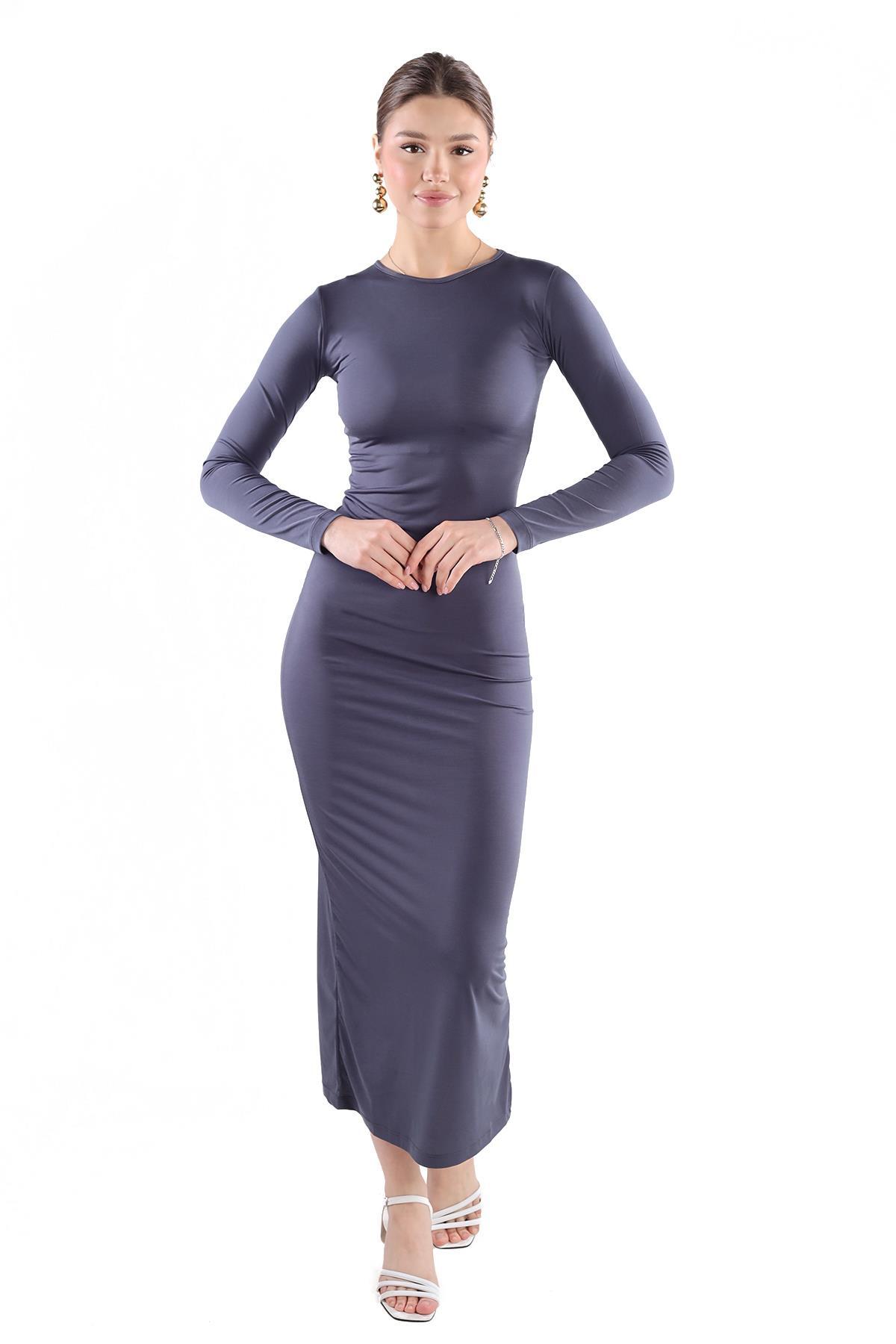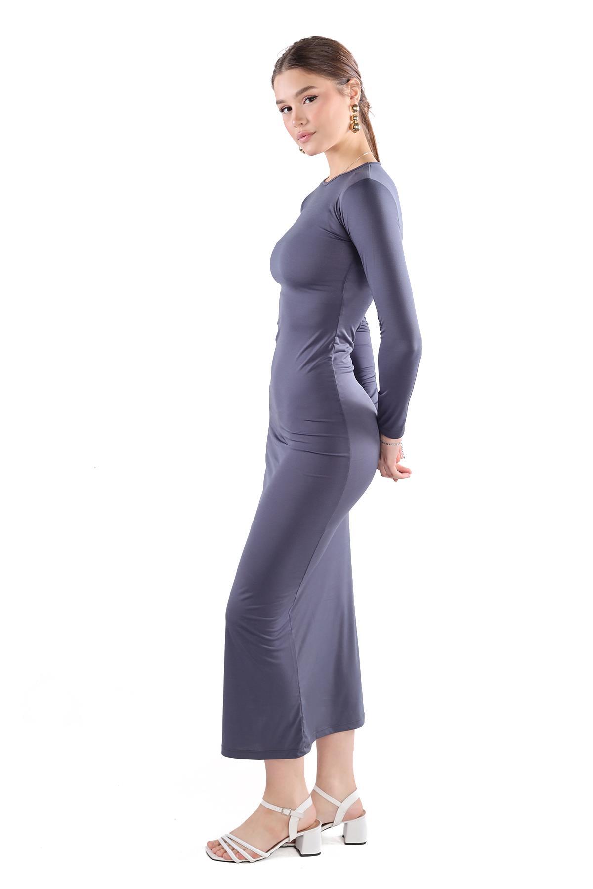 Füme Bisiklet Yaka Elbise 376