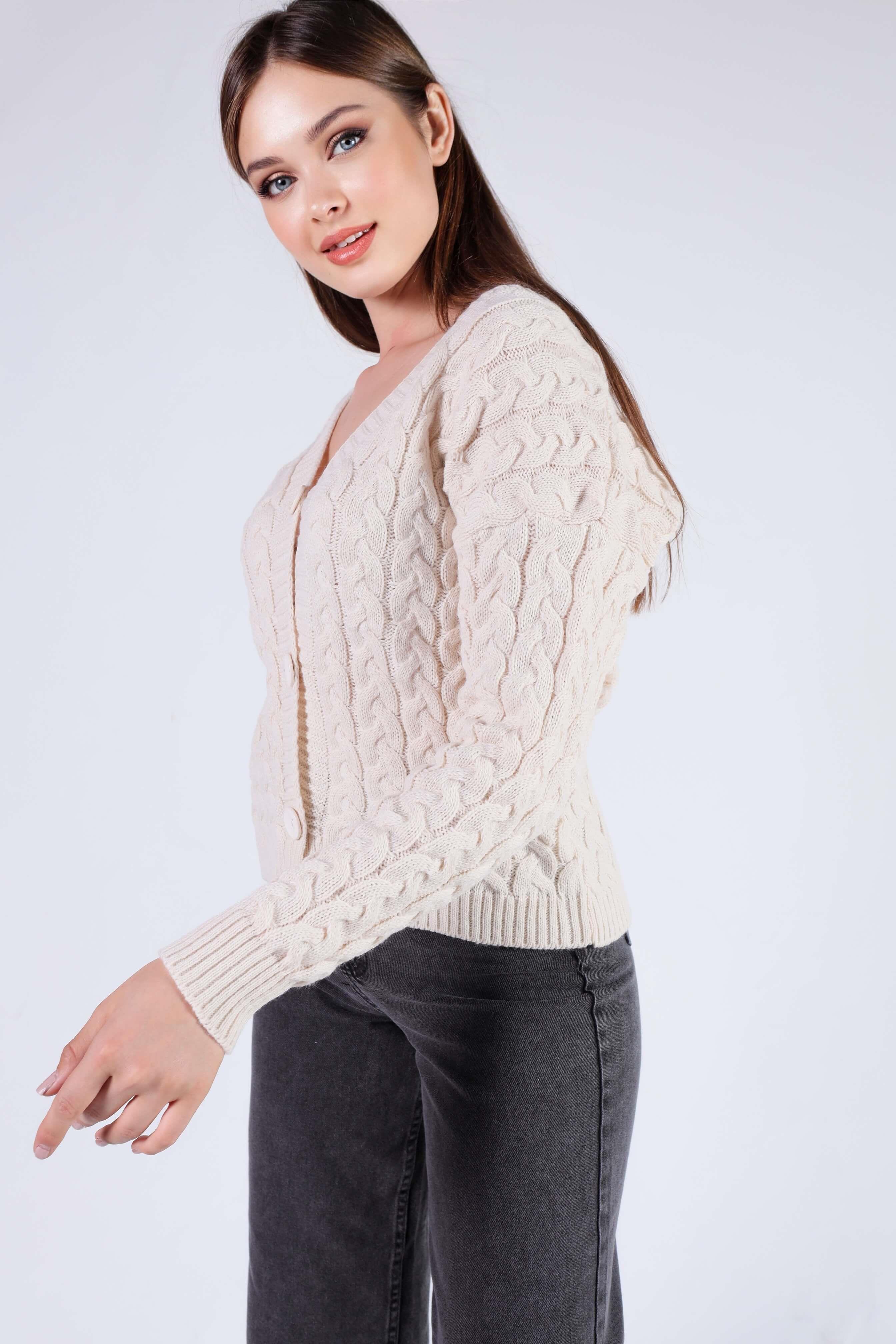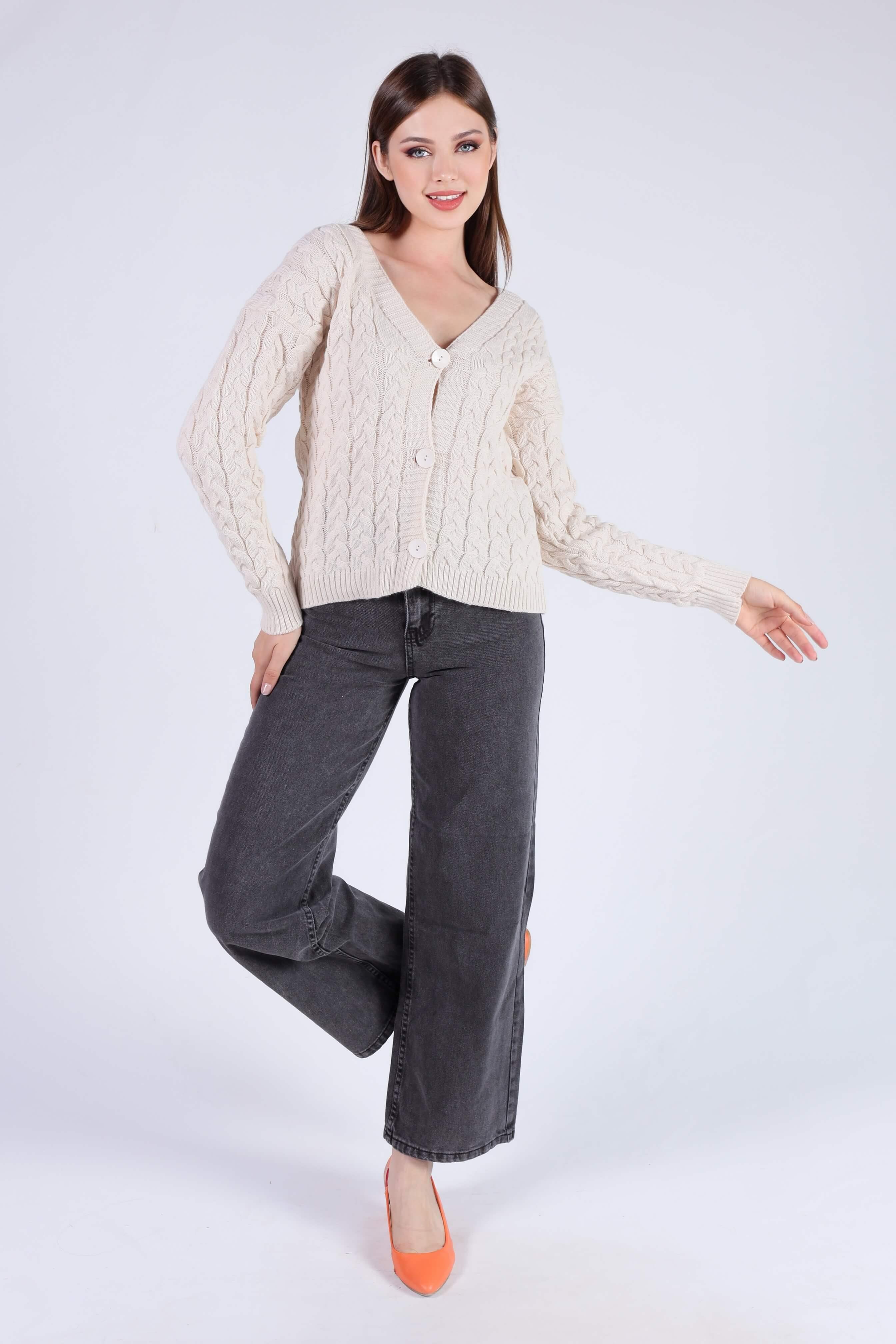 Krem Örgü Detay Hırka 379