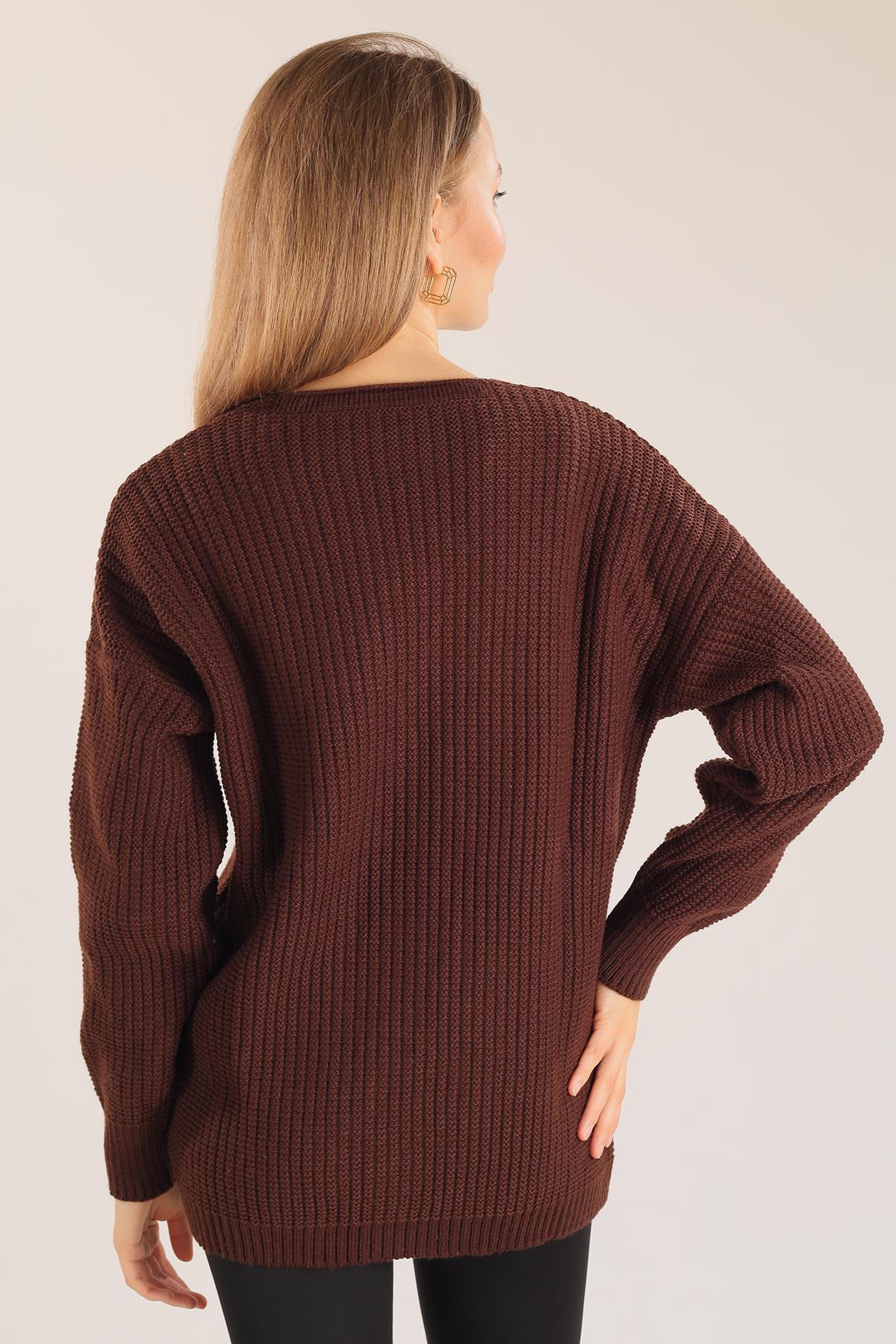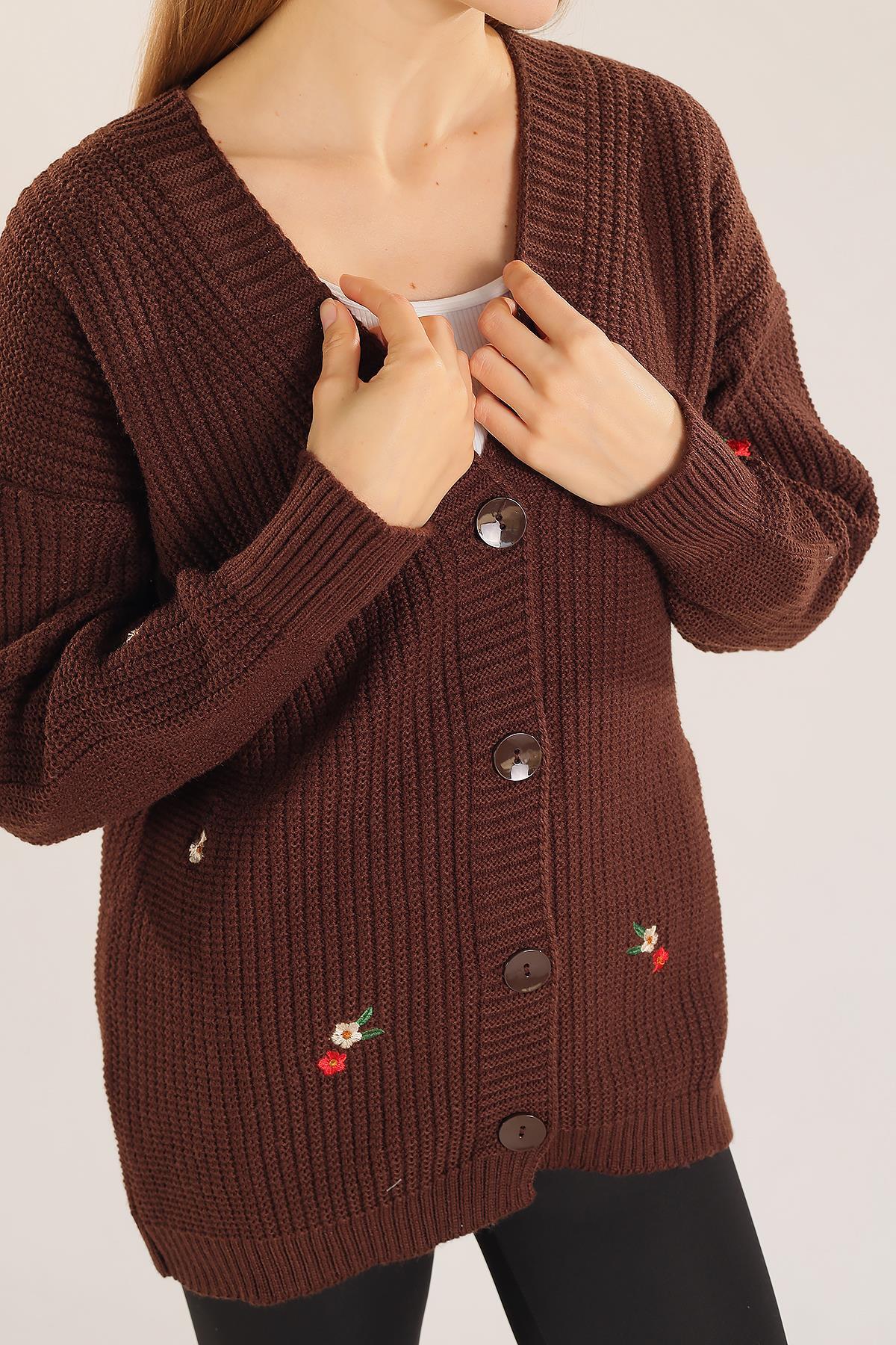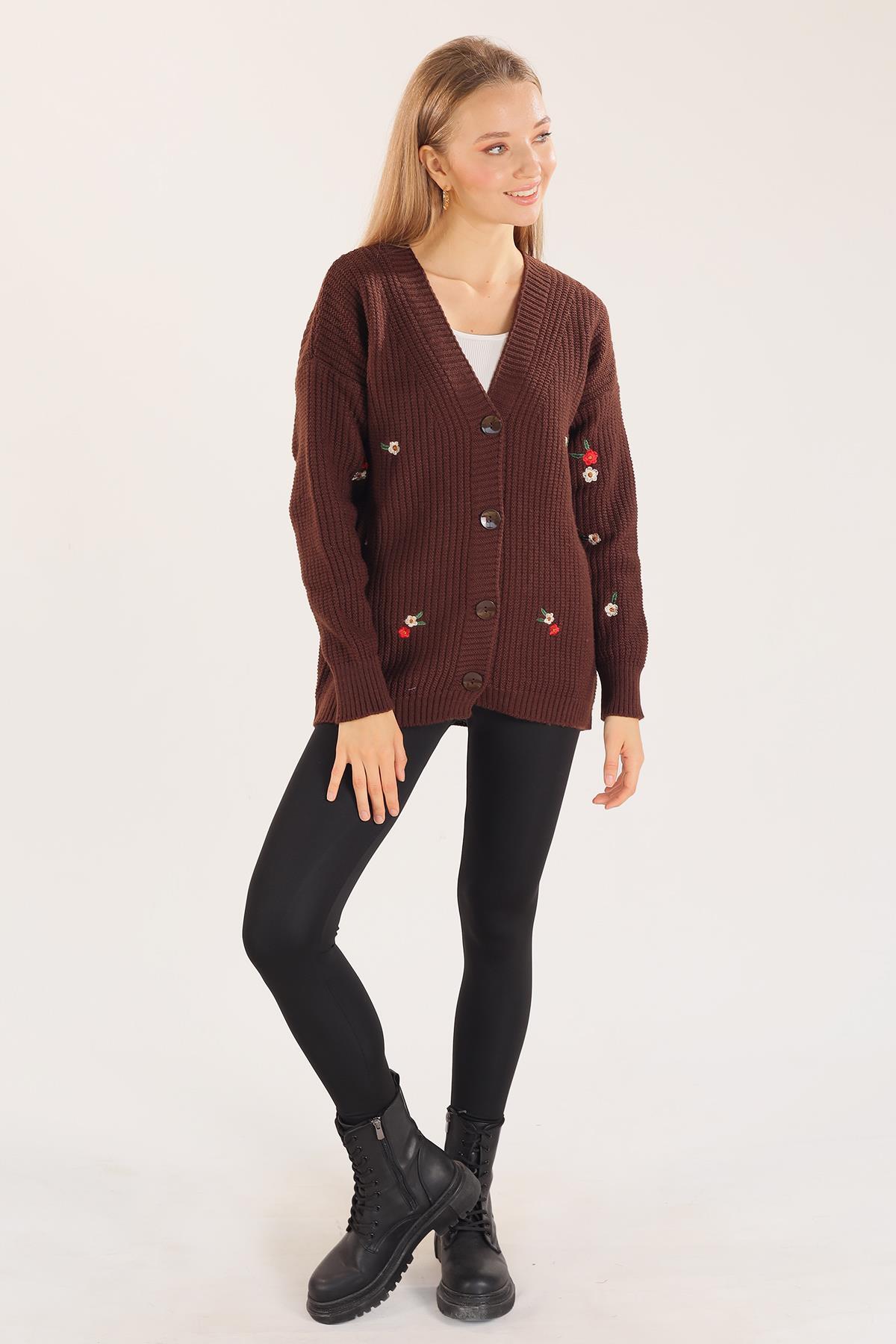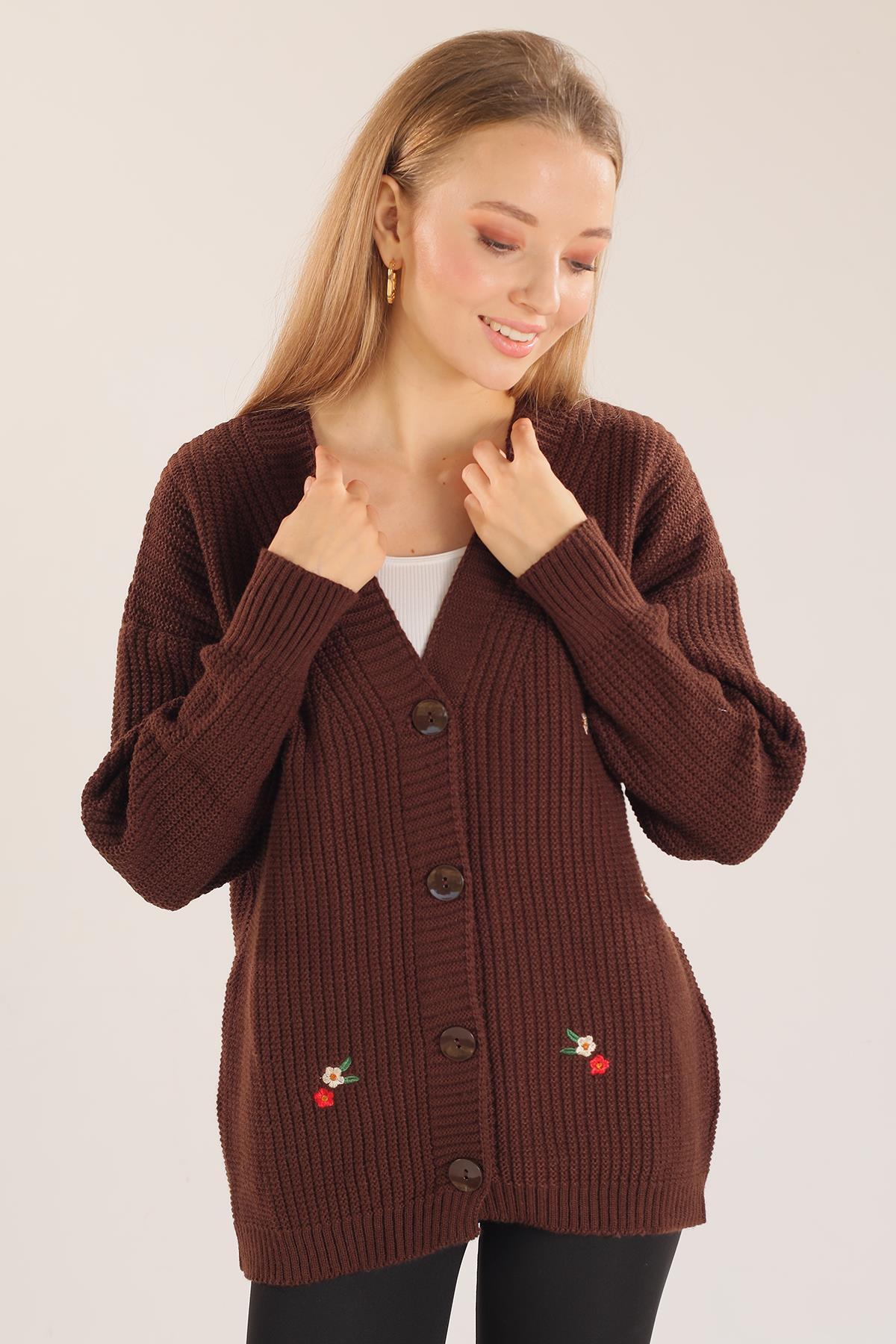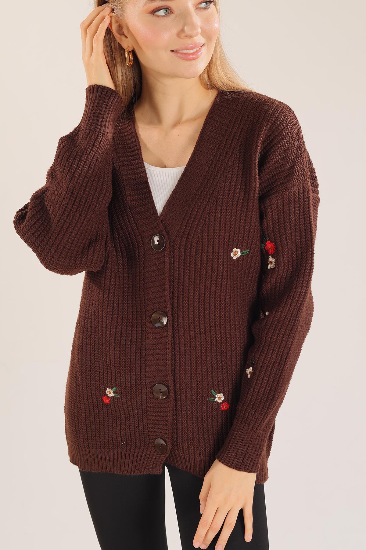Acı Kahve Çiçek Nakışlı Hırka 383
