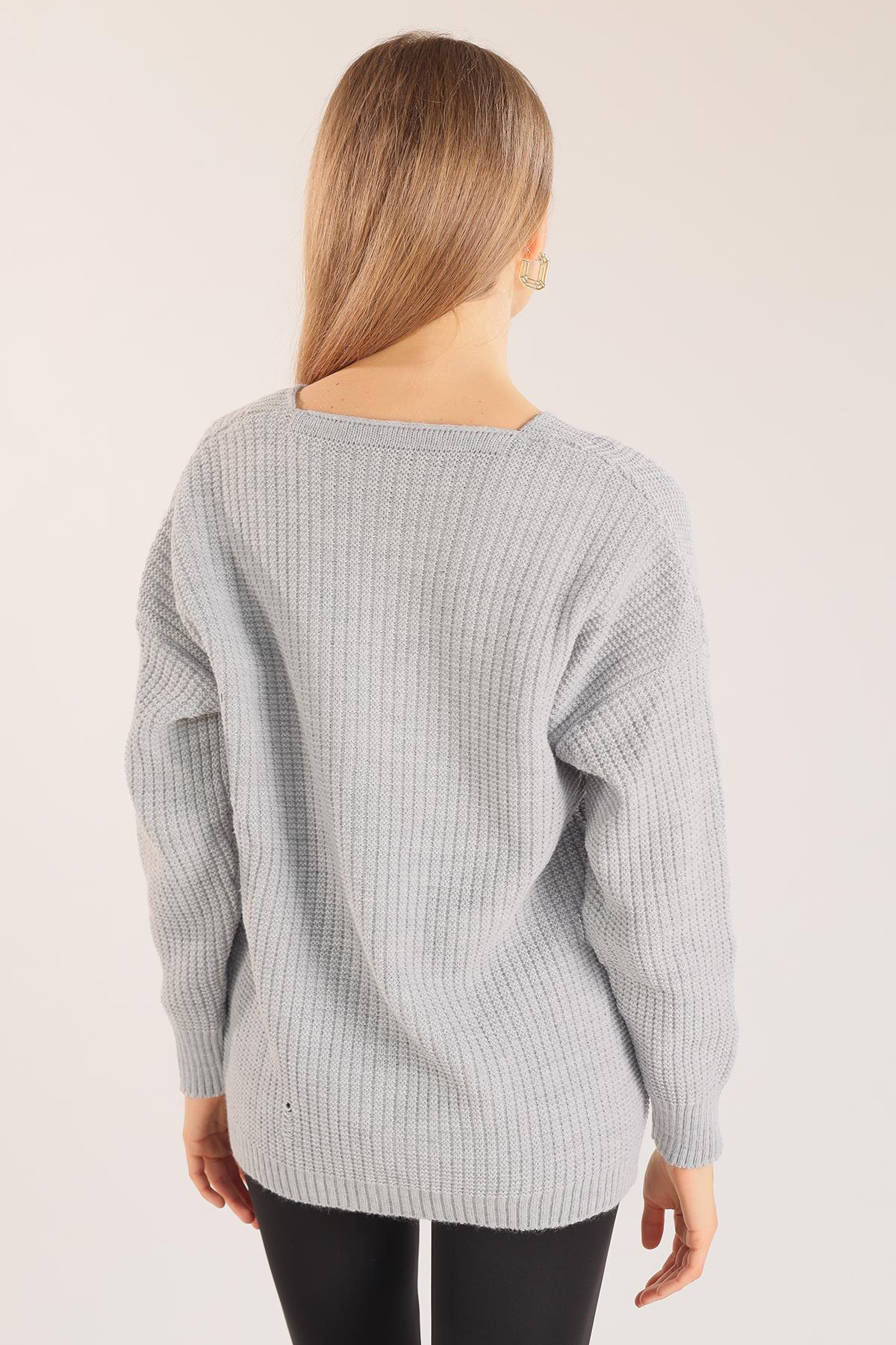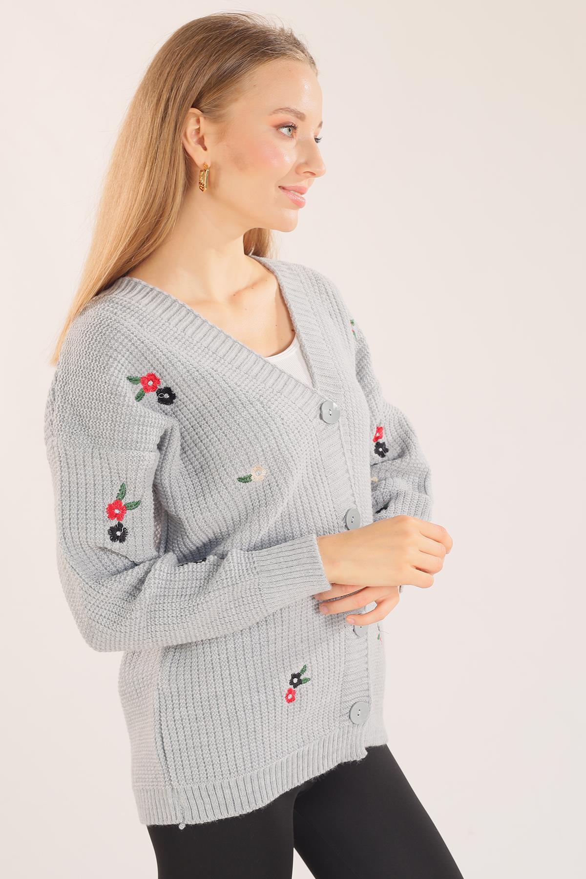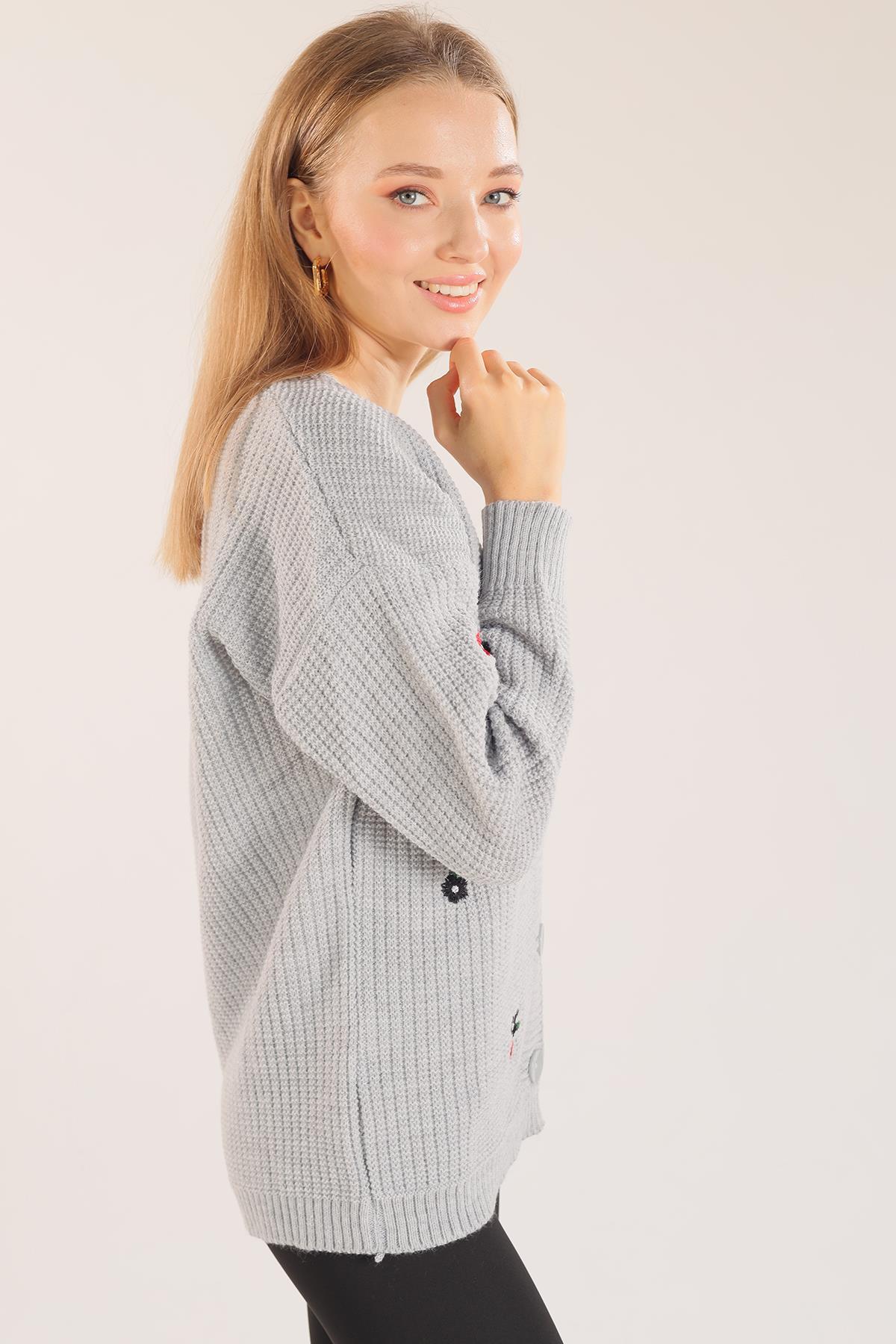 Gri Çiçek Nakışlı Hırka 383