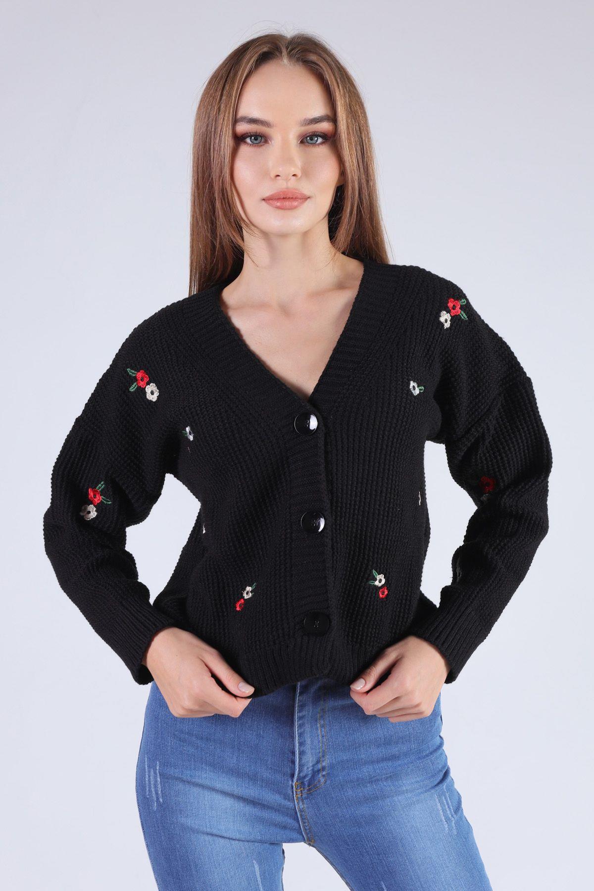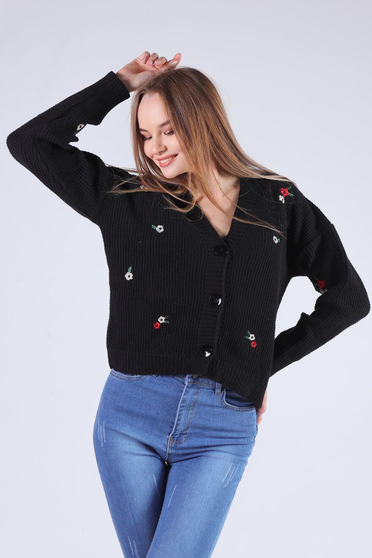 Siyah Çiçekli Kısa Hırka 384