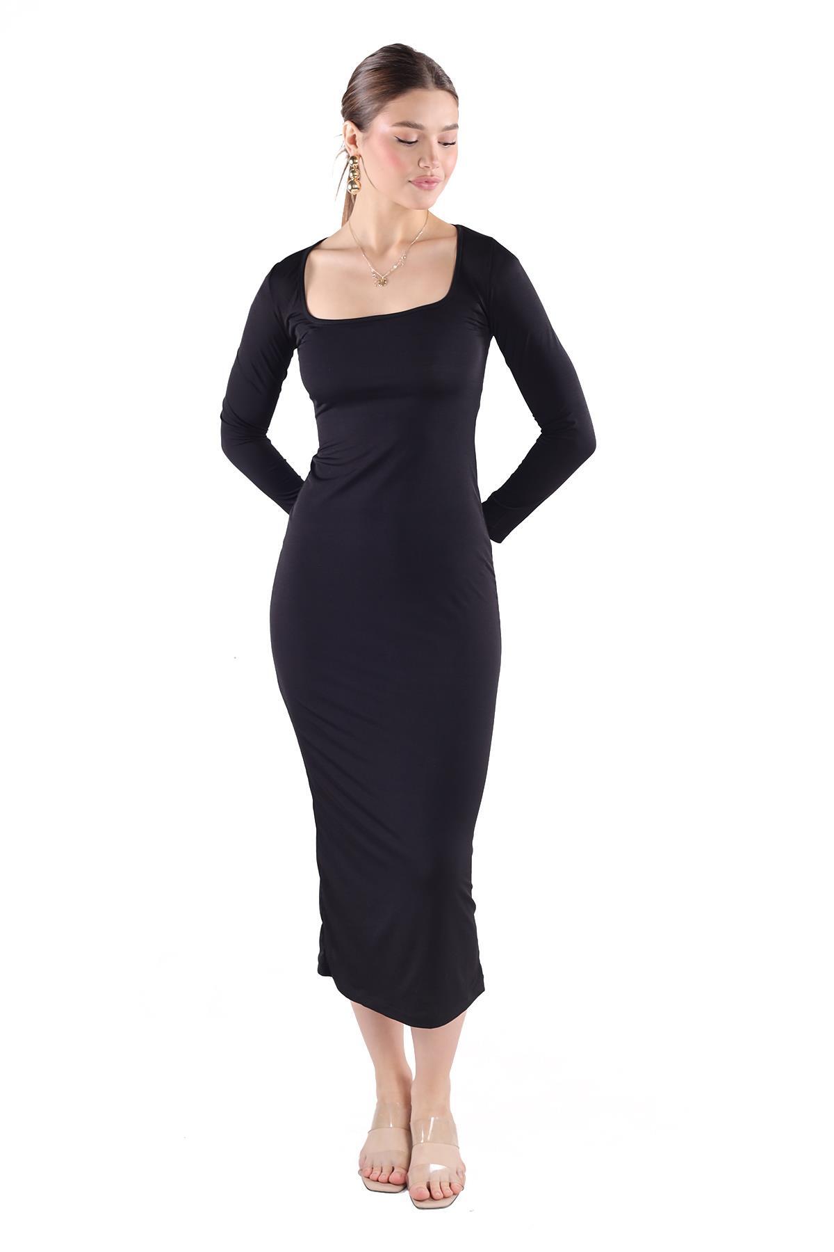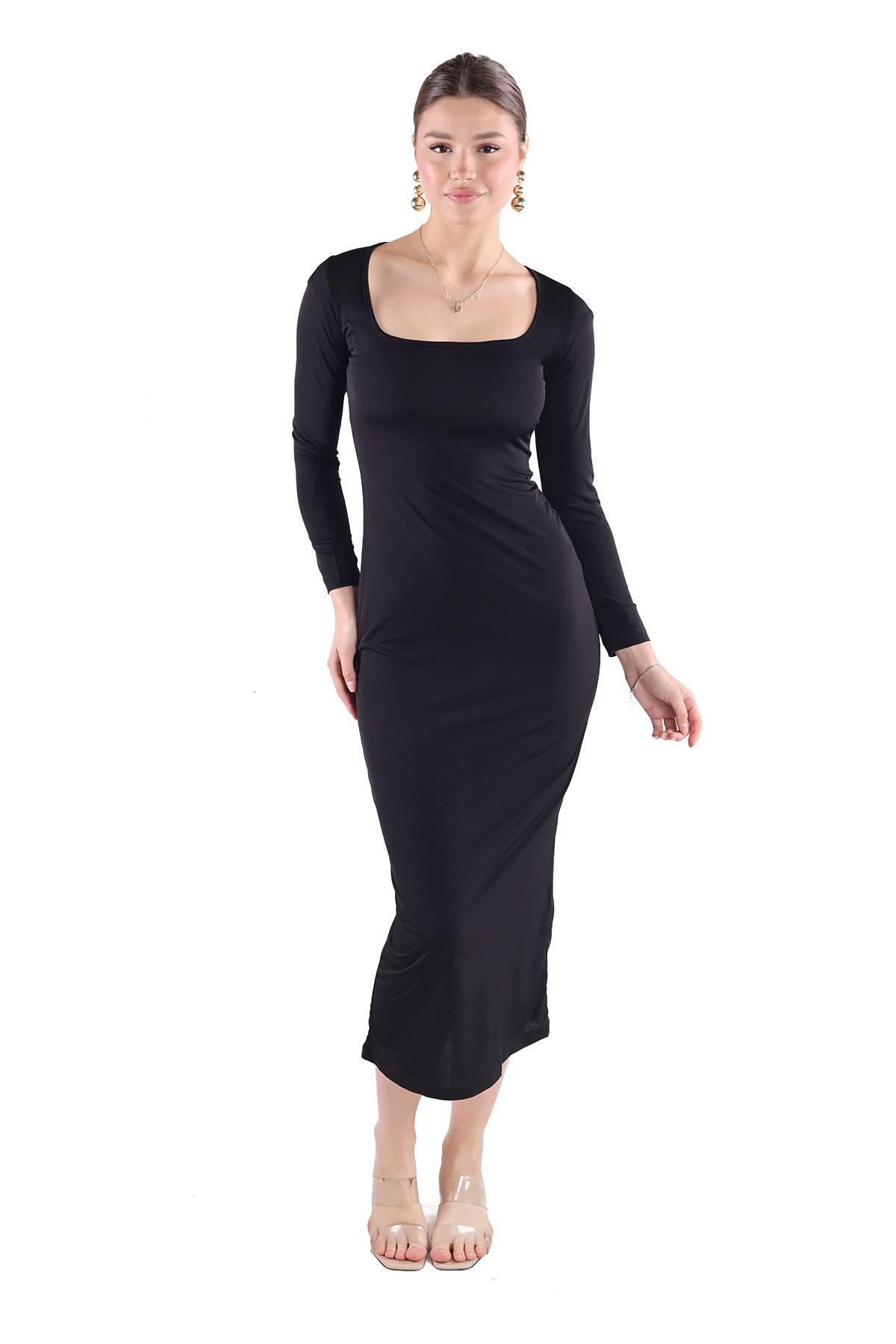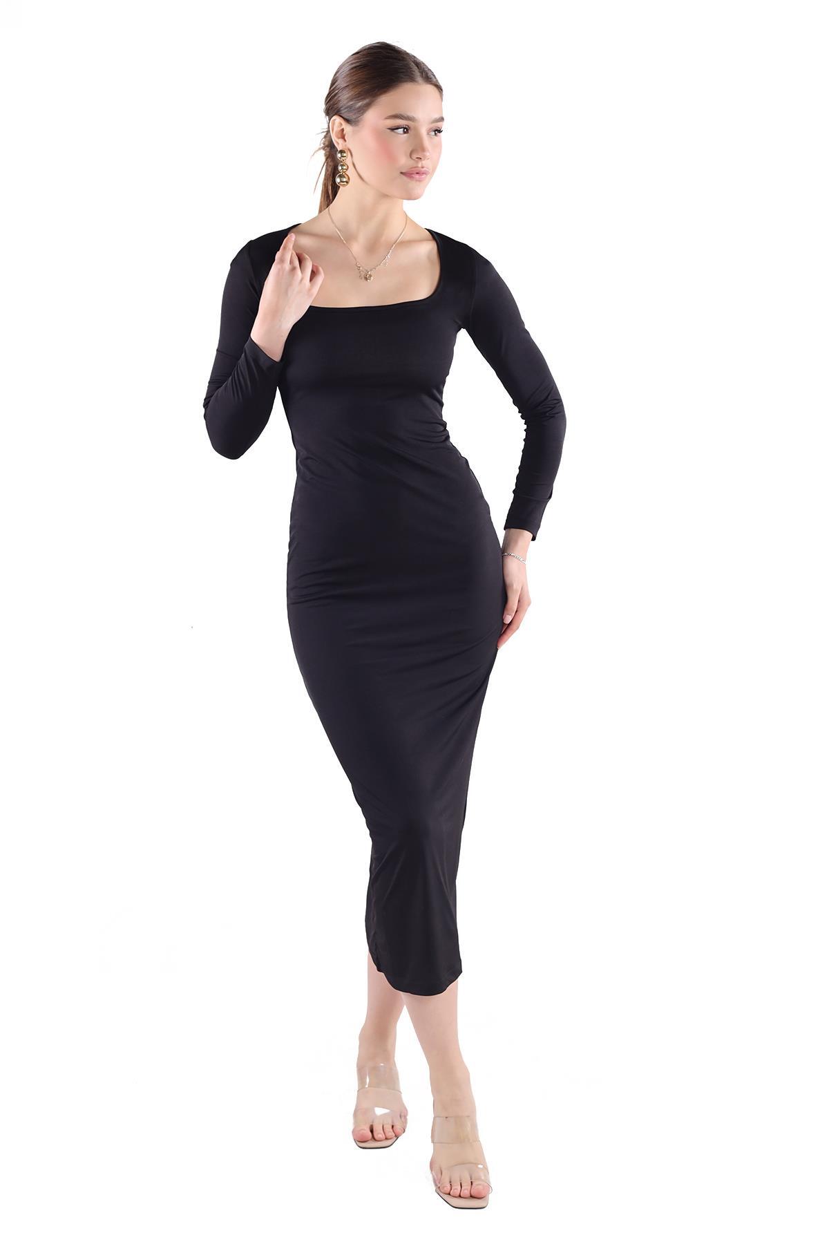 Siyah Kare Yaka Elbise 385